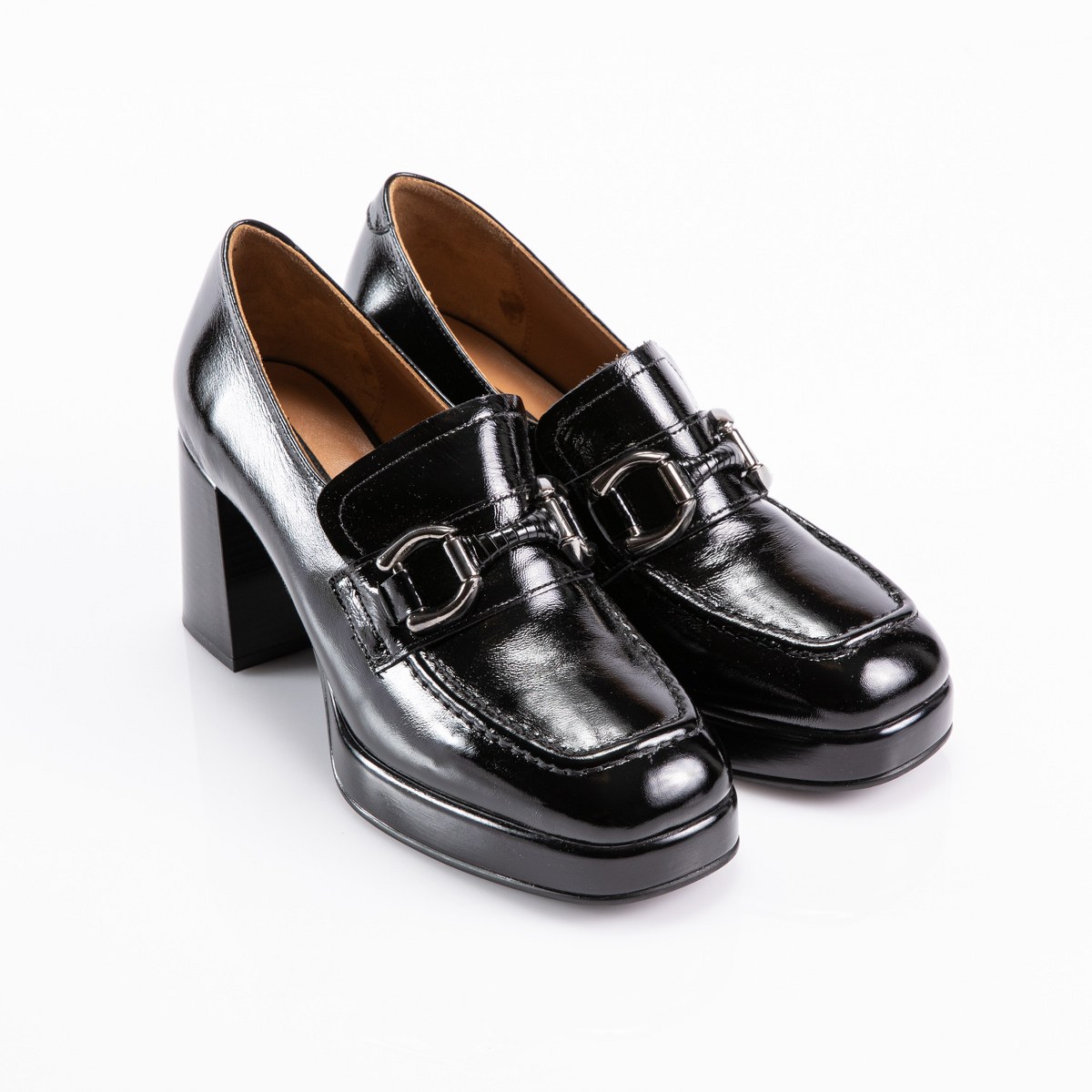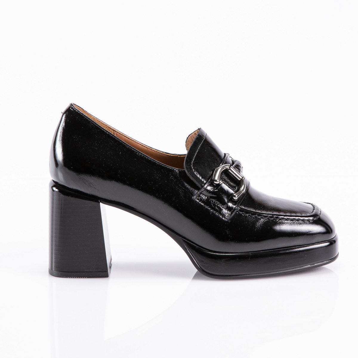 Pump in patent leather- heel 9- platform 2- rubber sole.