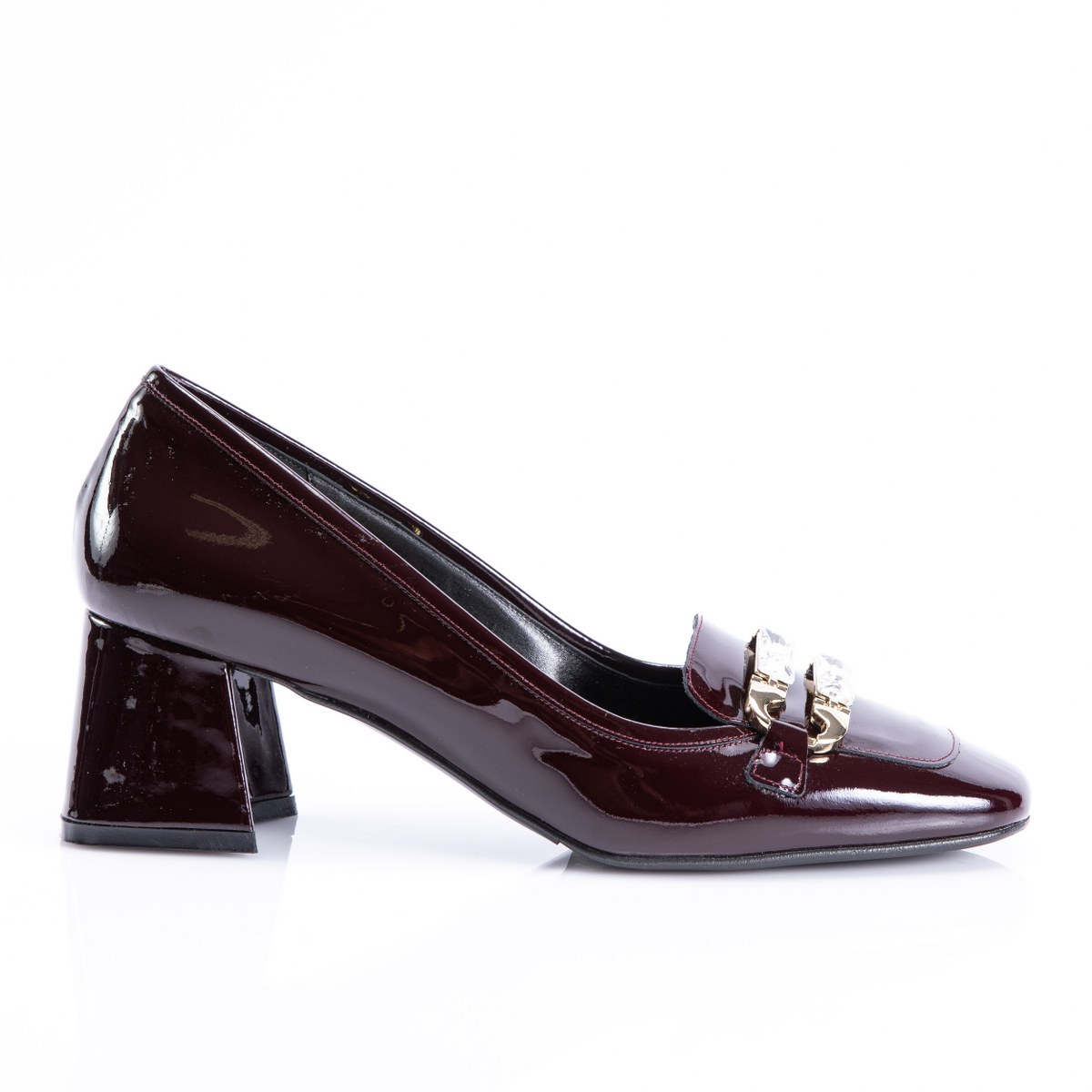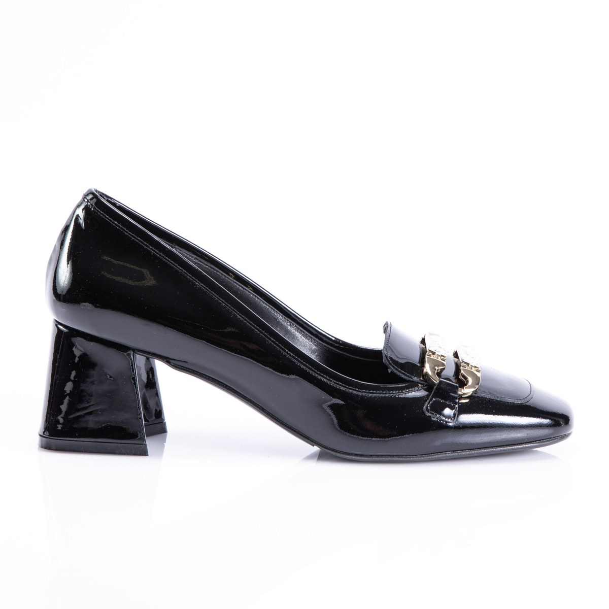 Pump in patent leather- heel 6- rubber sole.