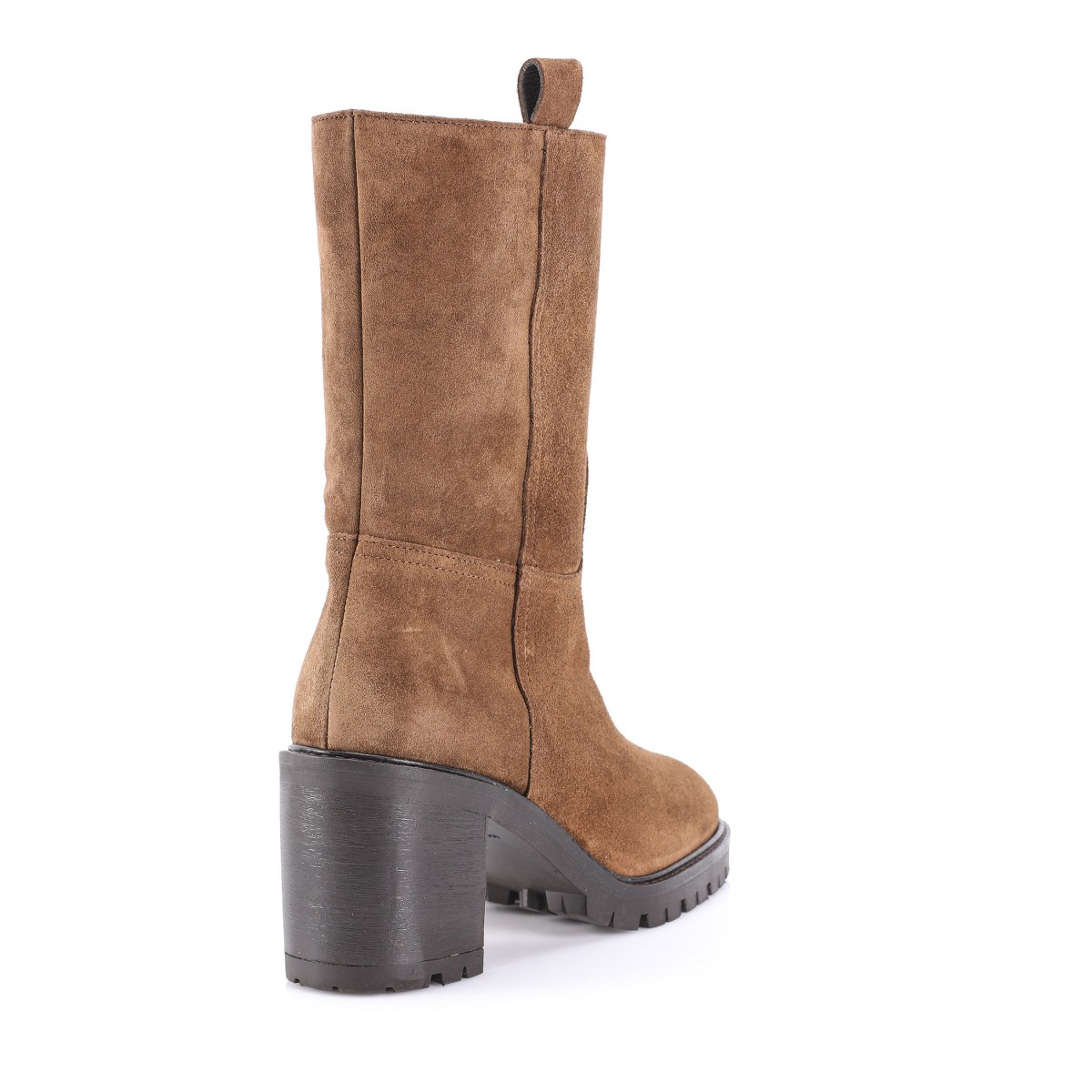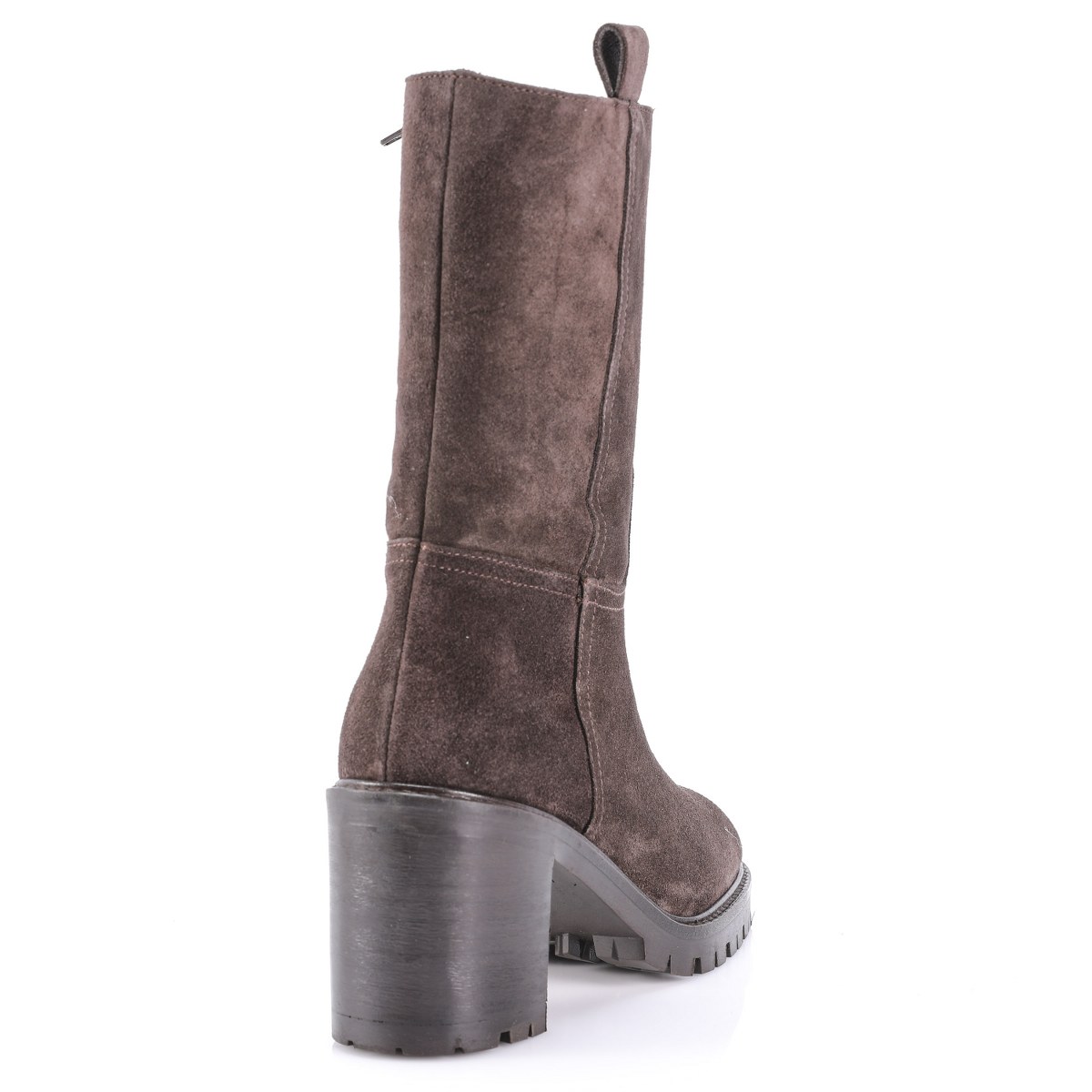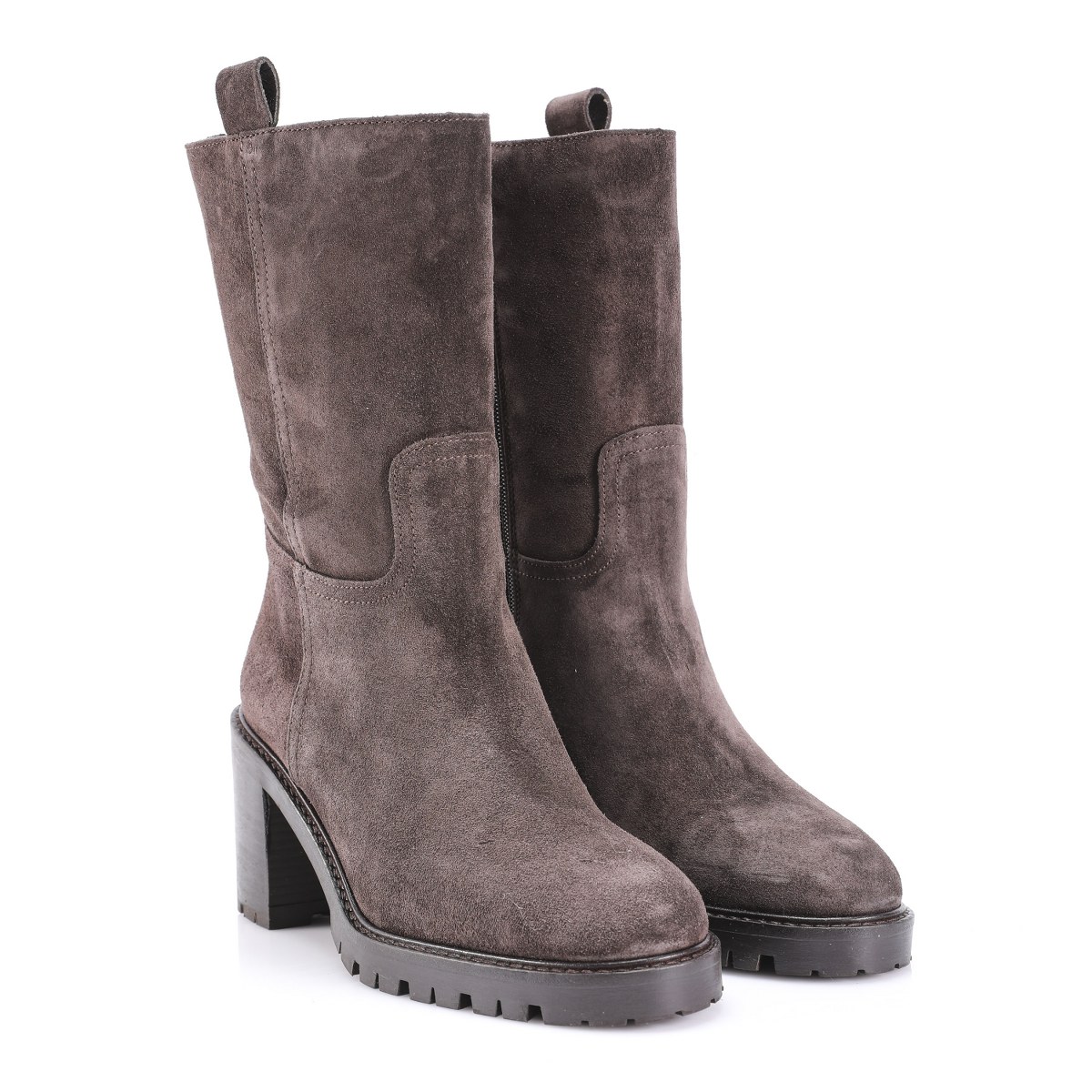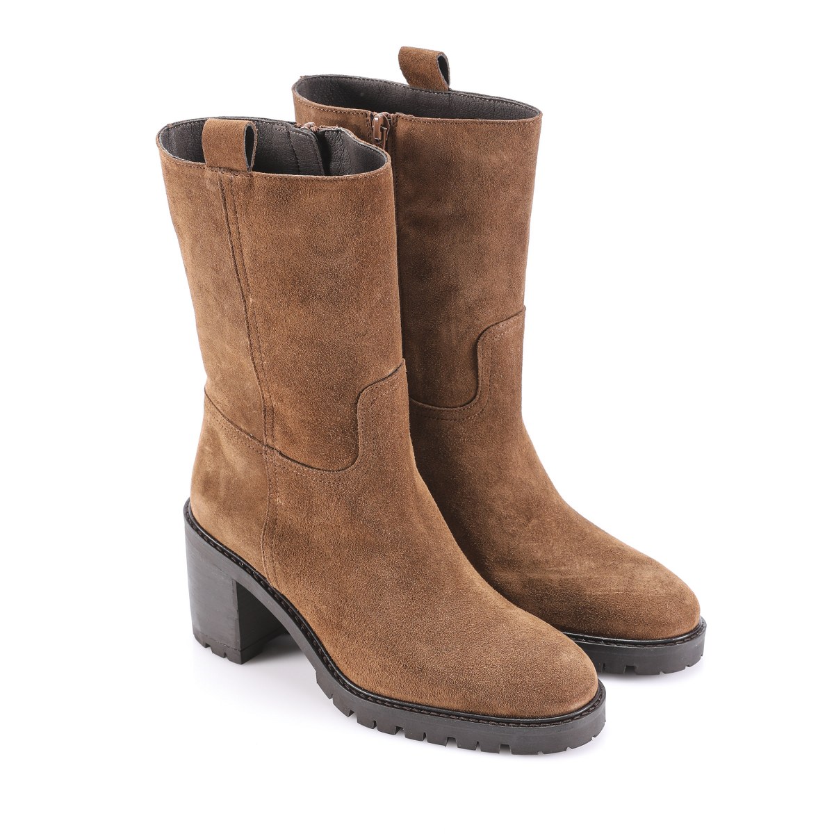Low boot in suede- side zip- heel 8- platform 2- rubber sole.