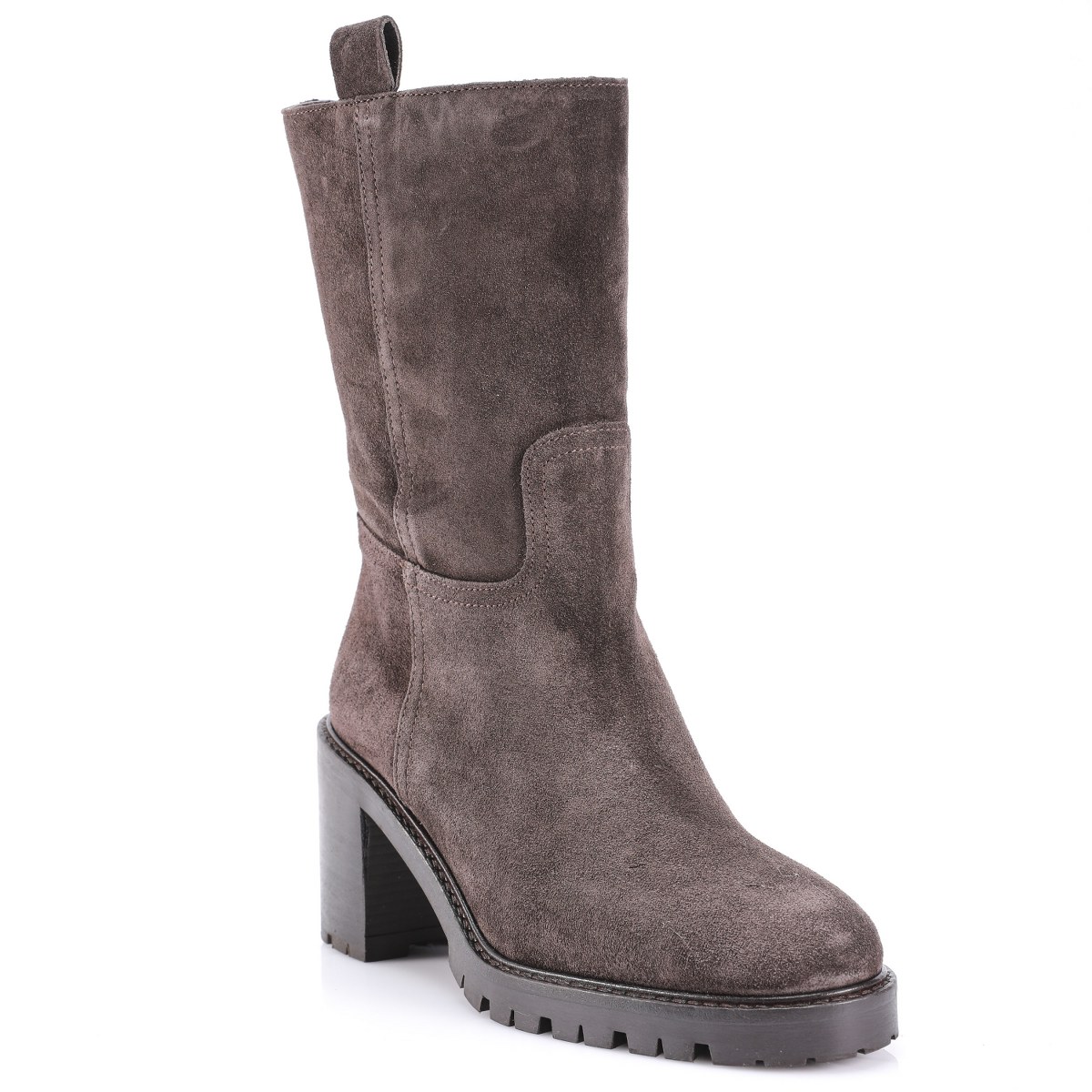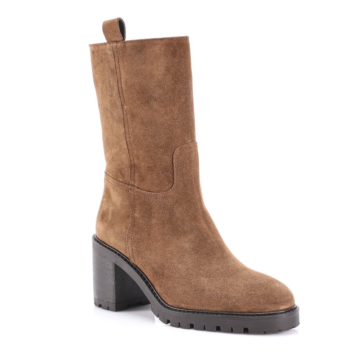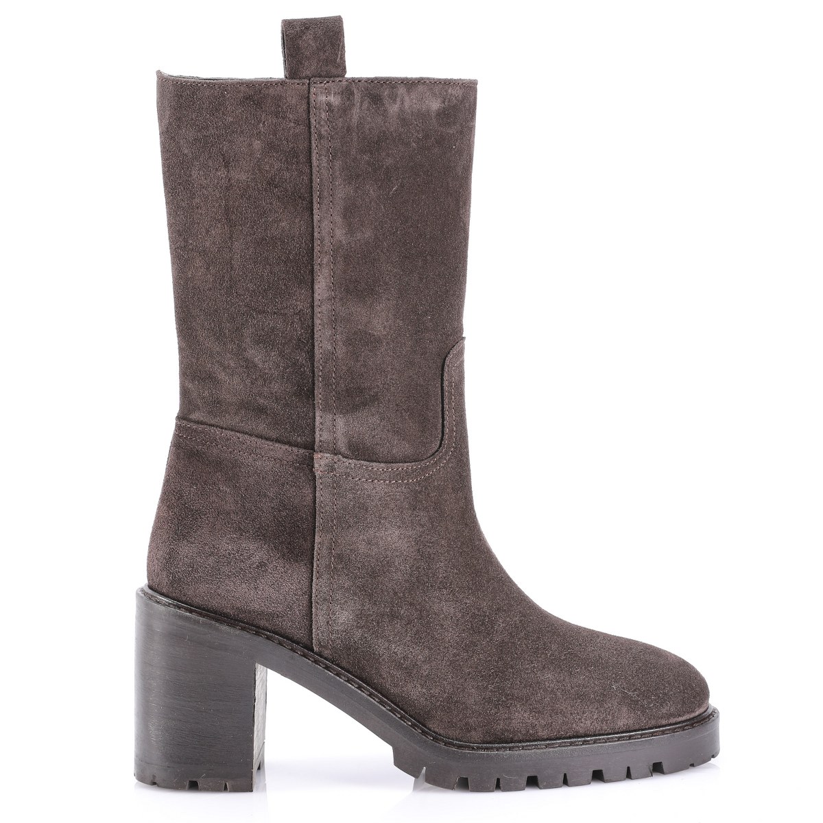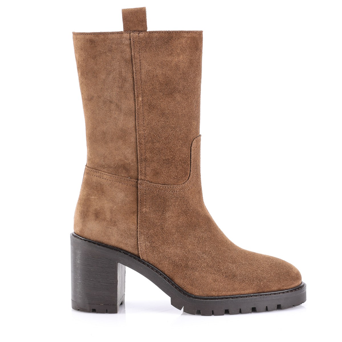 Low boot in suede- side zip- heel 8- platform 2- rubber sole.