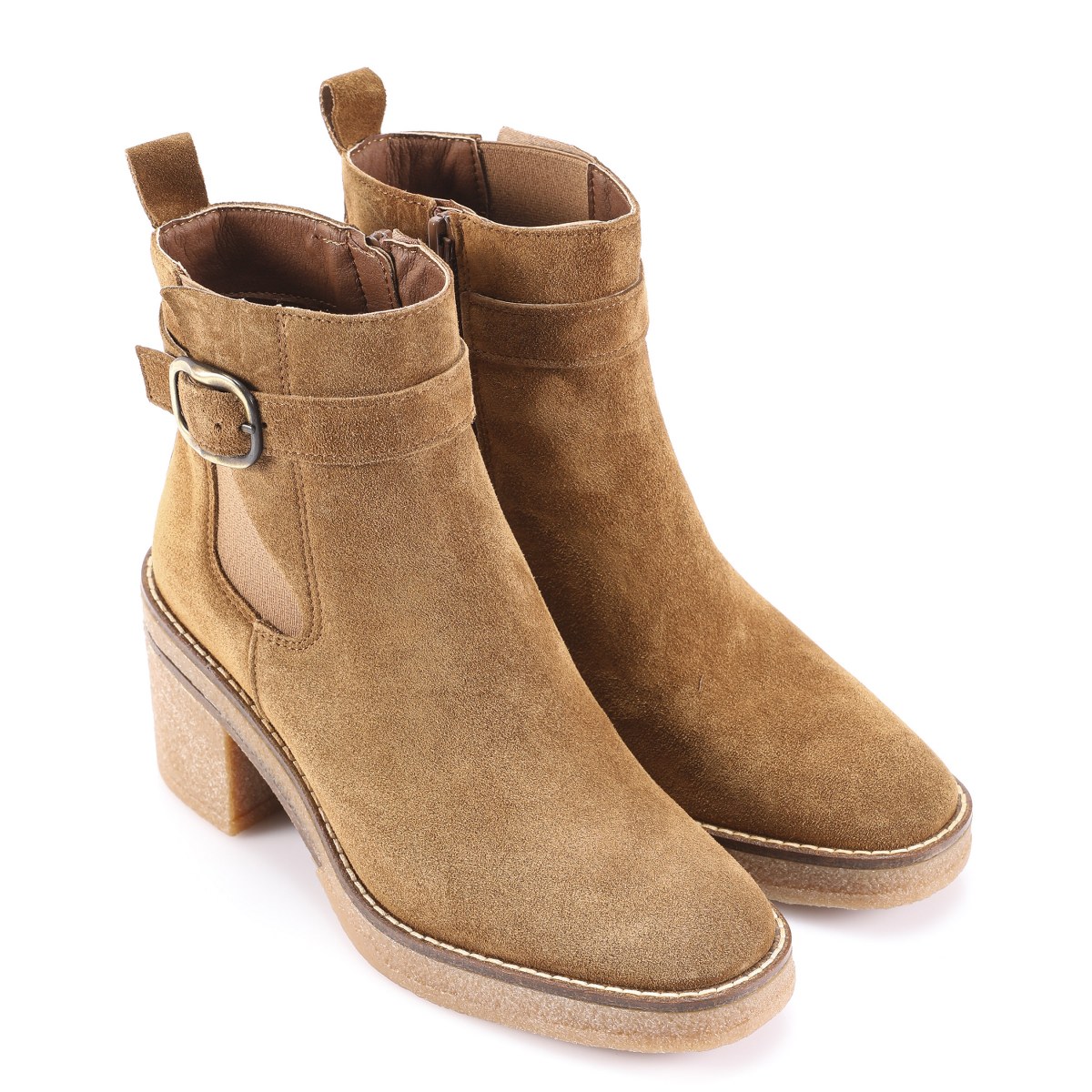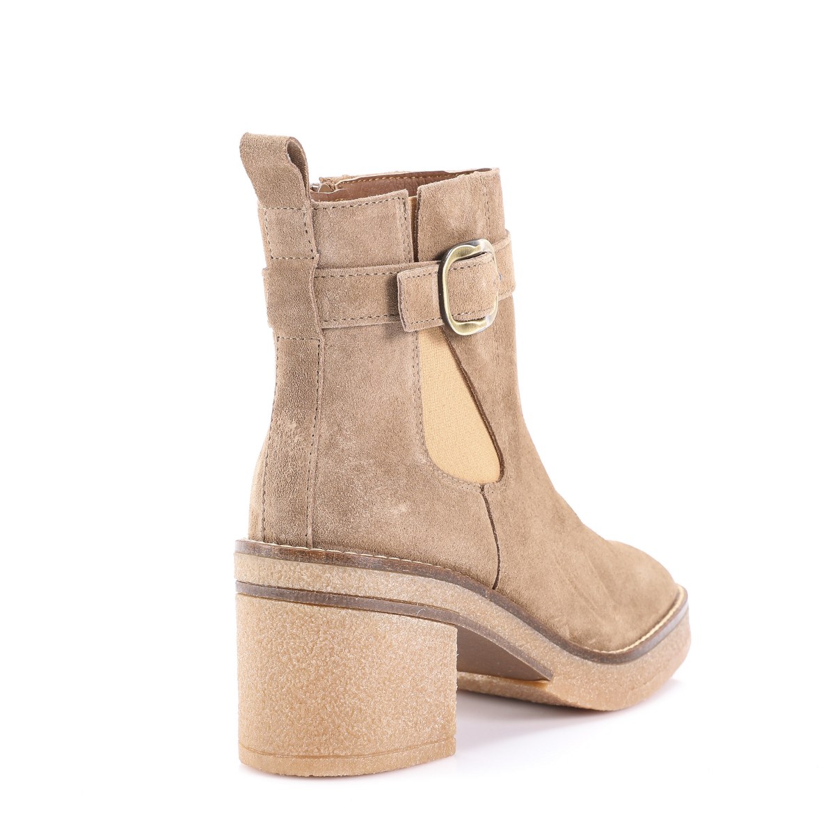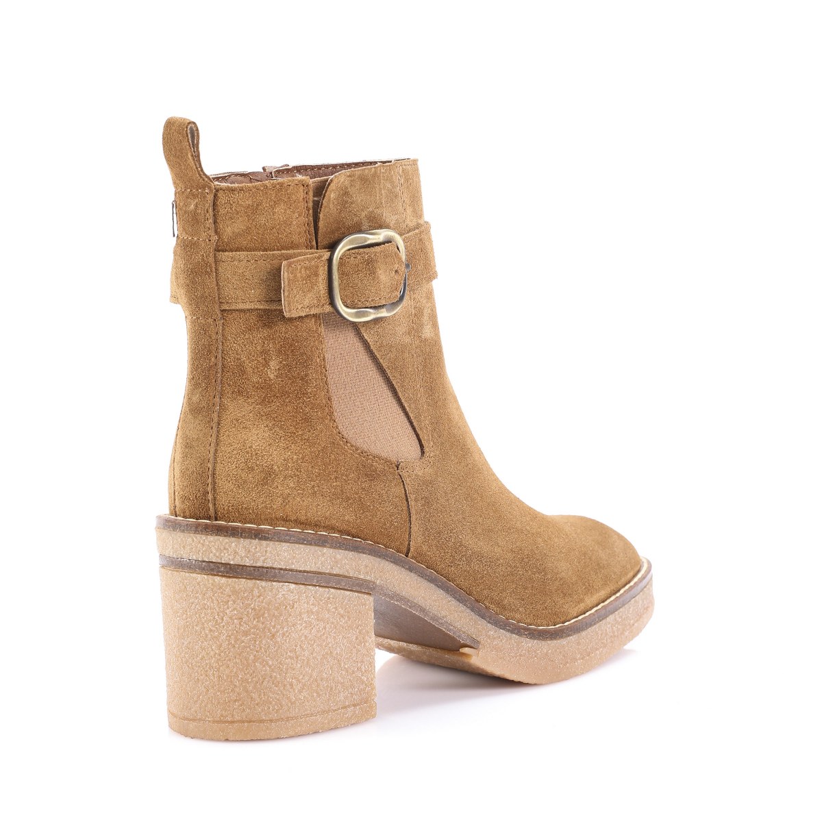 Low boot in suede- side zip- heel 7- platform 2- rubber sole.