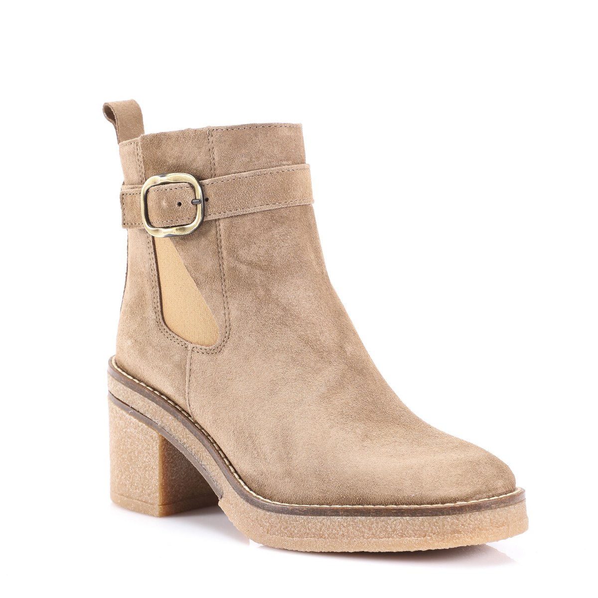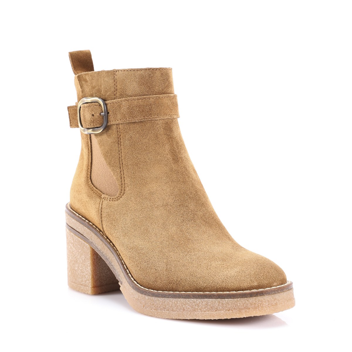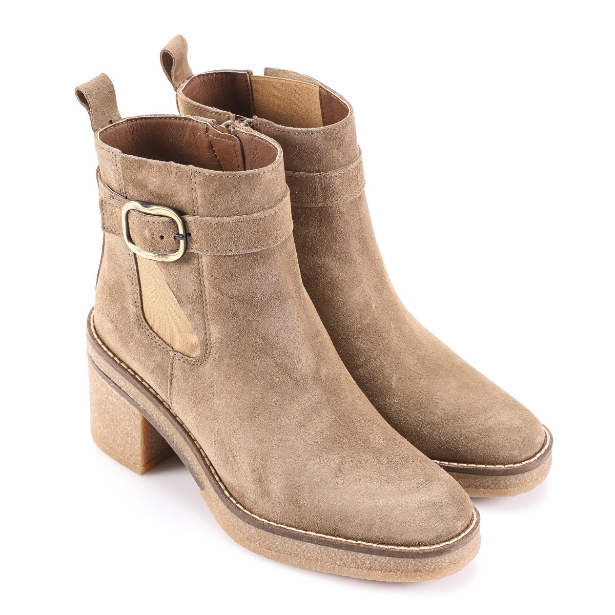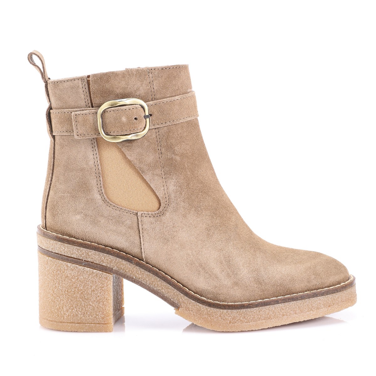 Low boot in suede- side zip- heel 7- platform 2- rubber sole.
