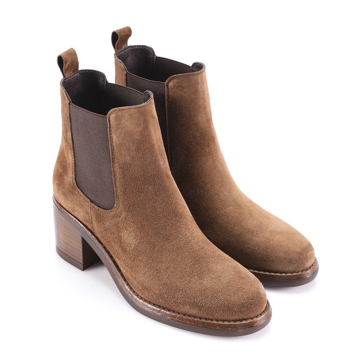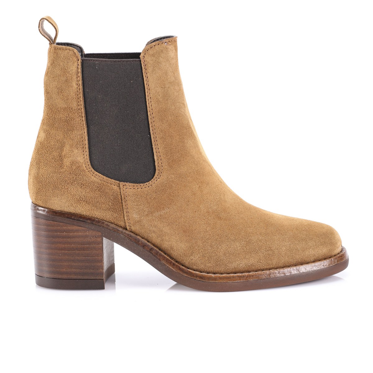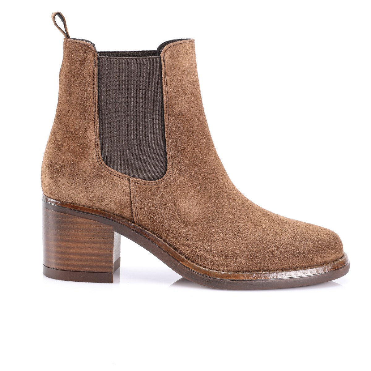 Low boot in suede- elastic sides- heel 7- platform 1.5- rubber sole.