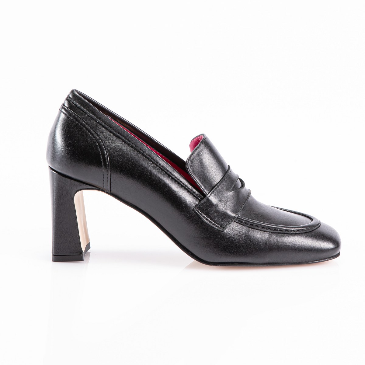 Pump in leather- heel 8- rubber sole.