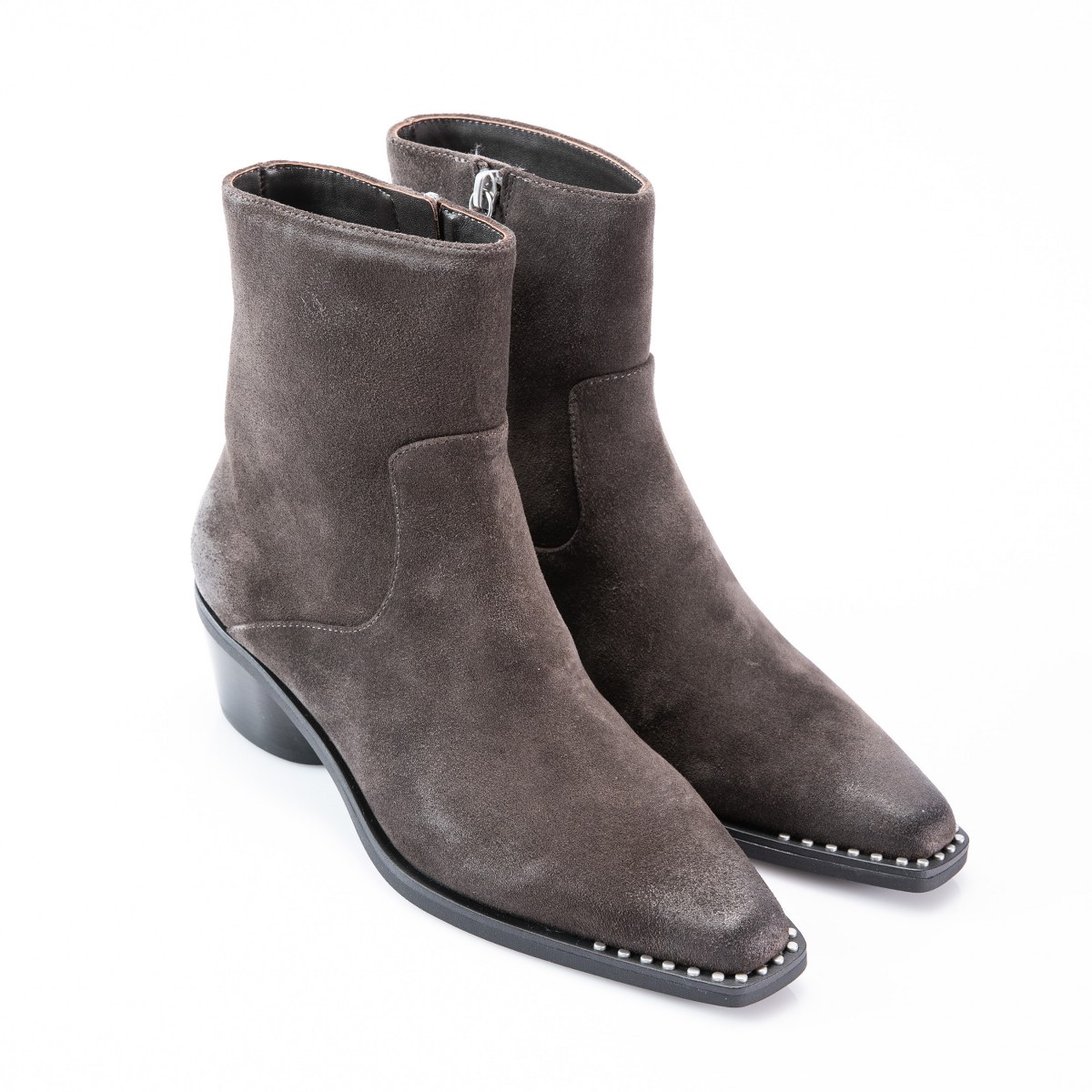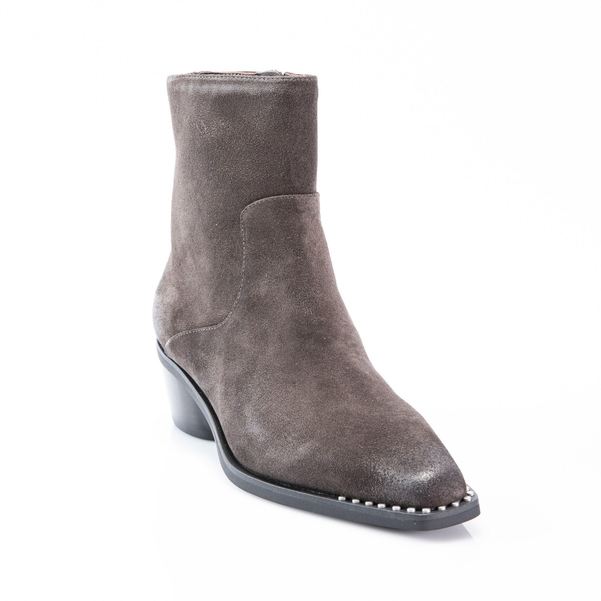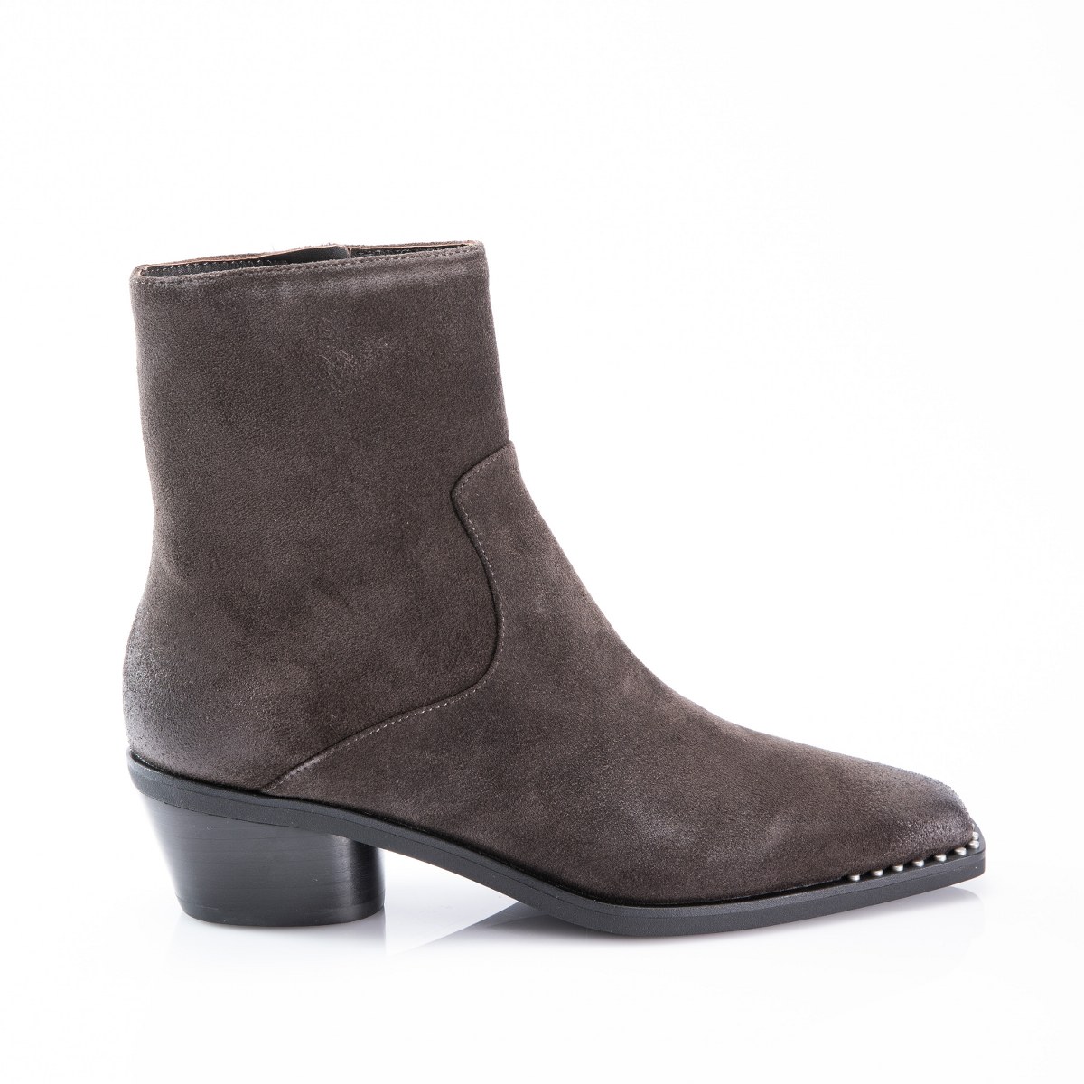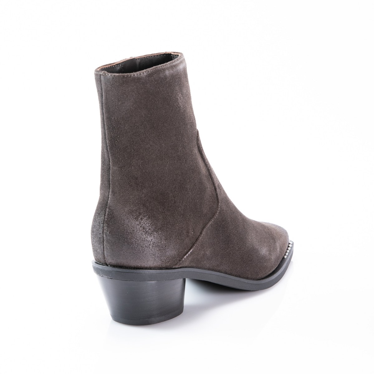 Low boot in suede- side zip- heel 5- rubber sole.