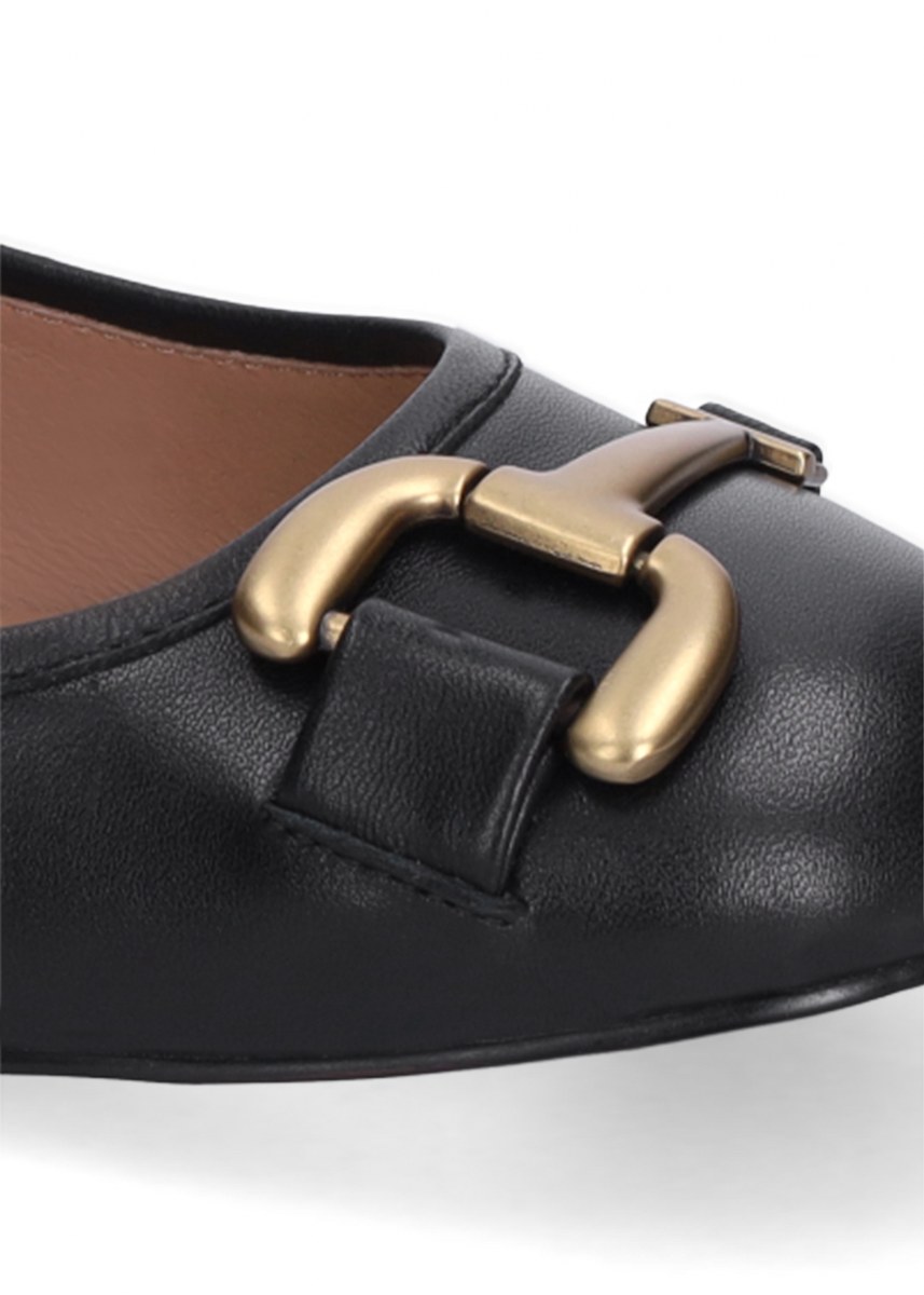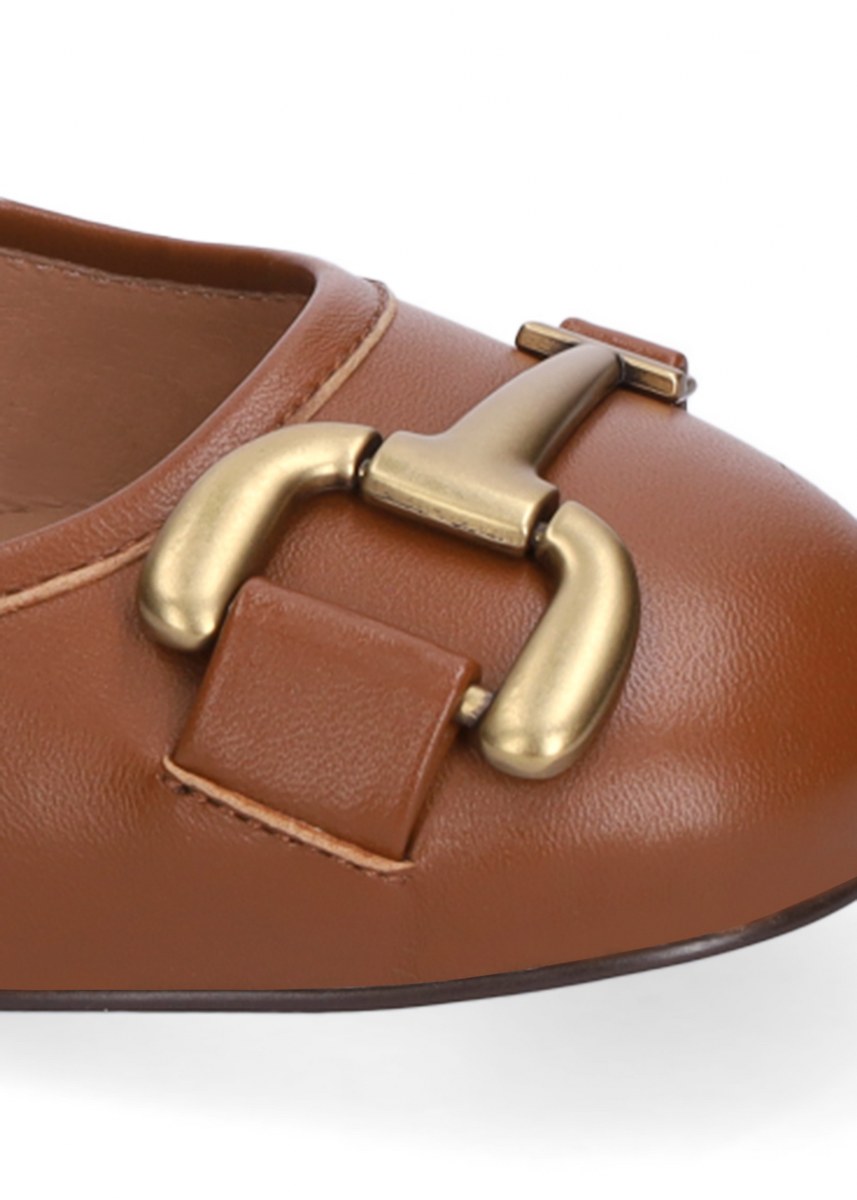 Flat shoes in leather- front strap- rubber sole.