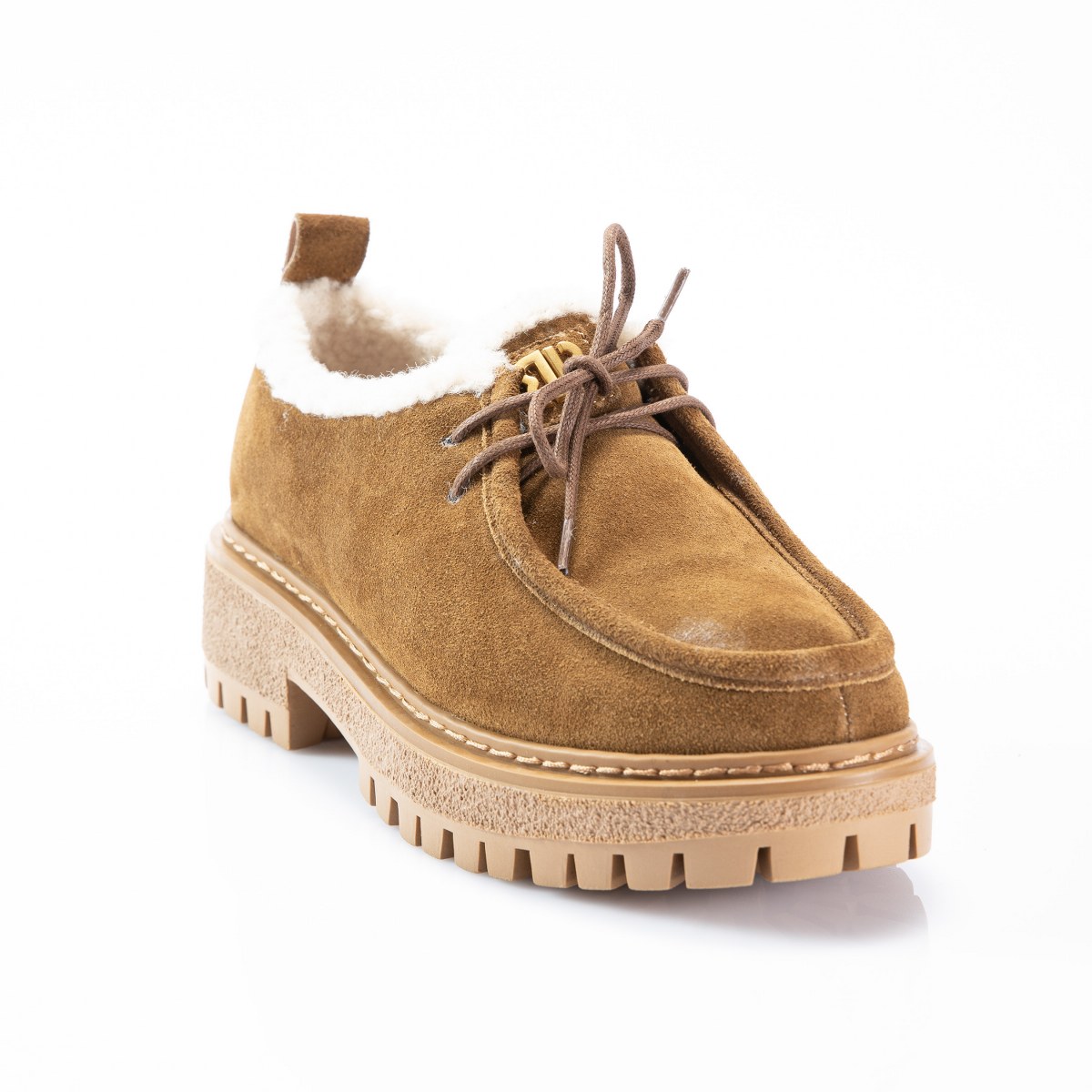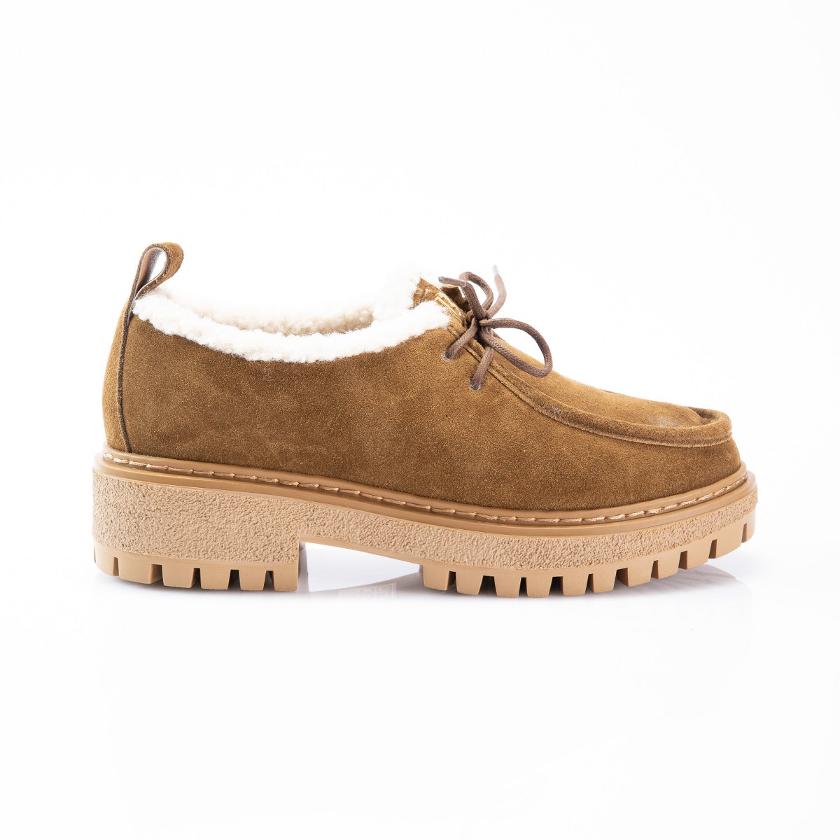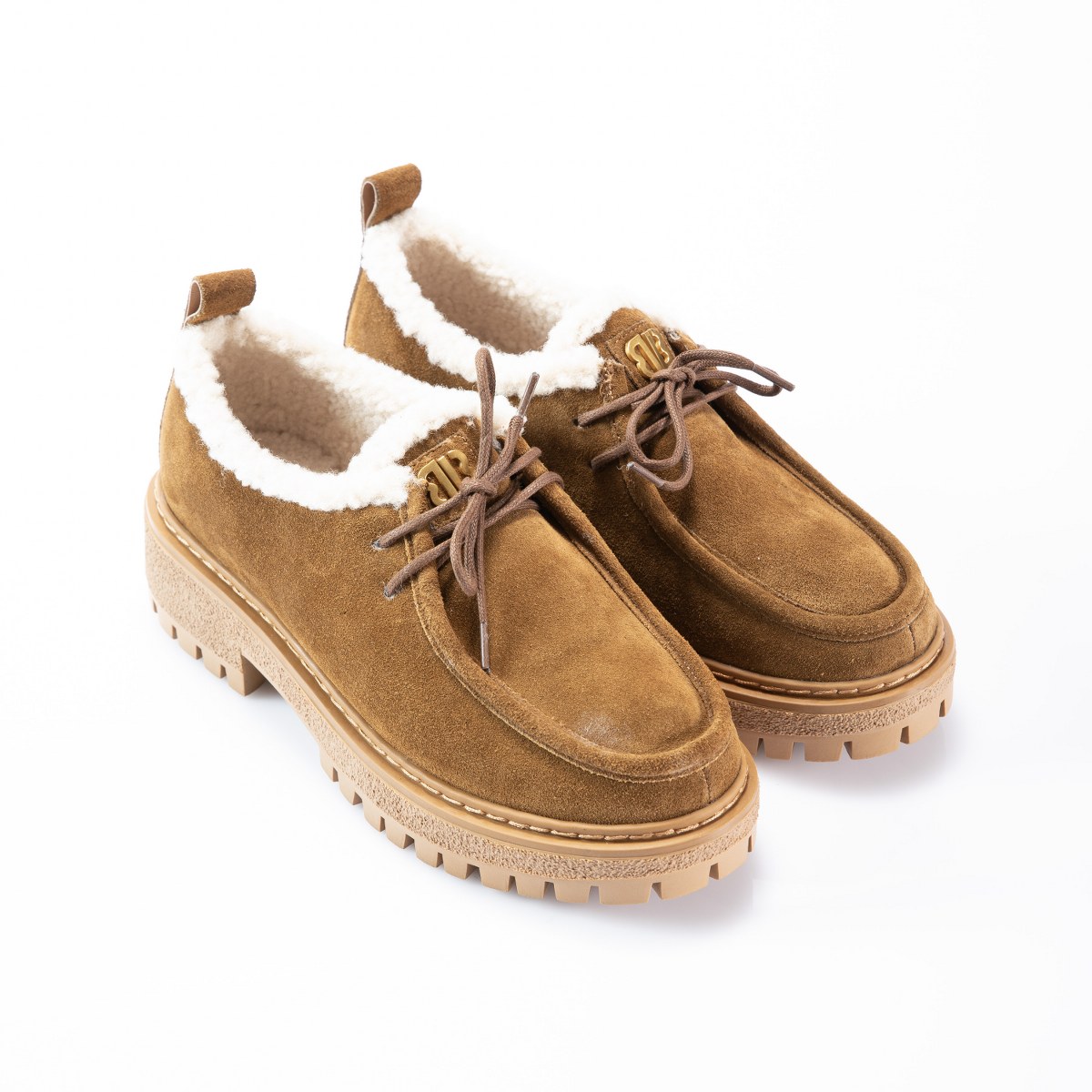 Loafer in suede- fur inside- heel 5- platform 3- rubber sole.