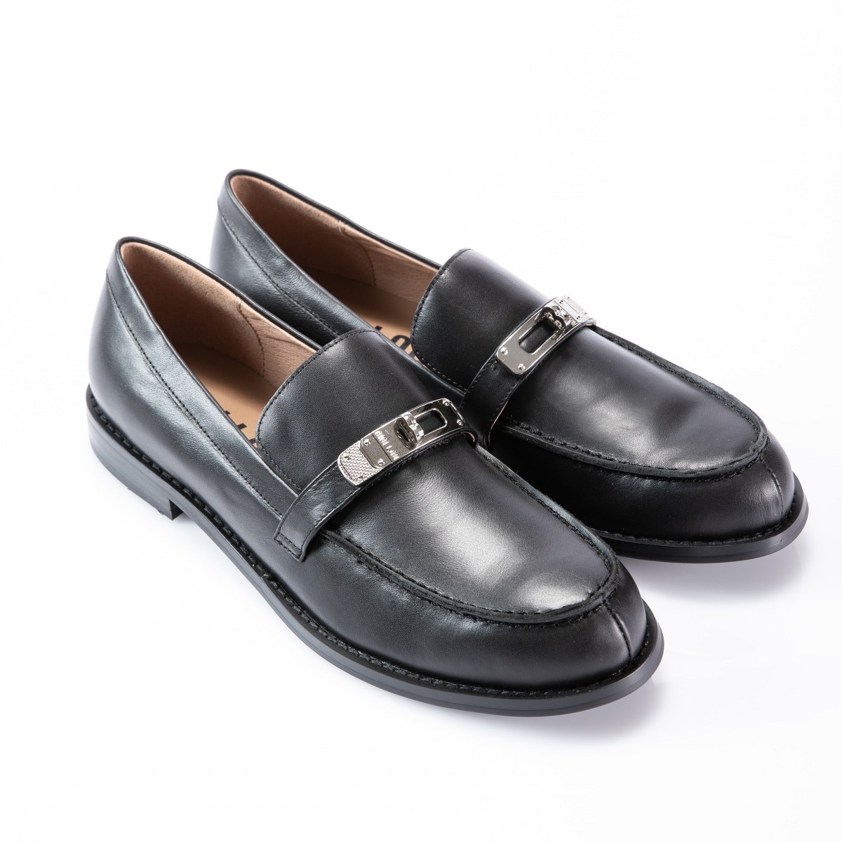 Flat in leather- rubber sole.