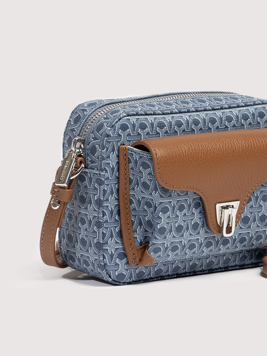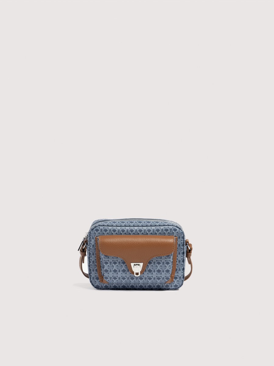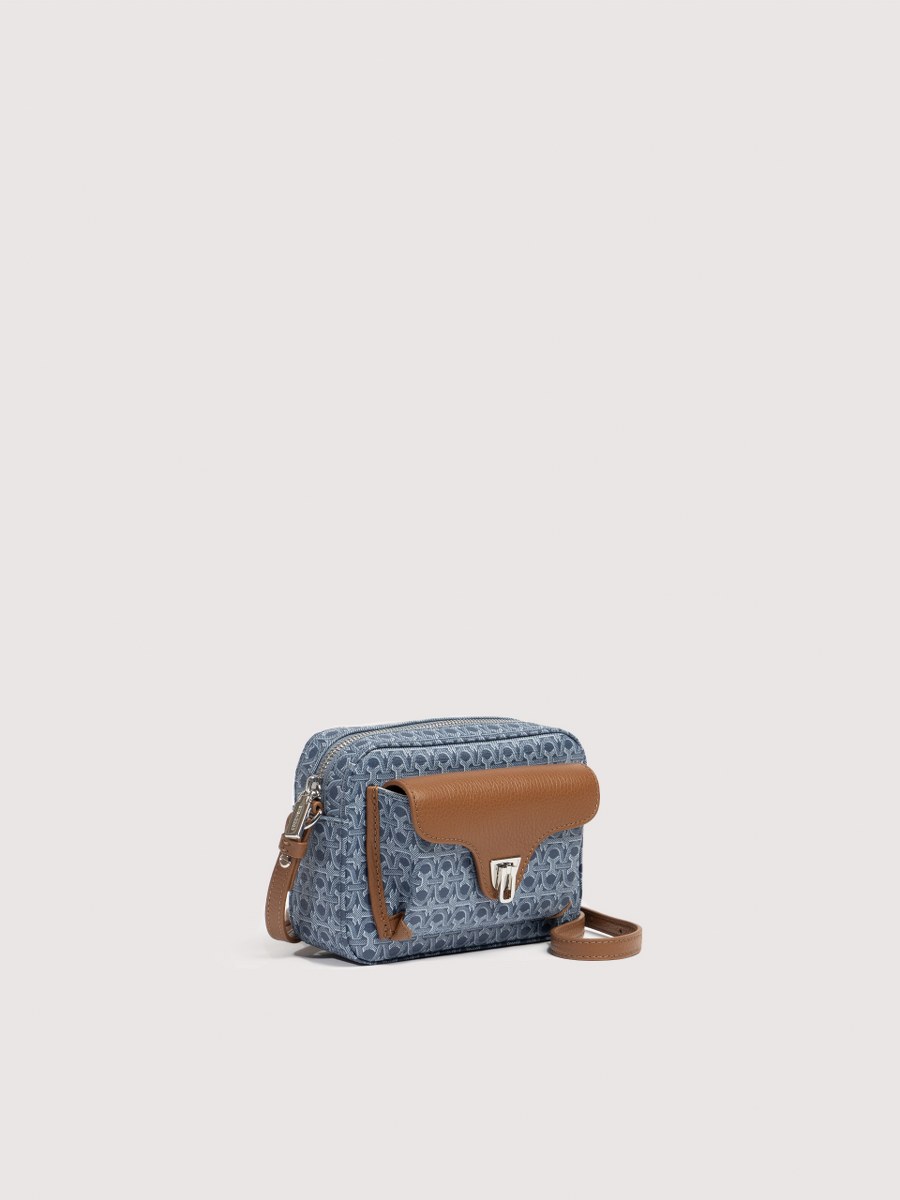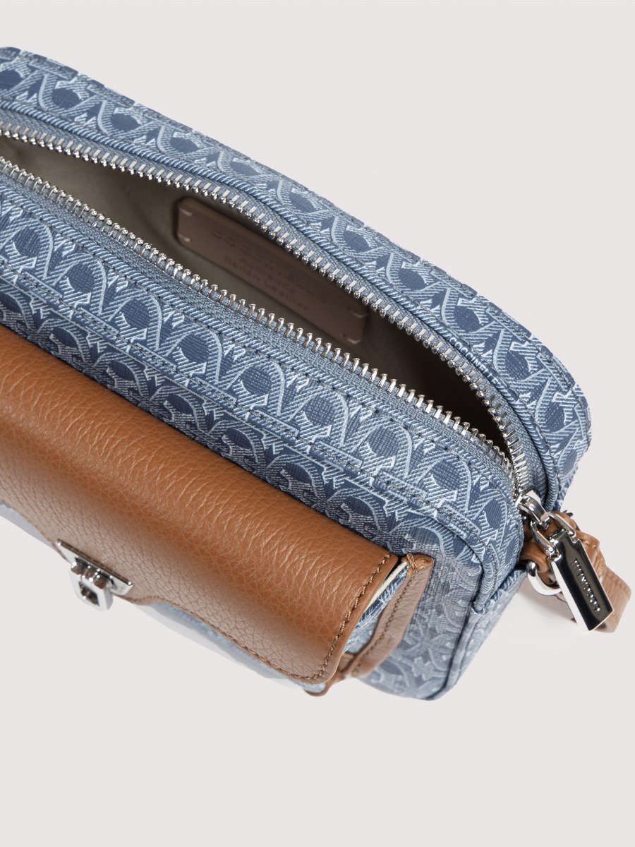 Crossbody in leather and fabric- adjustable and detachable strap- front pocket