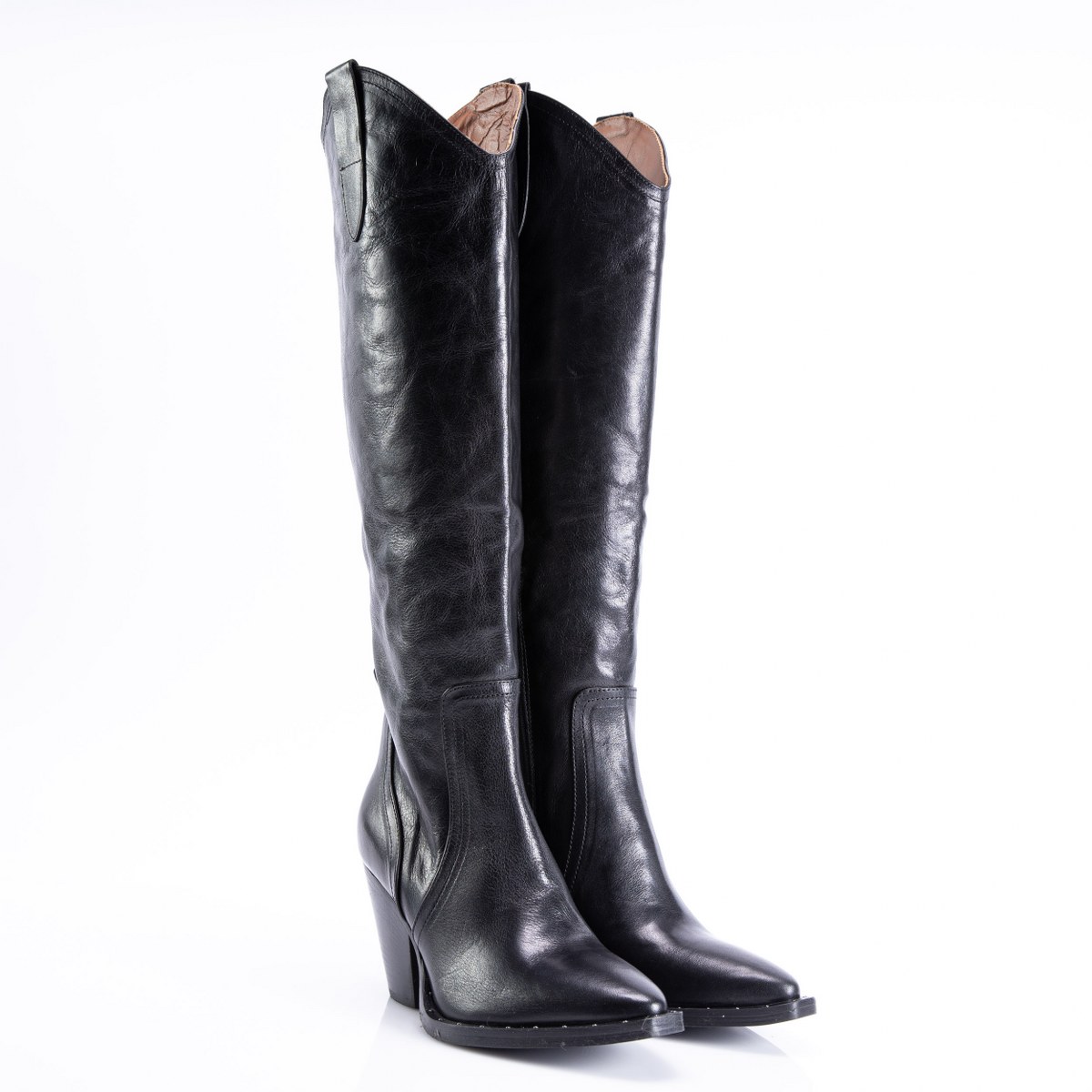 Boot in leather- half side zip- heel 8- leather sole.