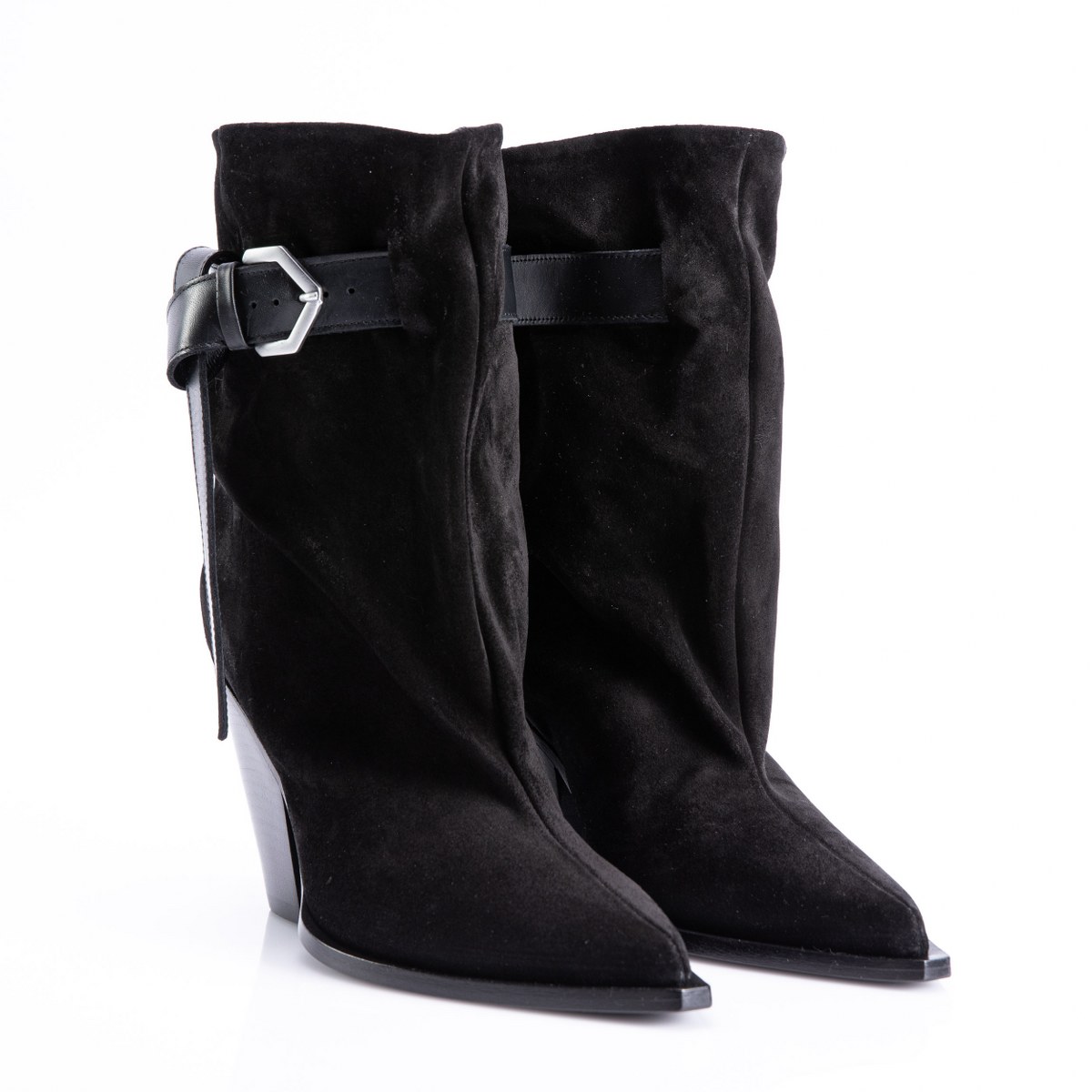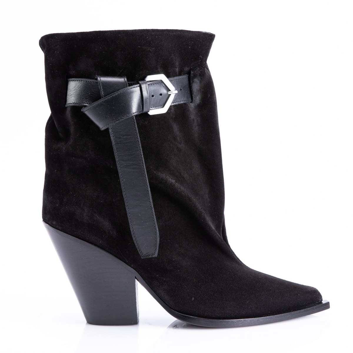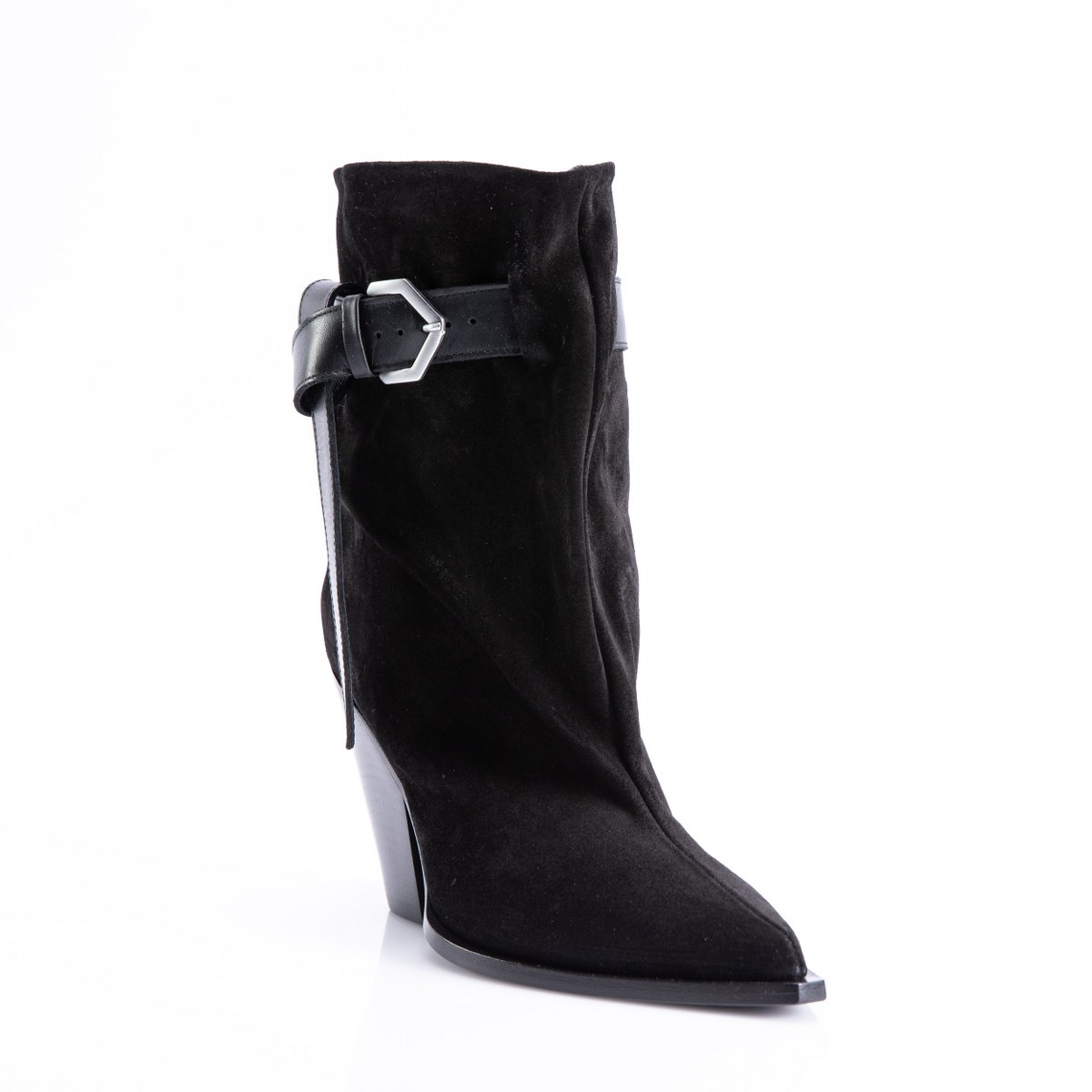 Low boot in nubuck- slip on- heel 10- leather sole.