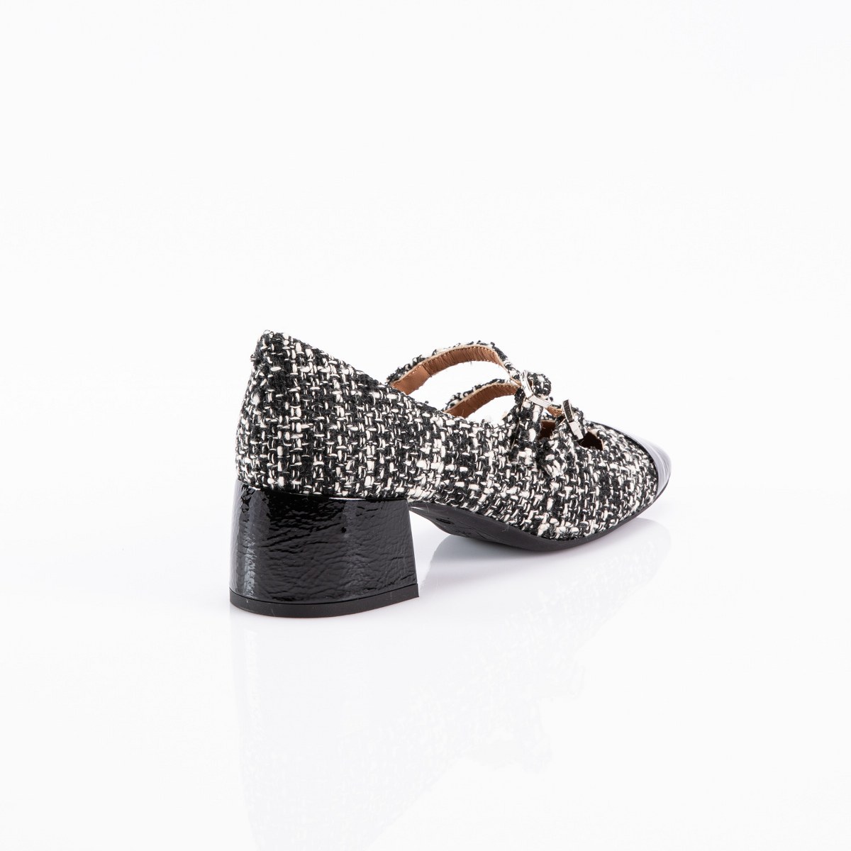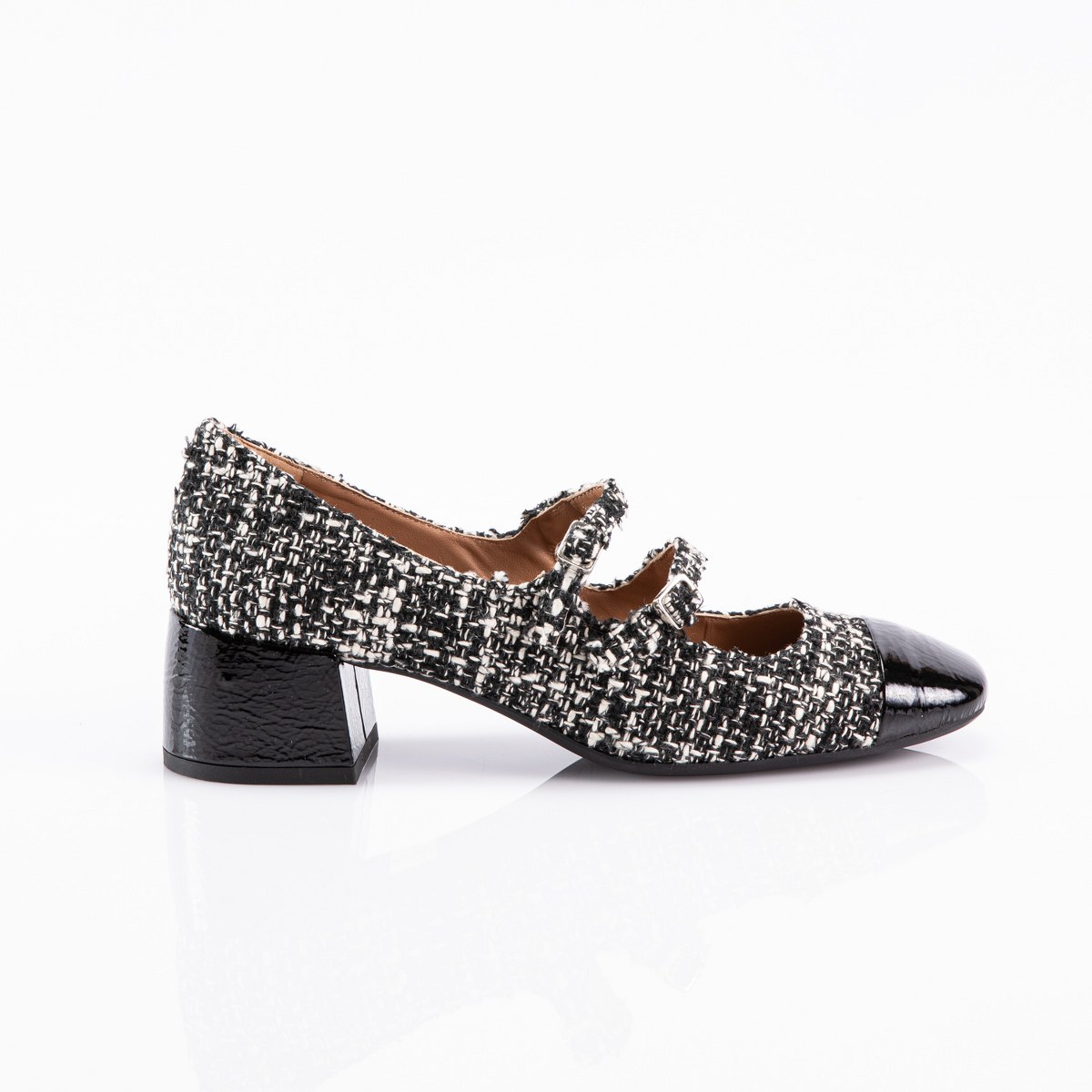 Pump in leather and suede- front laces- heel 5- rubber sole.
