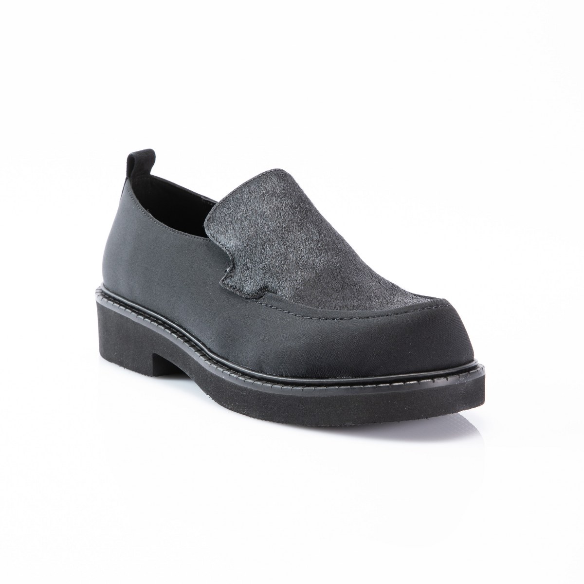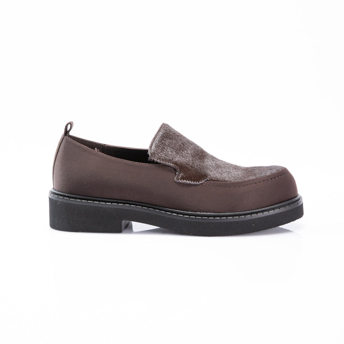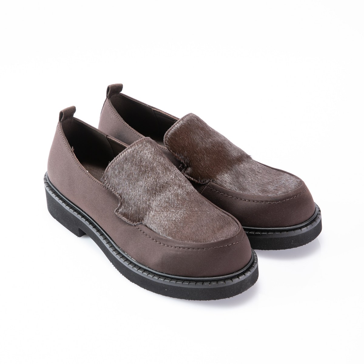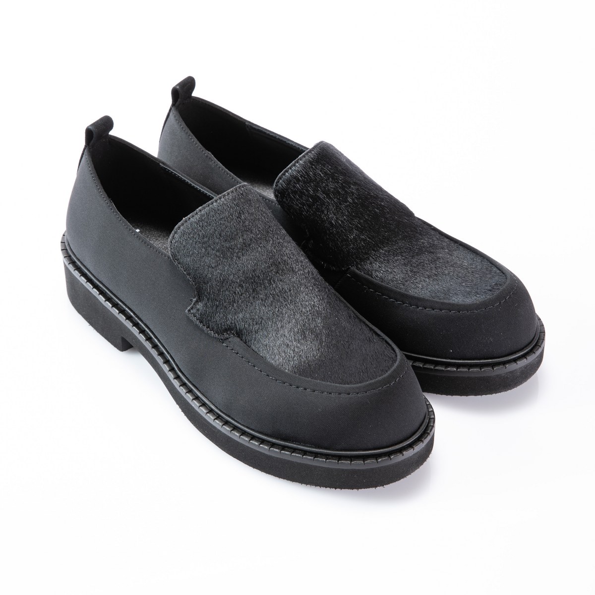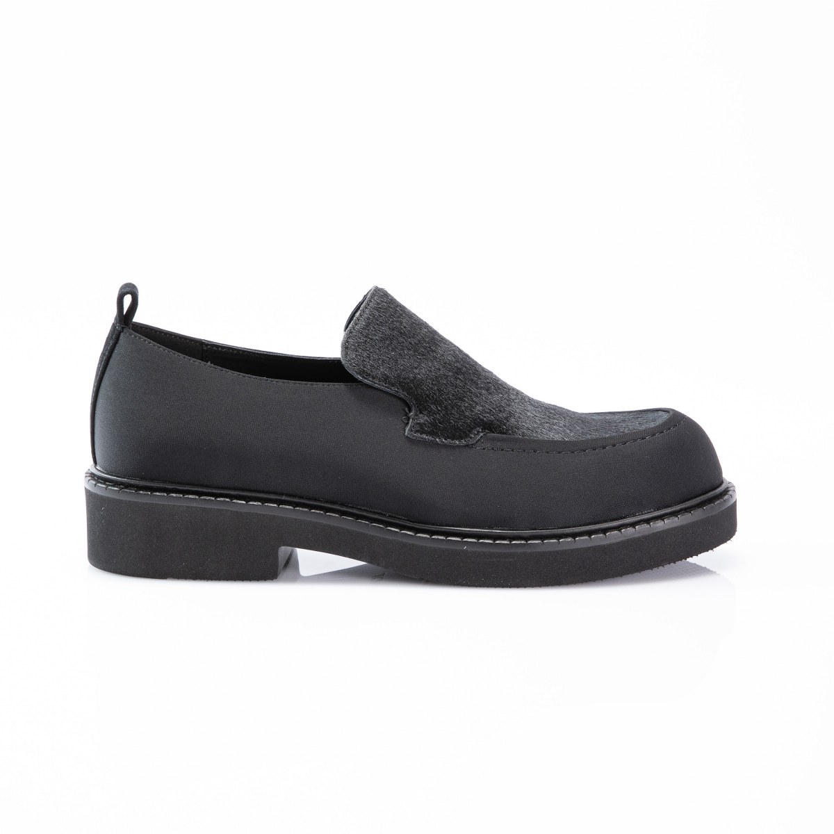 Loafer in neoprene and poney- heel 4- platform 2- rubber sole.