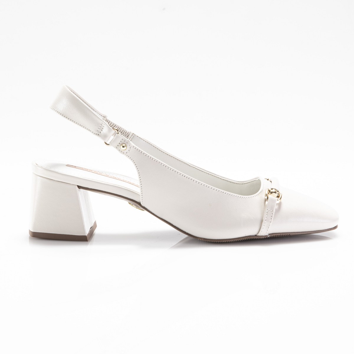 Pump in leather- back strap- heel 6- rubber sole.