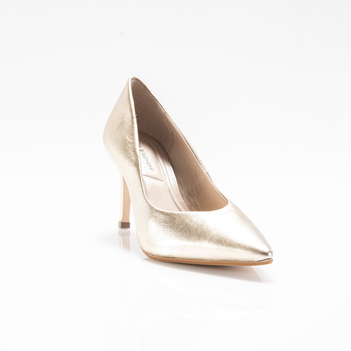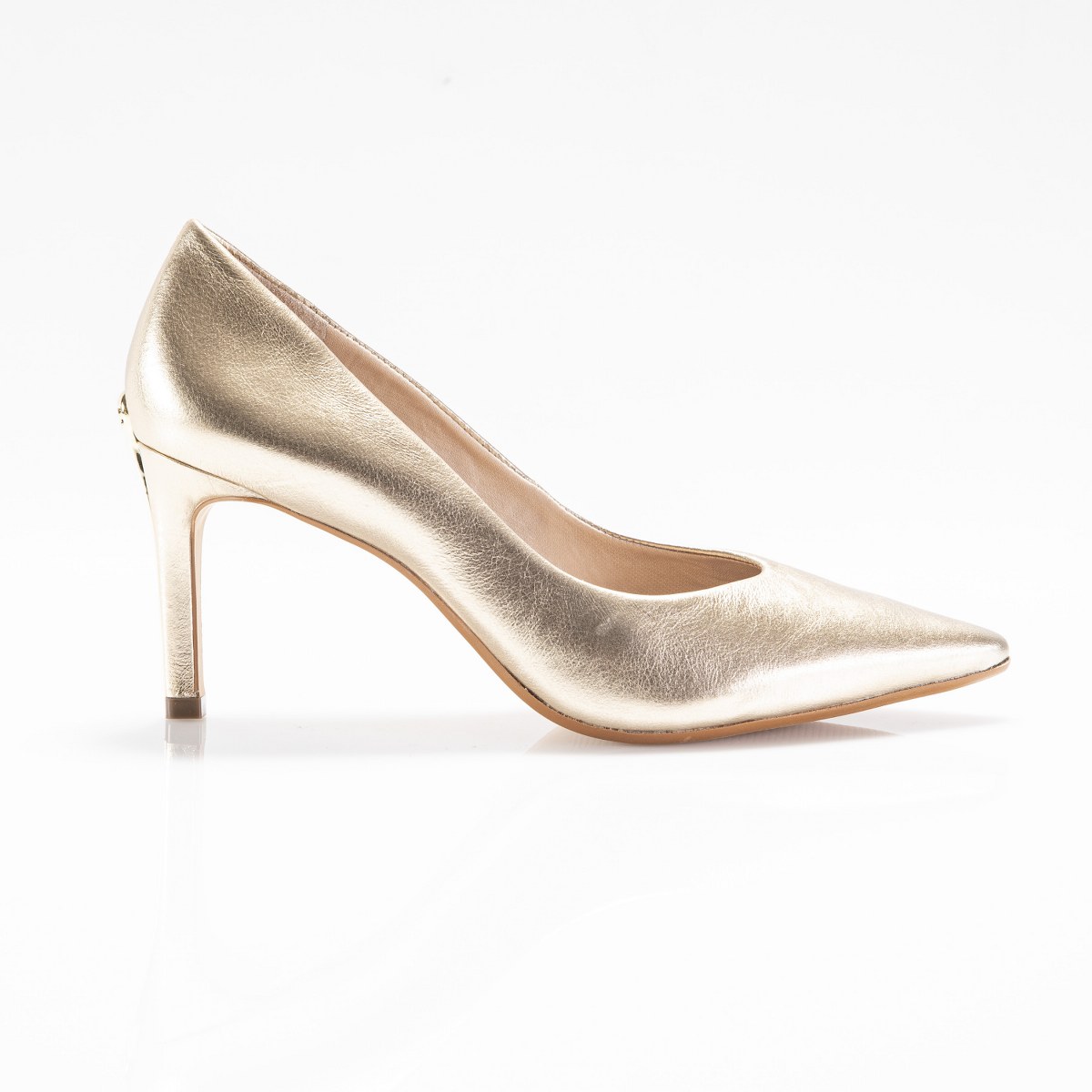 Decollete in shiny leather- heel 8- rubber sole.