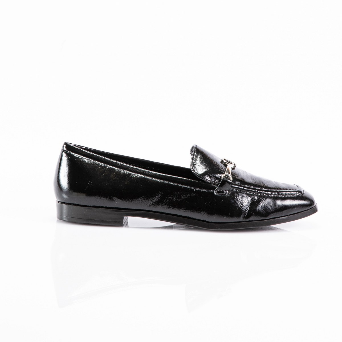 Mocassin in shiny leather- rubber sole.