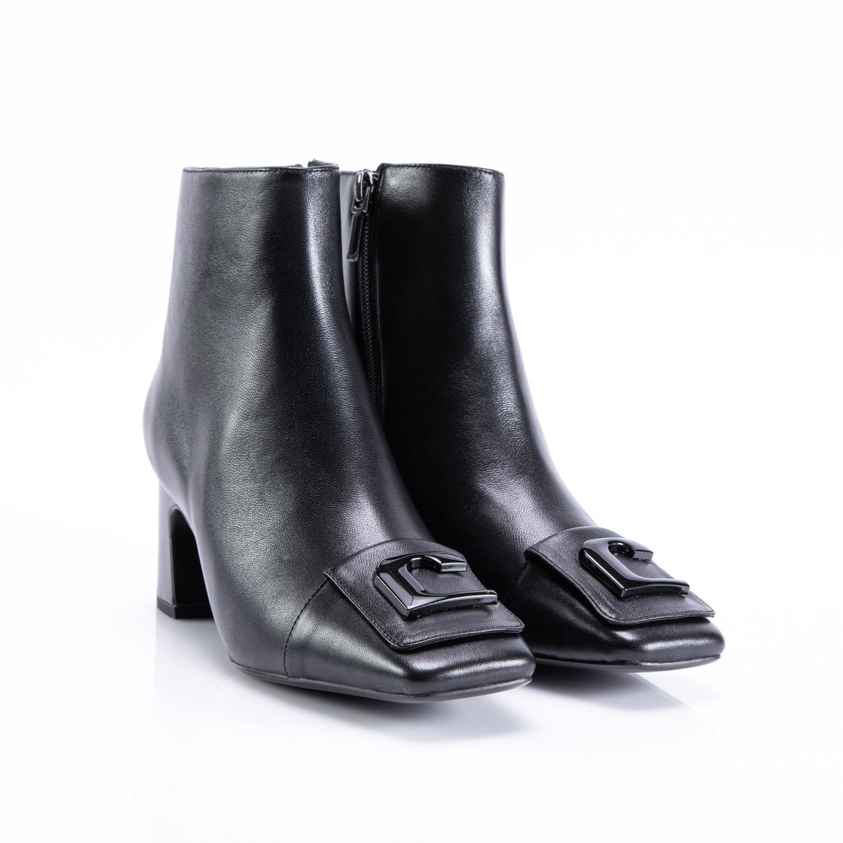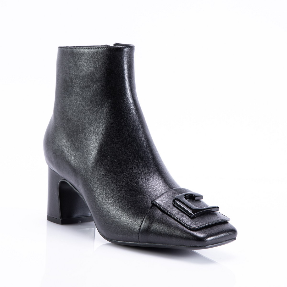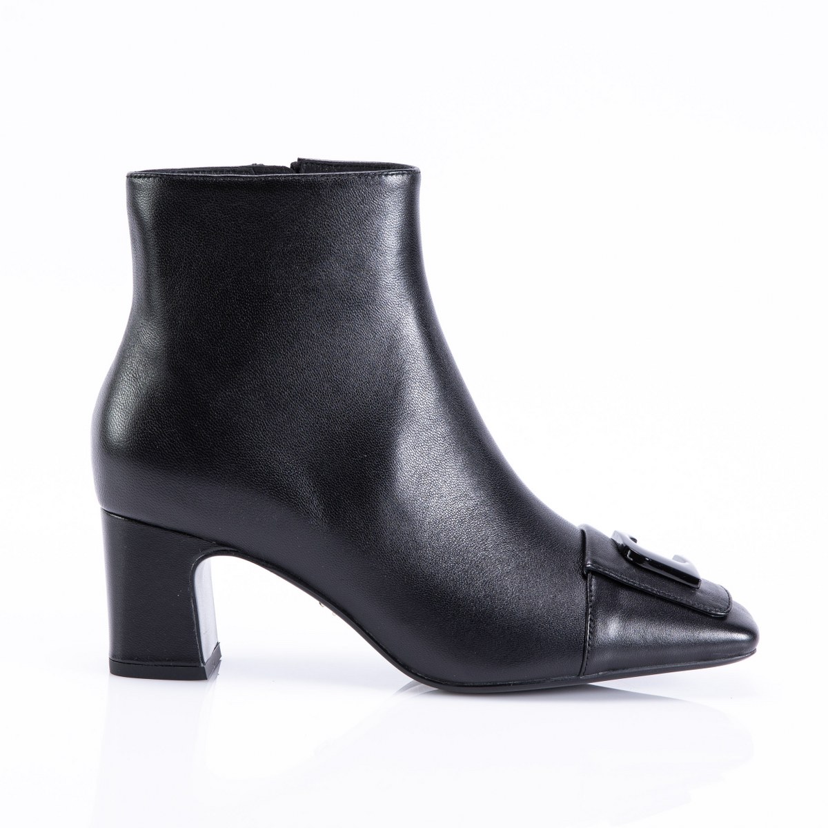 Low boot in leather- side zip- heel 6- rubber sole.