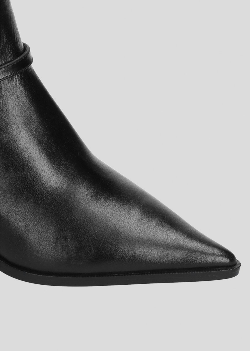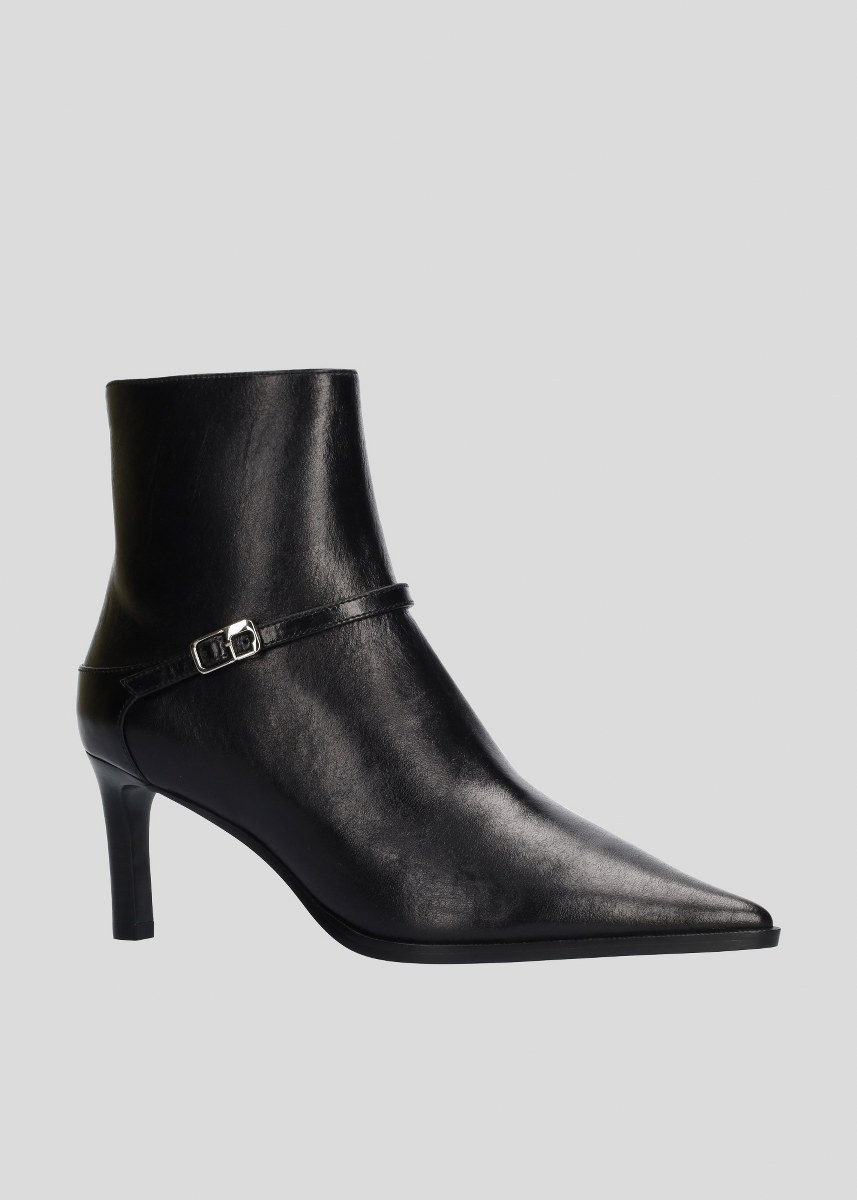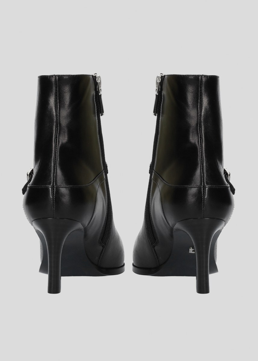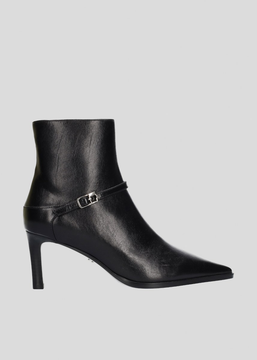 Low boot in leather- side zip- heel 7- rubber sole.