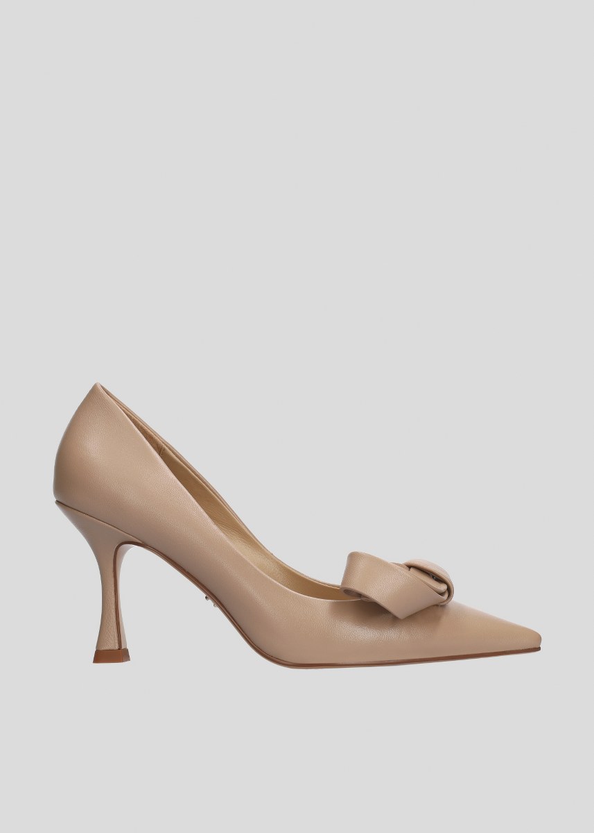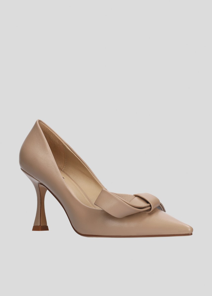 Decollete in leather- heel 8- rubber sole.
