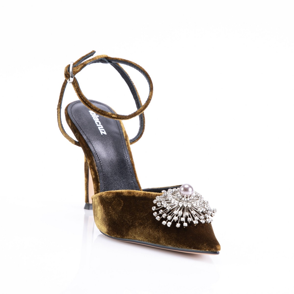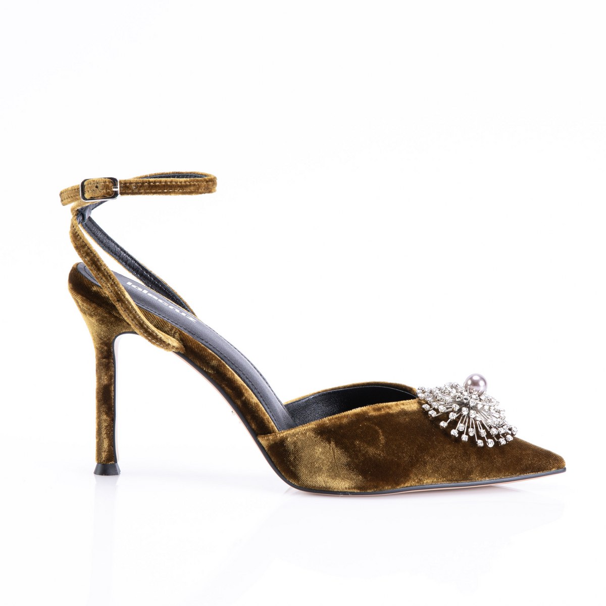 Pump in velvet with ankle strap- heel 10- rubber sole.