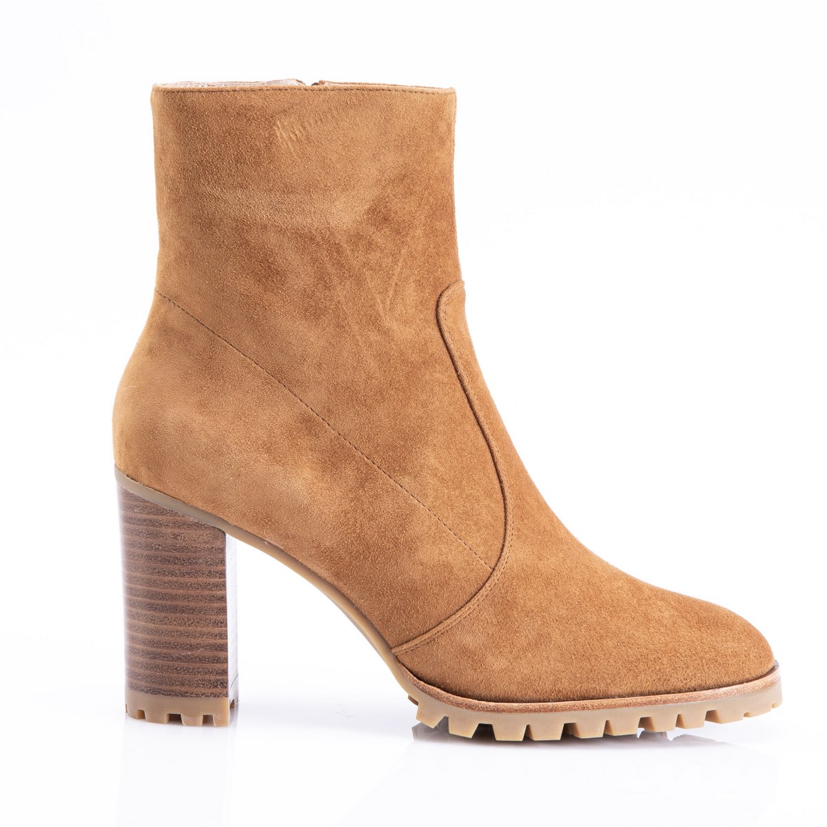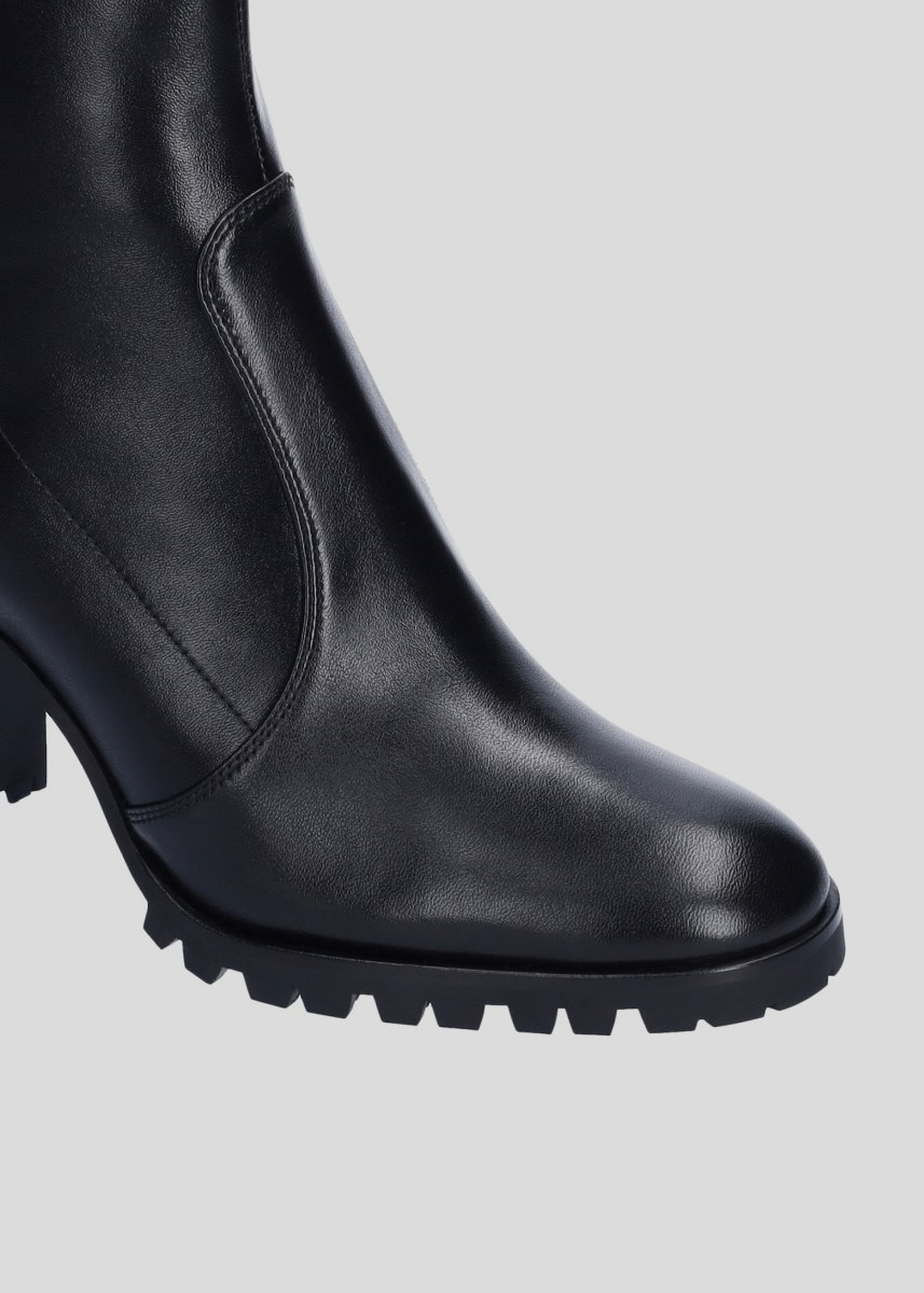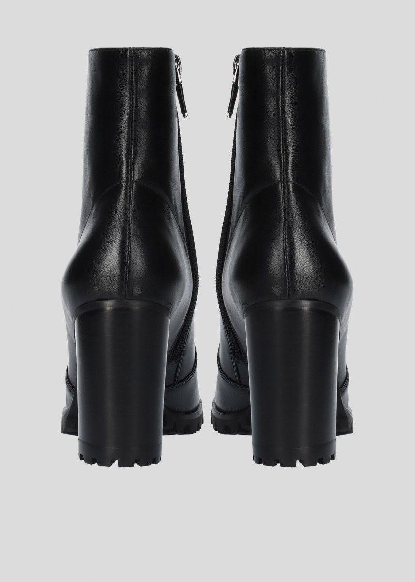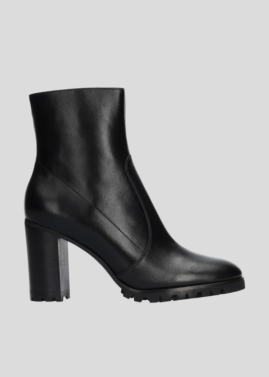Low boot in leather- side zip- heel 9- rubber sole.