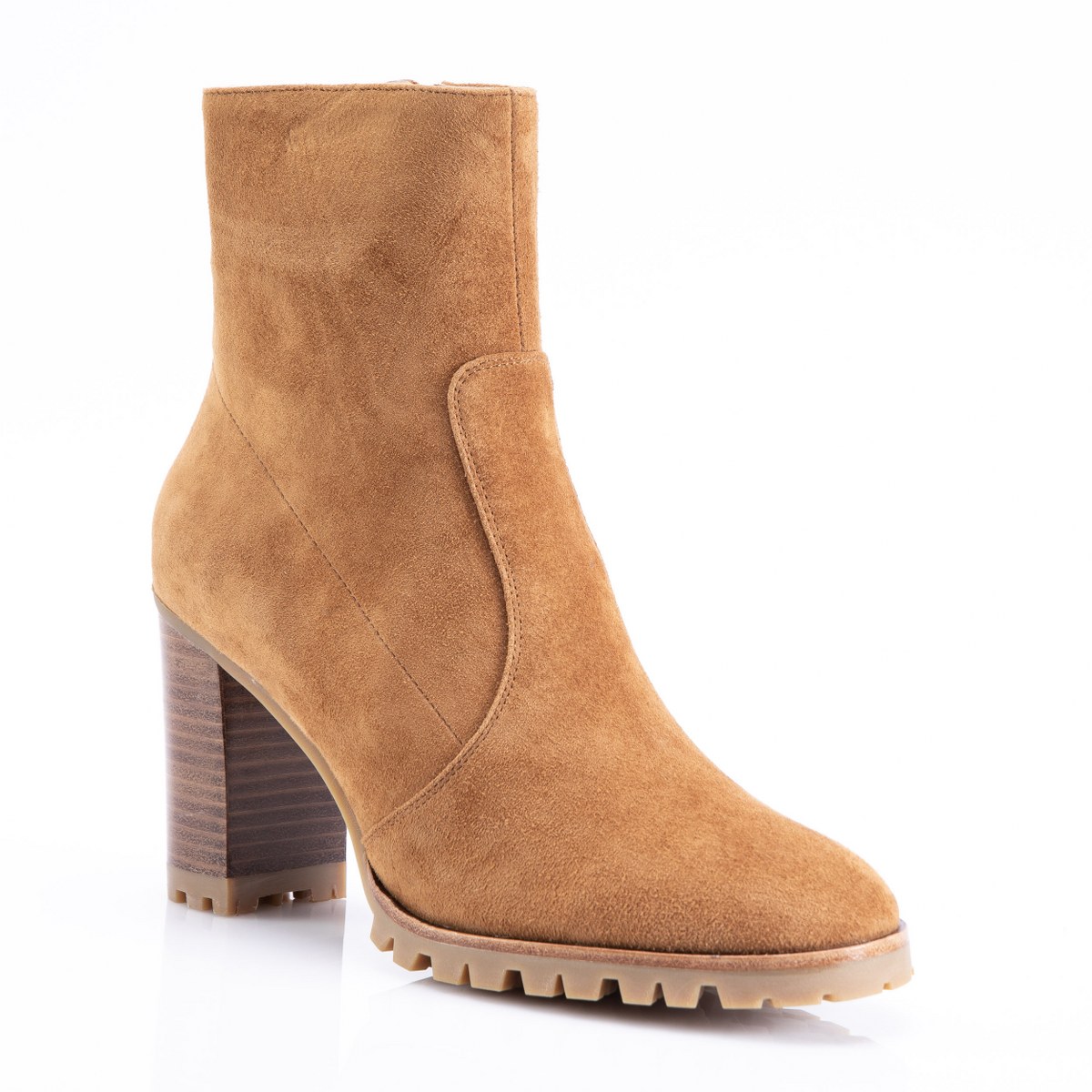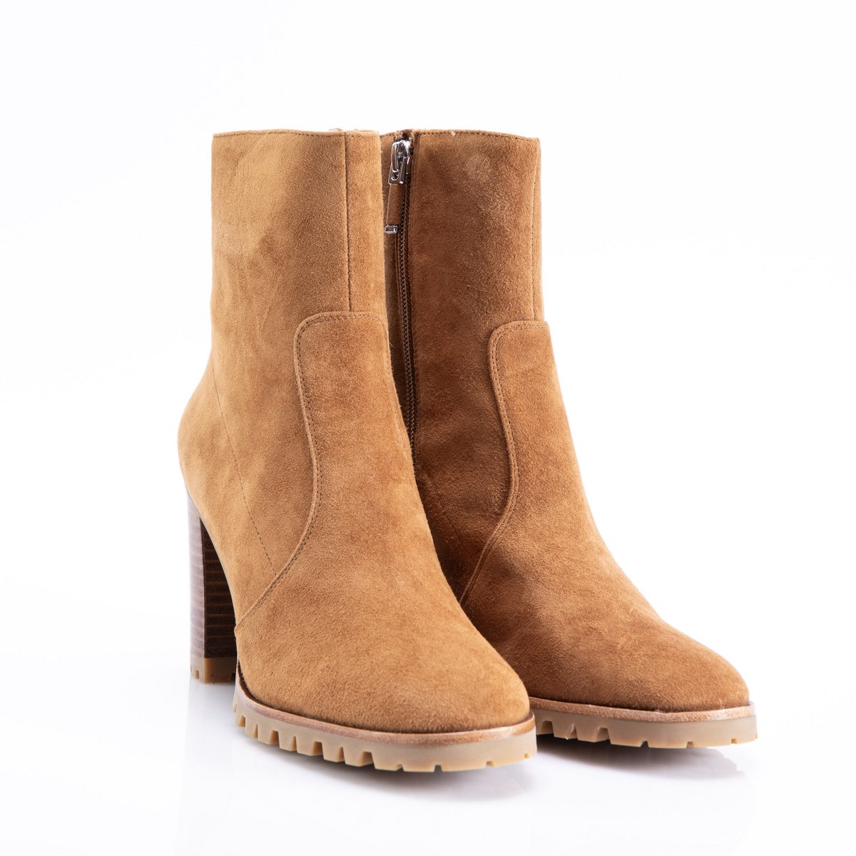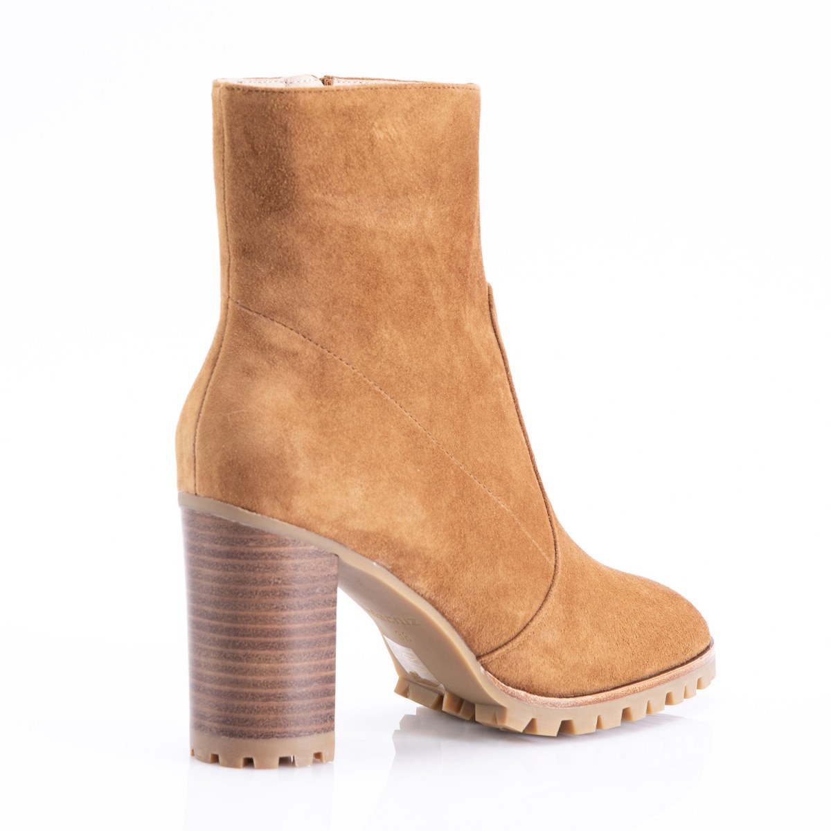 Low boot in leather- side zip- heel 9- rubber sole.