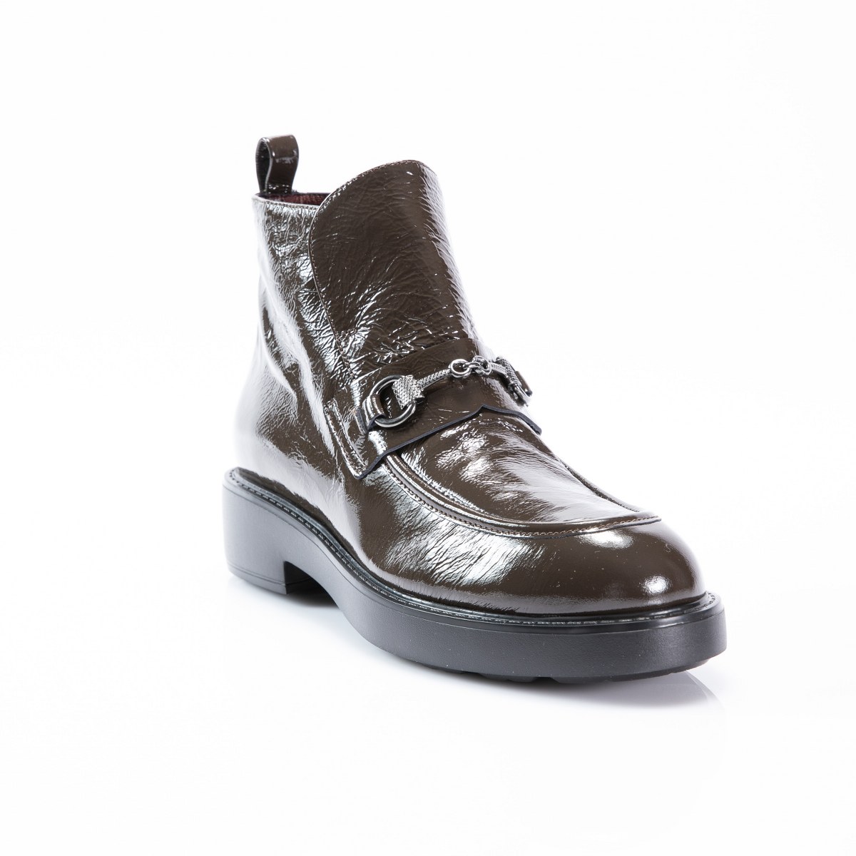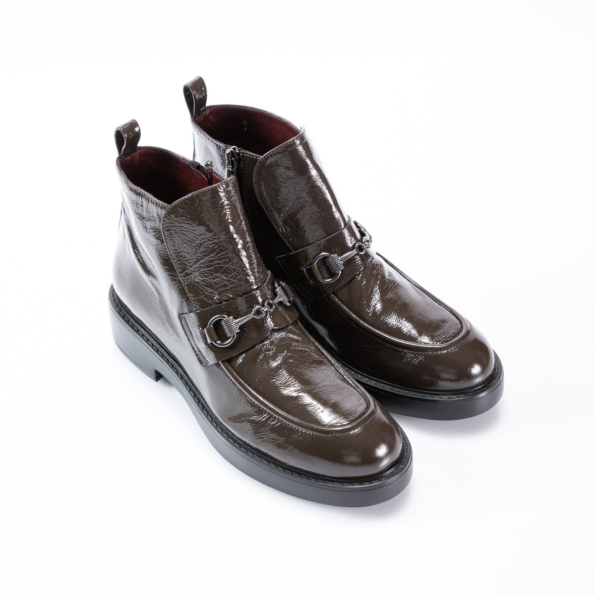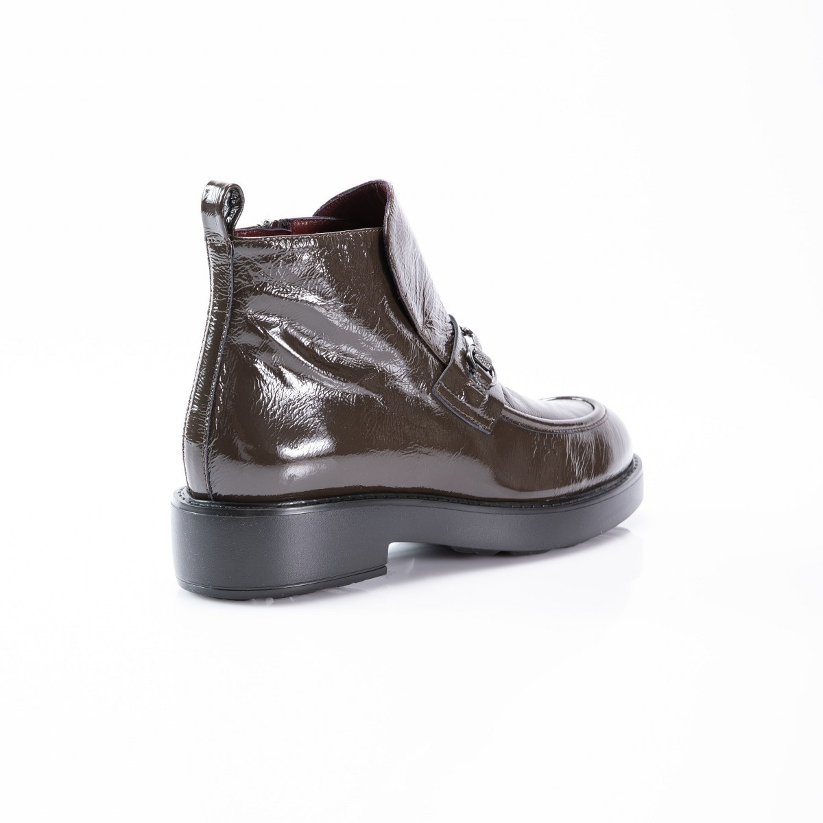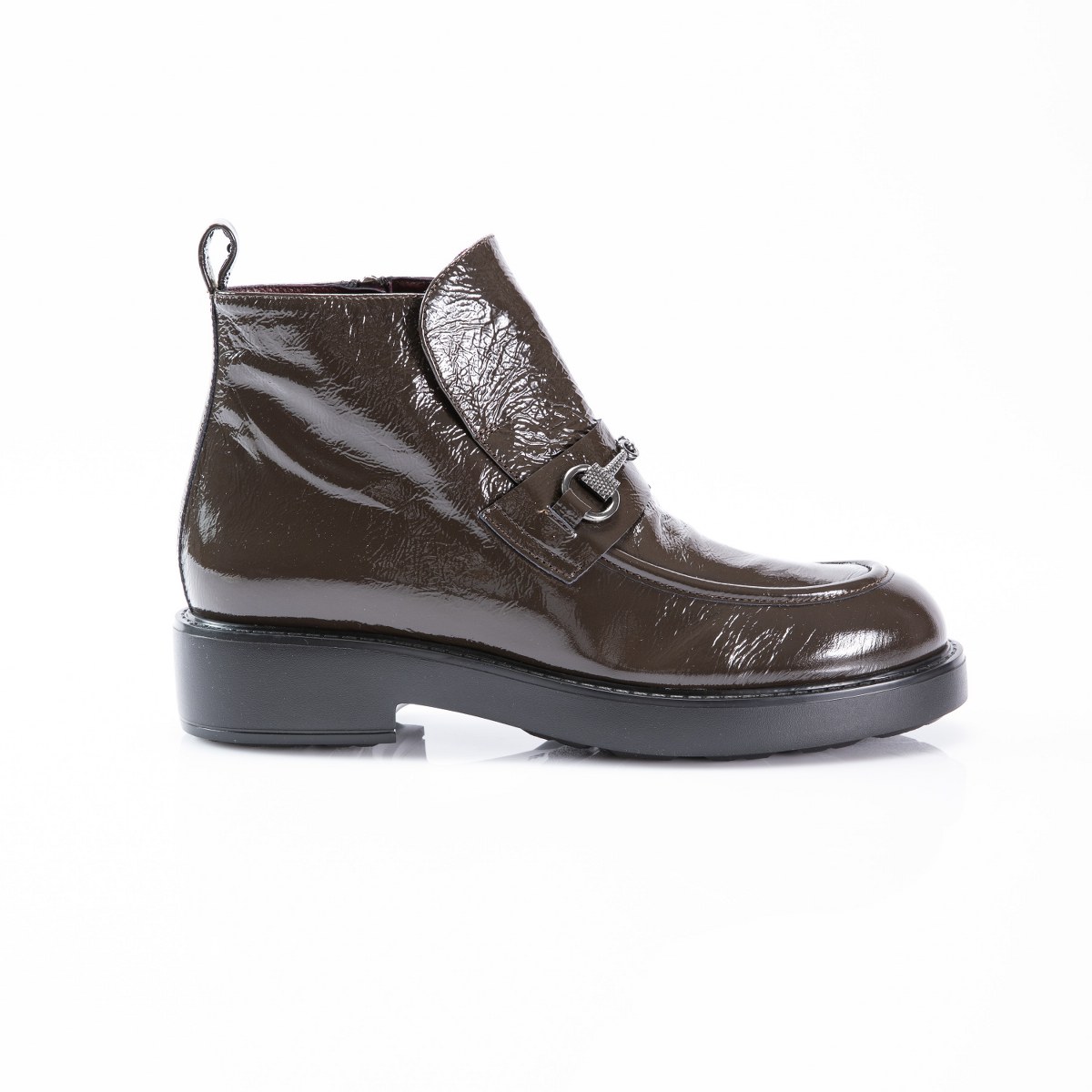 Low boot in patent leather- side zip- heel 4- platform 2- rubber sole.