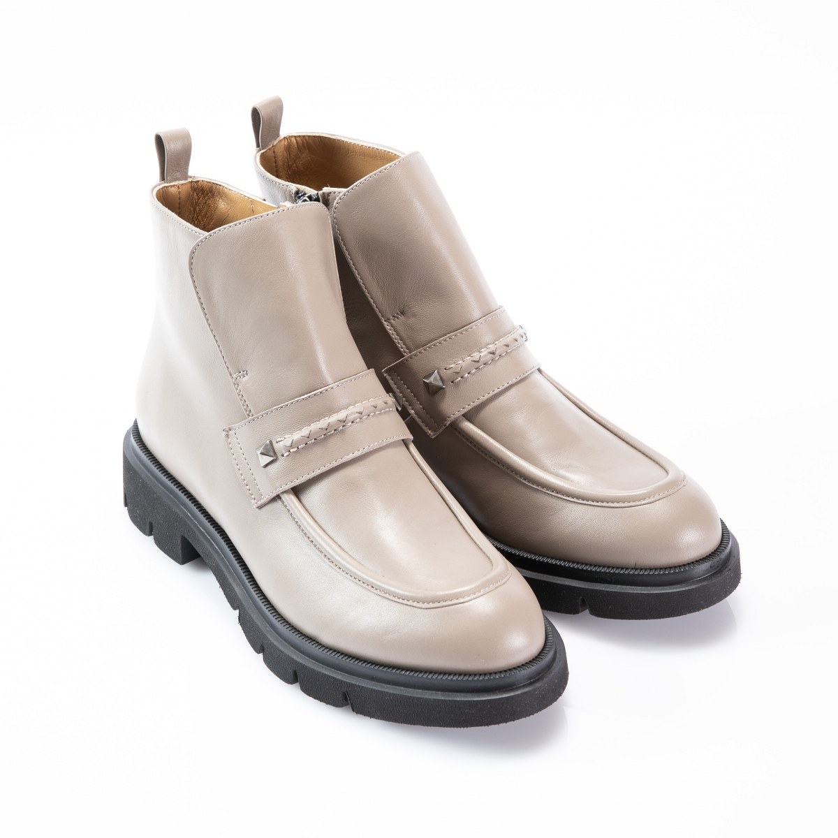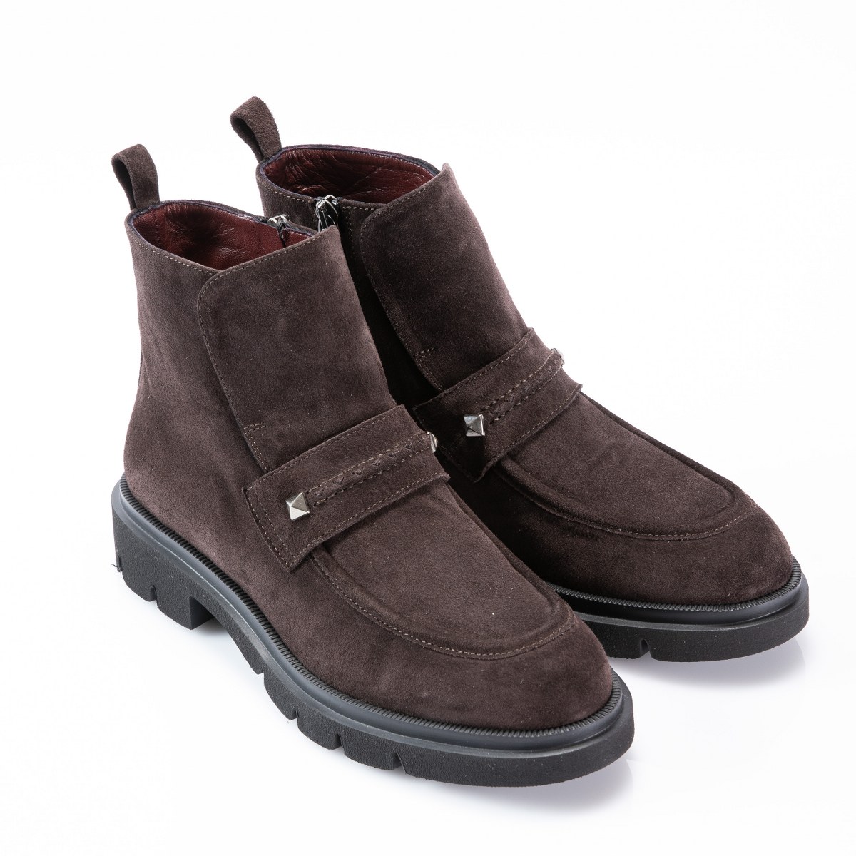 Low boot in suede- side zip- heel 4- platform 2- rubber sole.