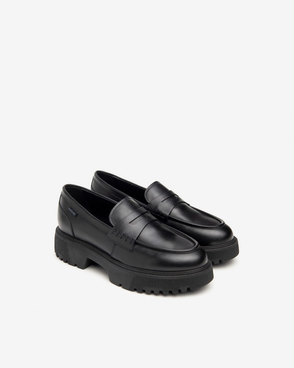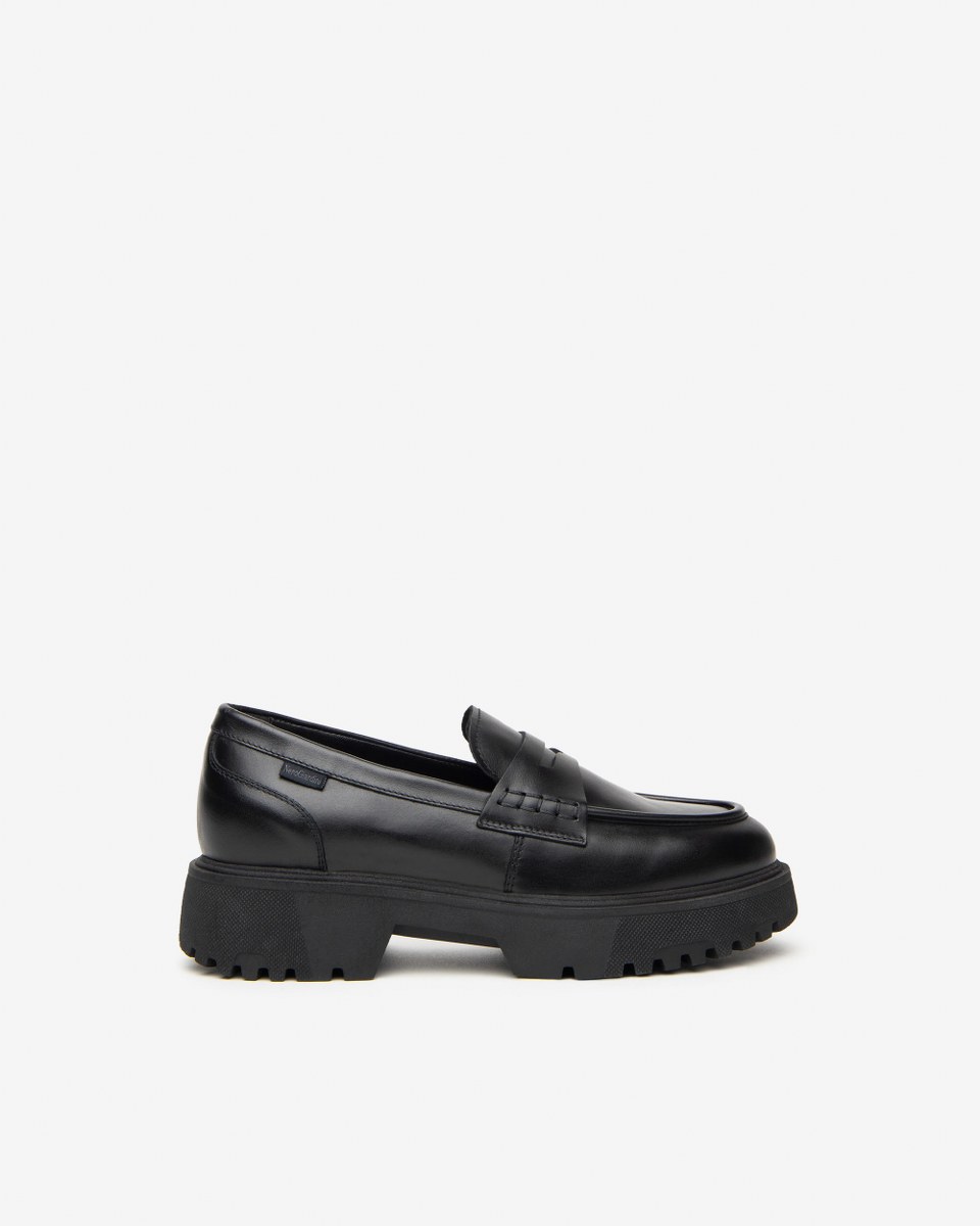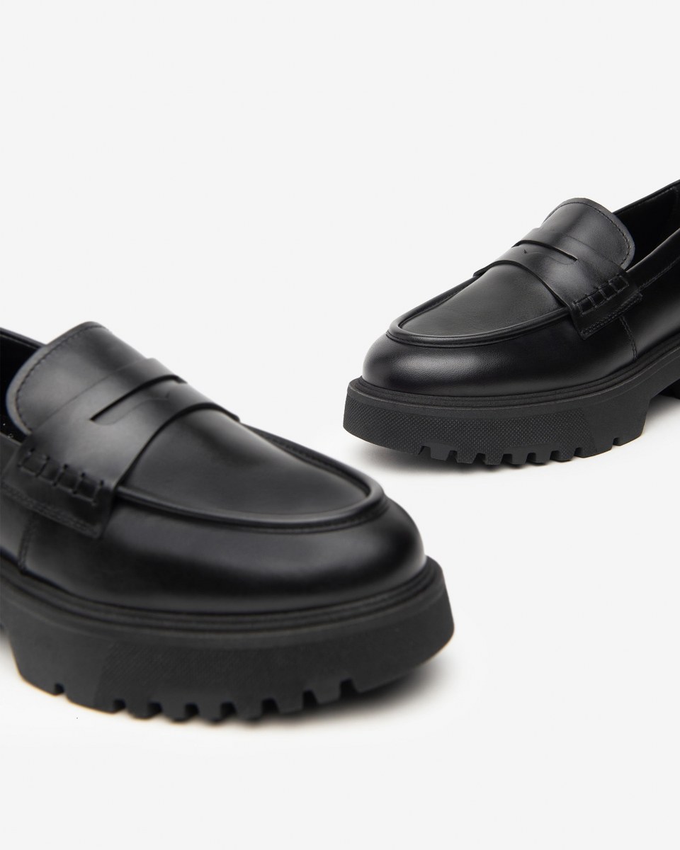 Loafer in leather- heel 4- platfom 3- rubber sole.