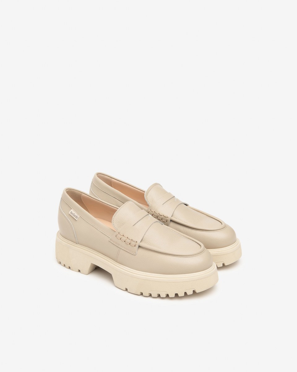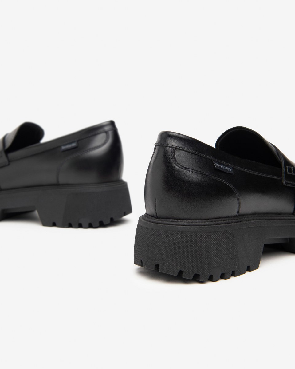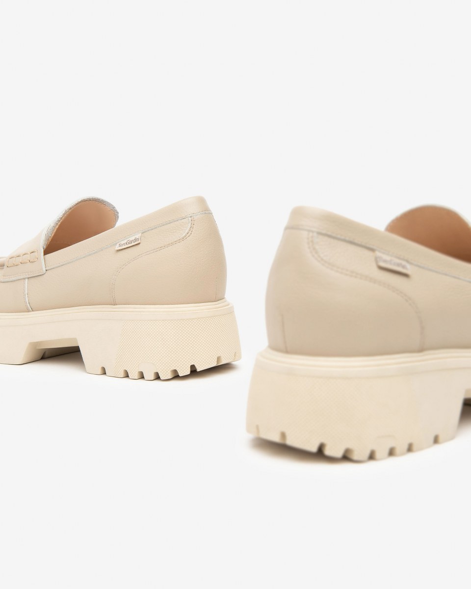 Loafer in leather- heel 4- platfom 3- rubber sole.