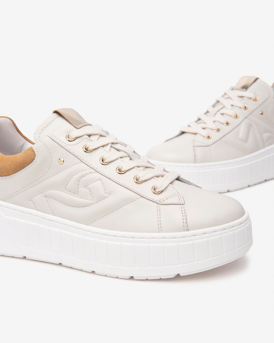 Sneaker in leather- rubber sole 5- platform 4.