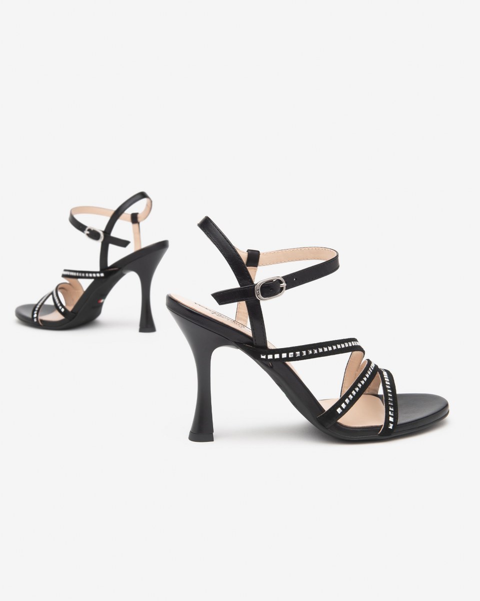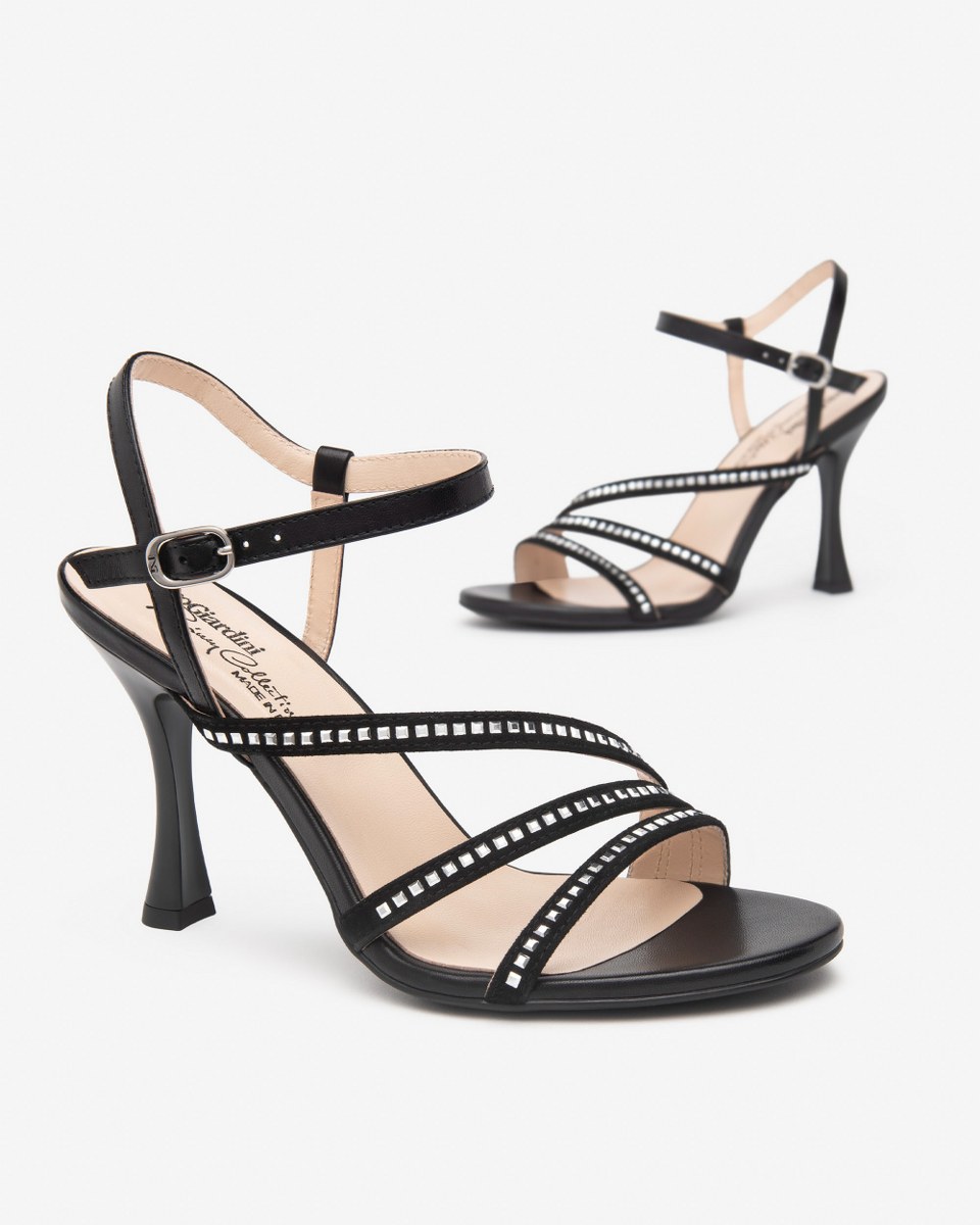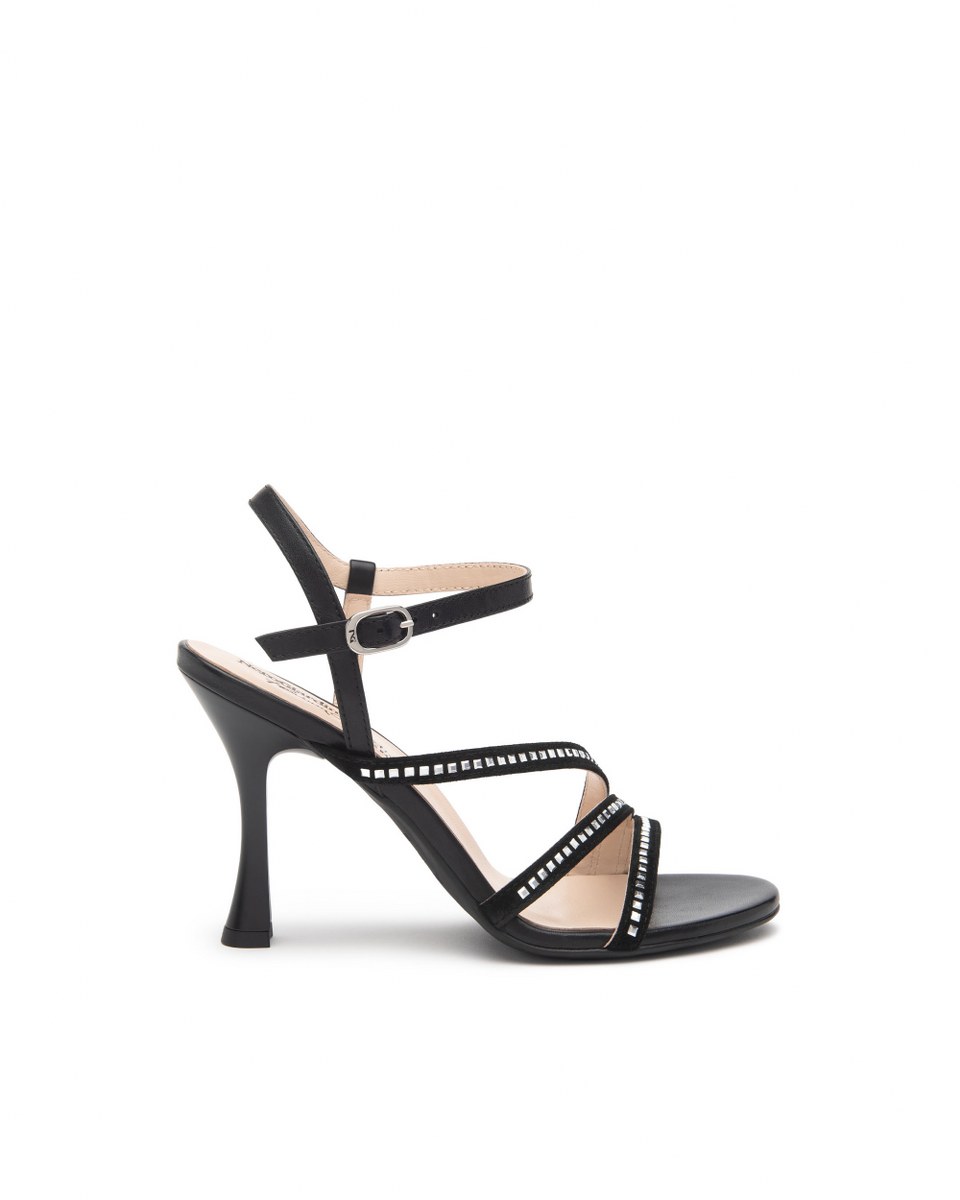 Sandal in leather and suede- ankle strap- heel 11- rubber sole.