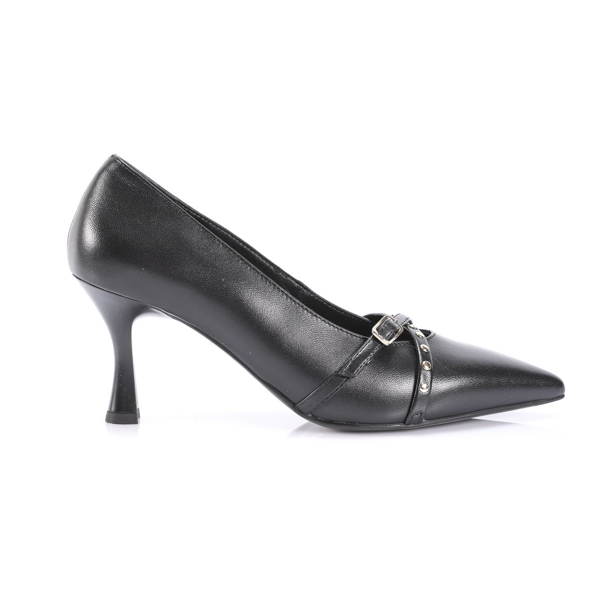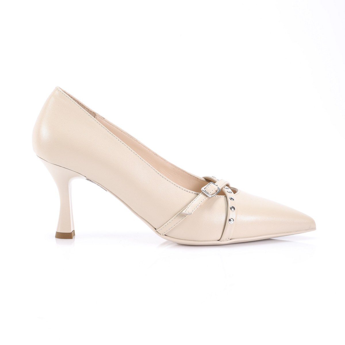 Pump in leather- heel 7- rubber sole.