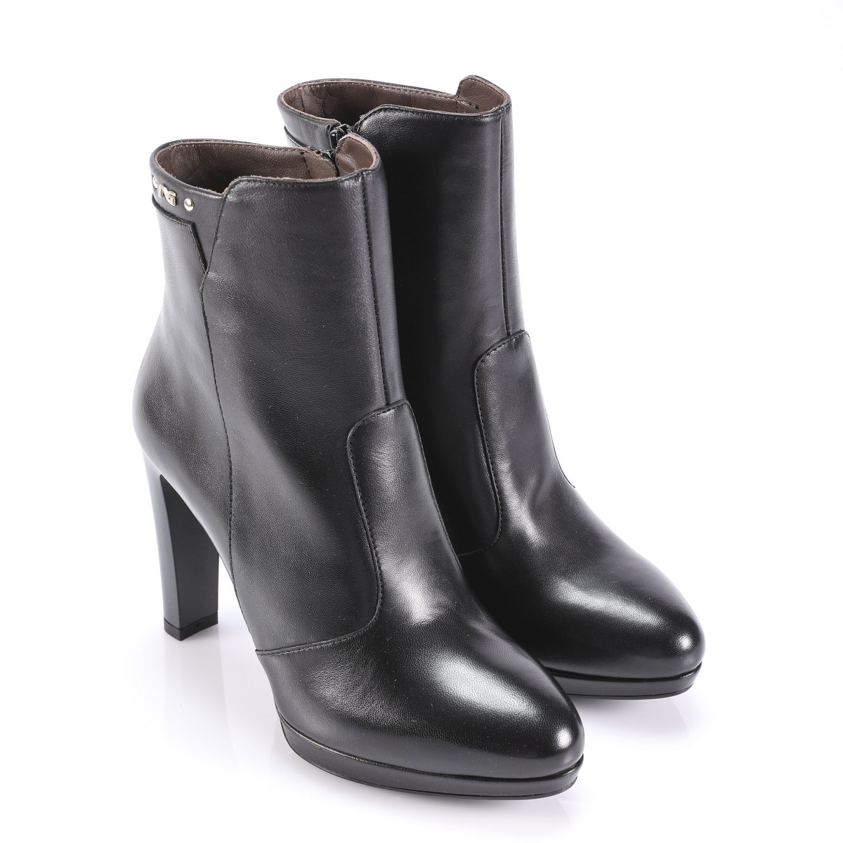 Low boot in leather- side zip- heel 10- rubber sole.