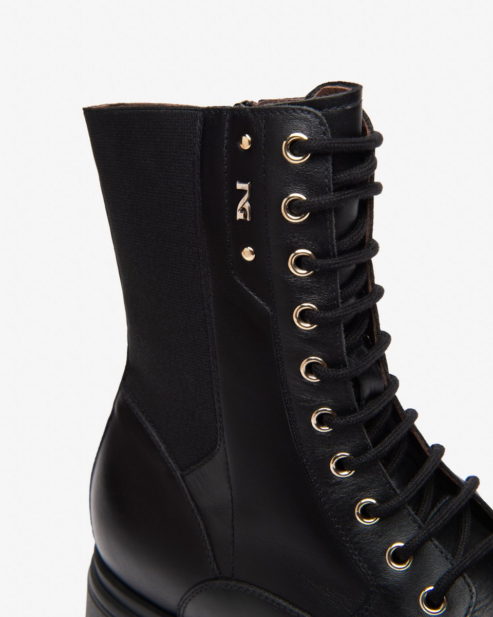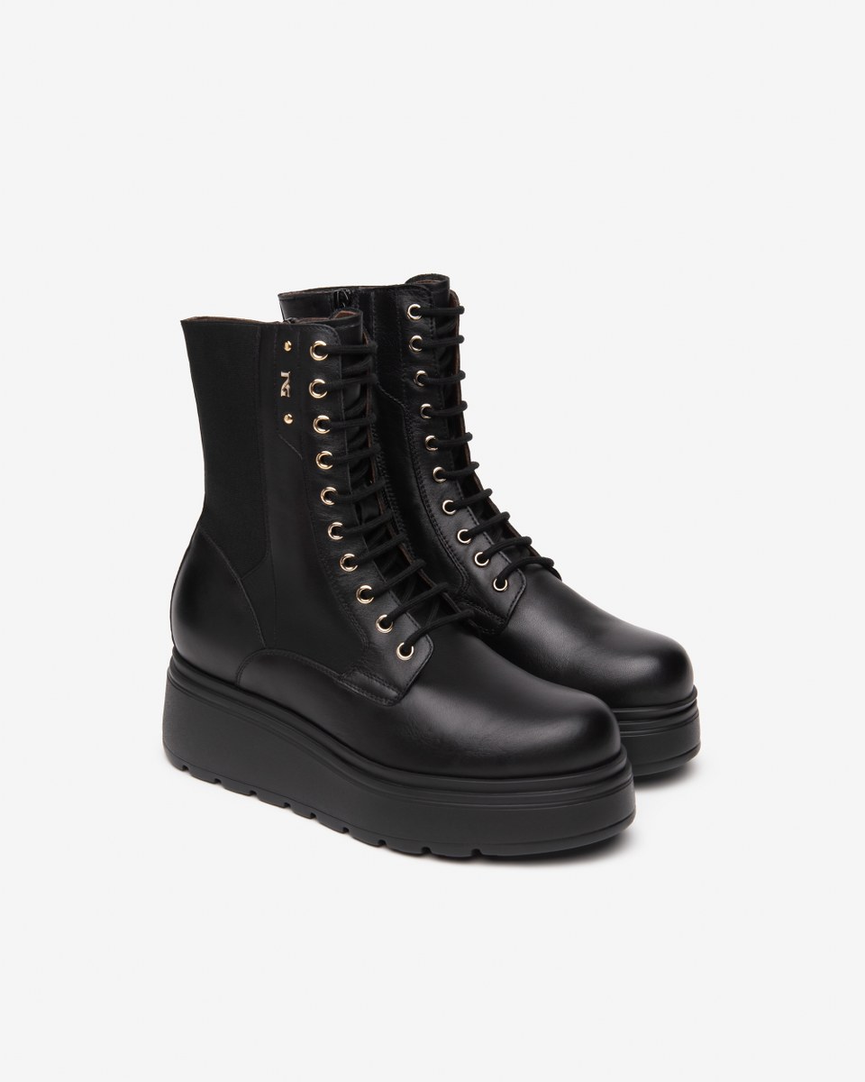 Low boot in leather- zip and elastic side- rubber sole 5- platform 4.5.