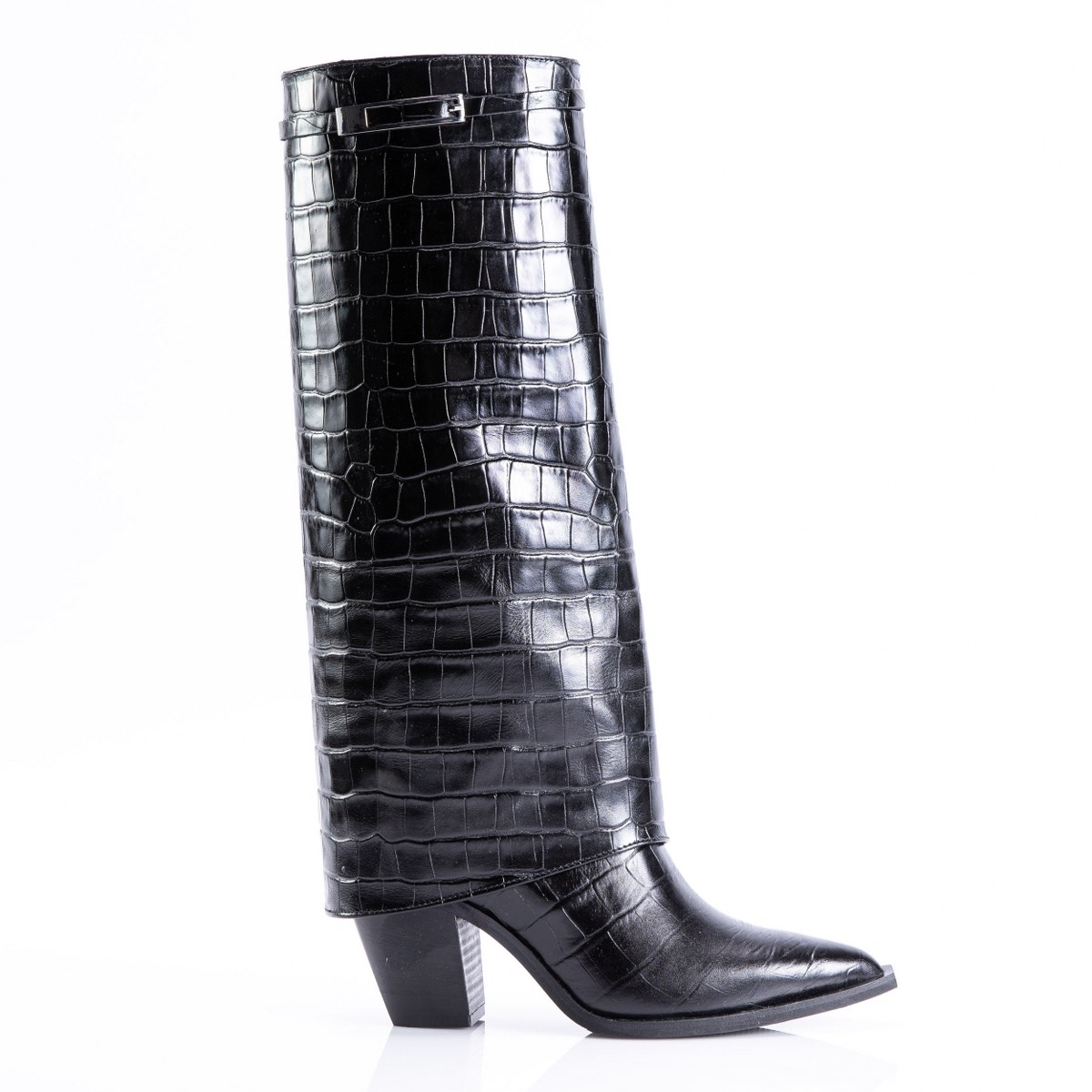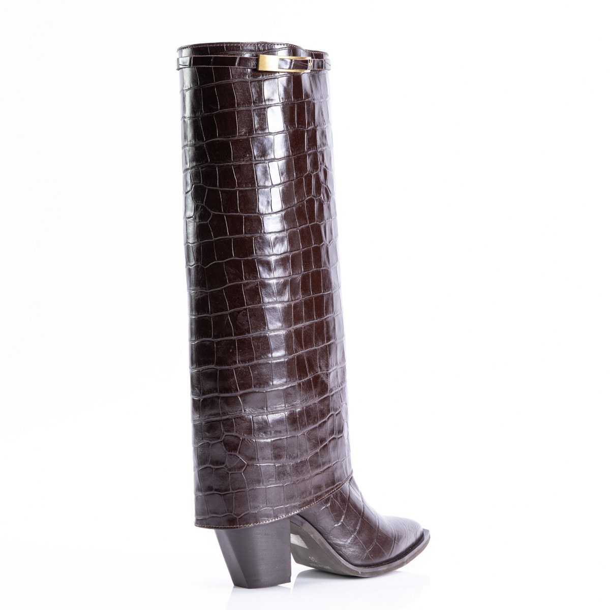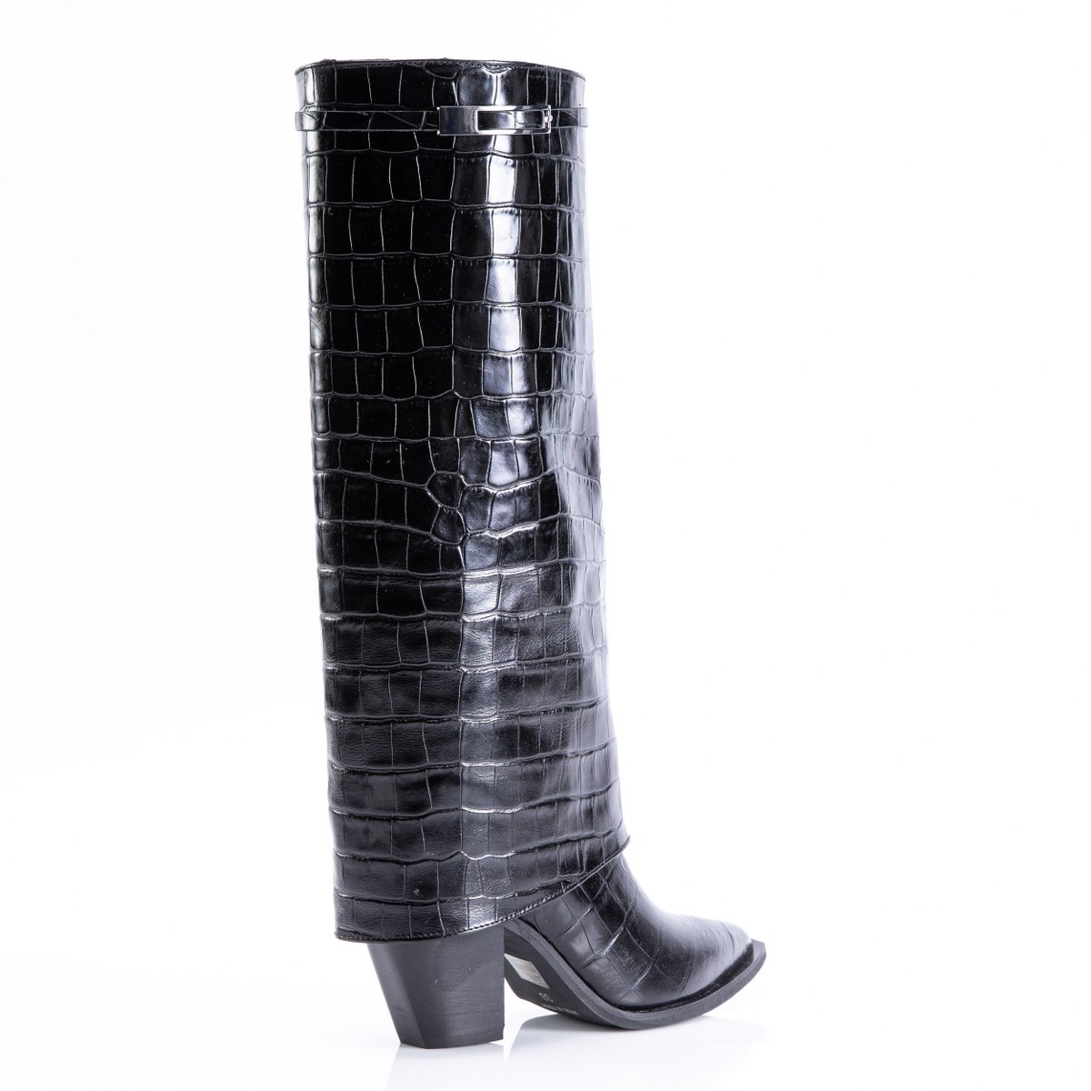 Boot in crocco effect leather- slip on- heel 8- rubber sole.