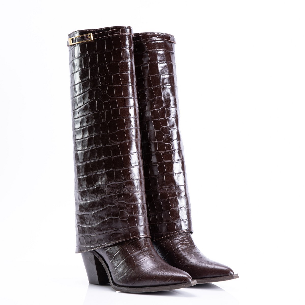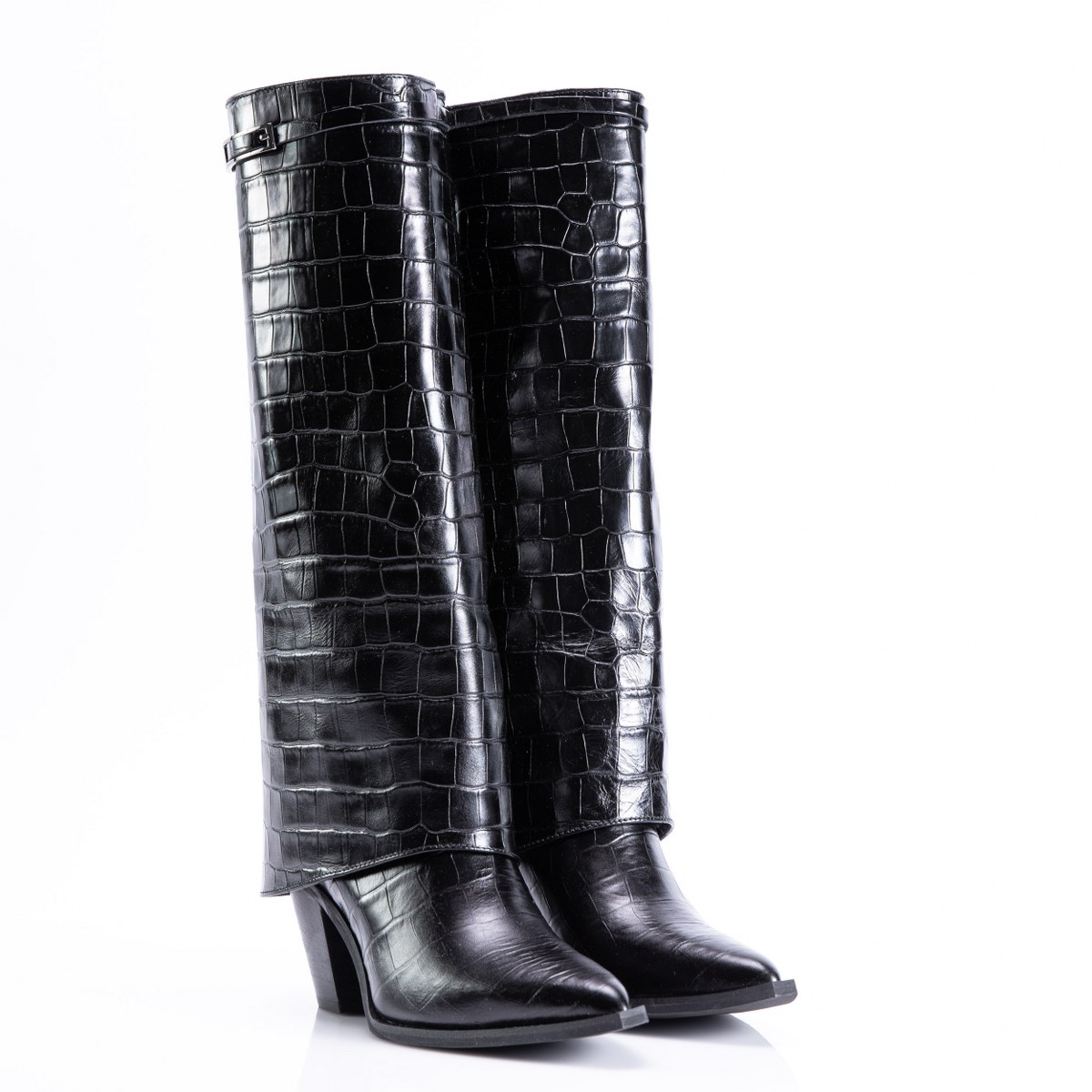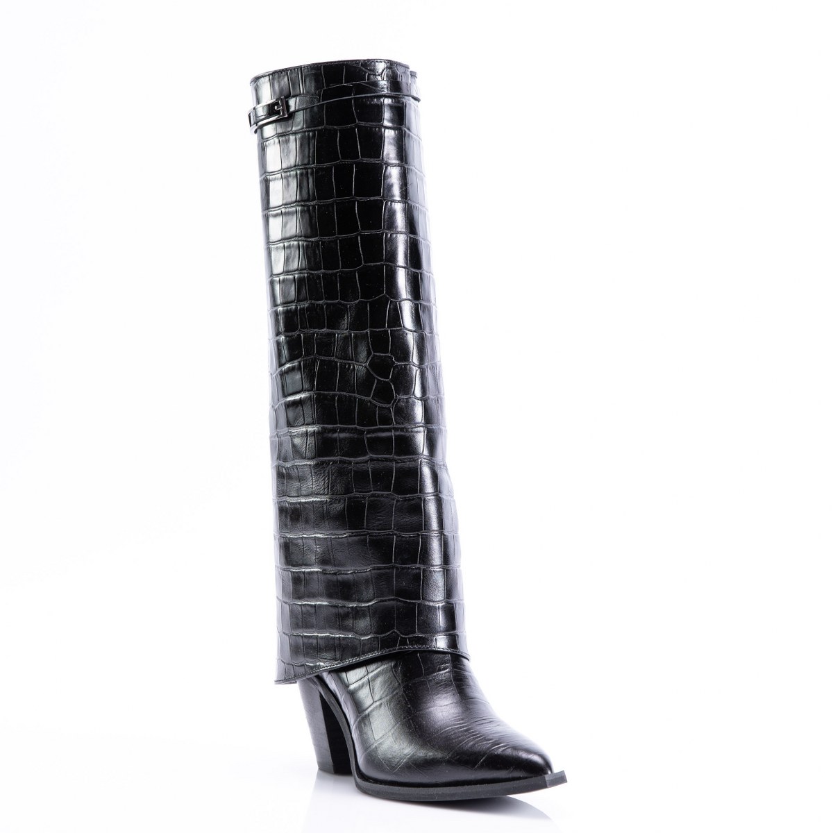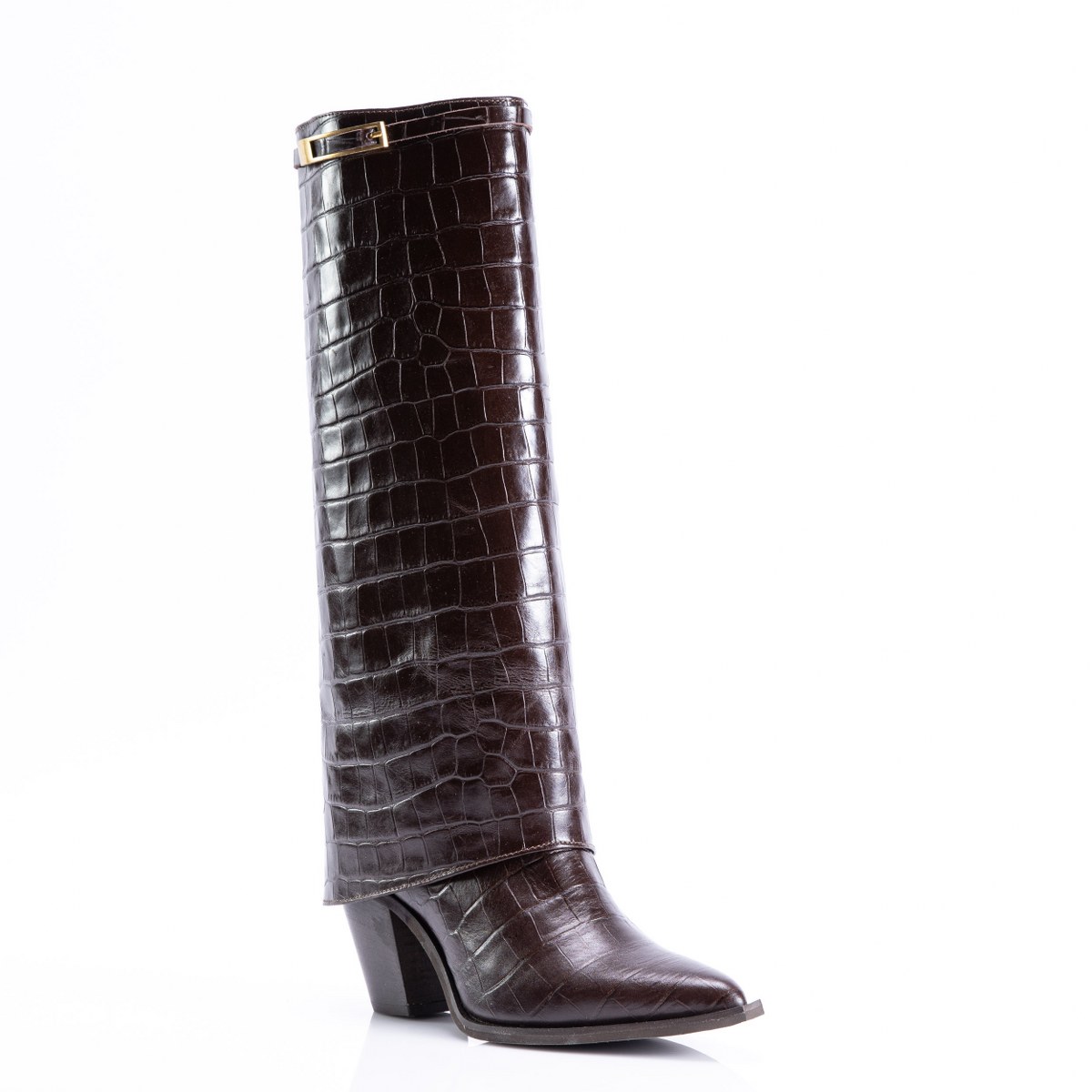 Boot in crocco effect leather- slip on- heel 8- rubber sole.