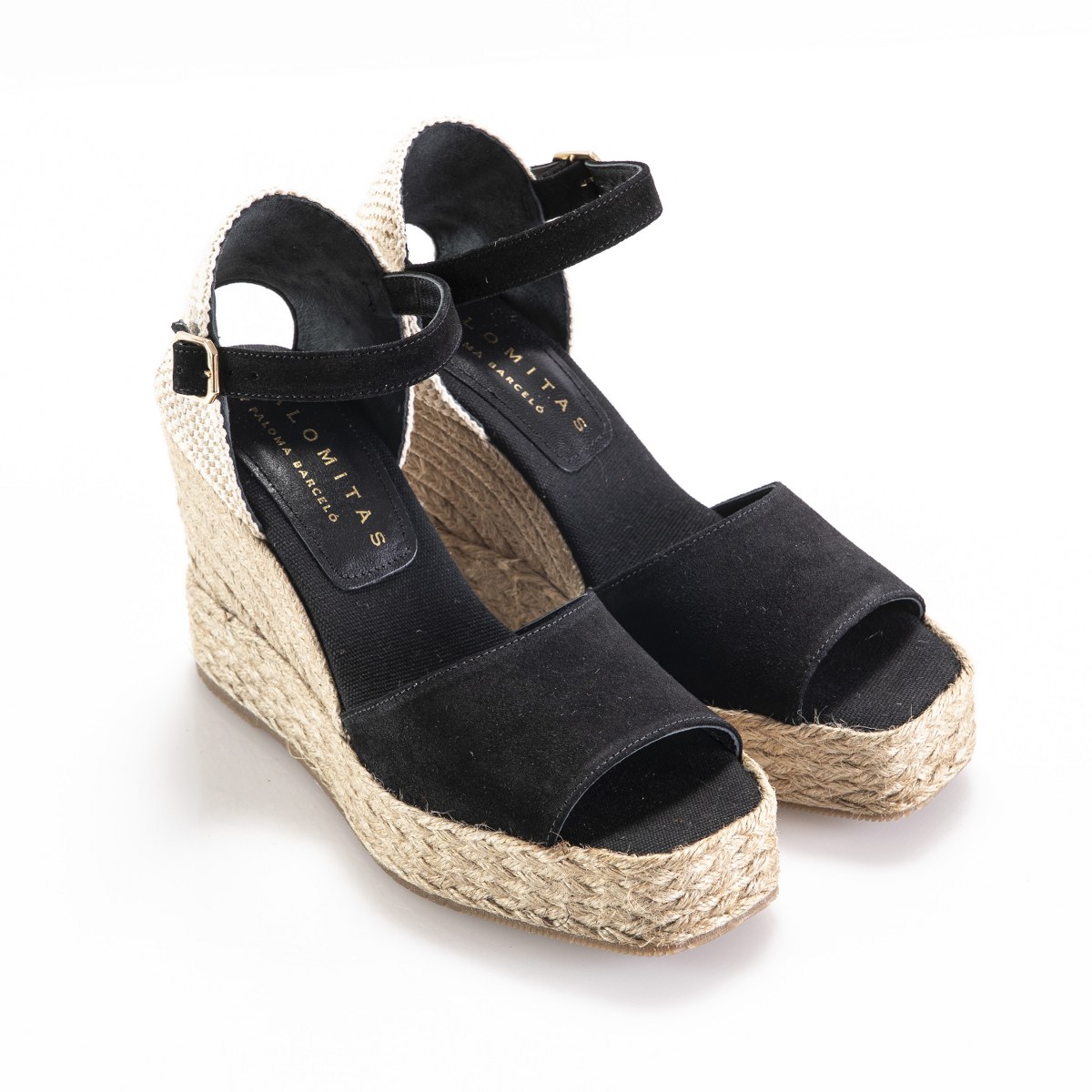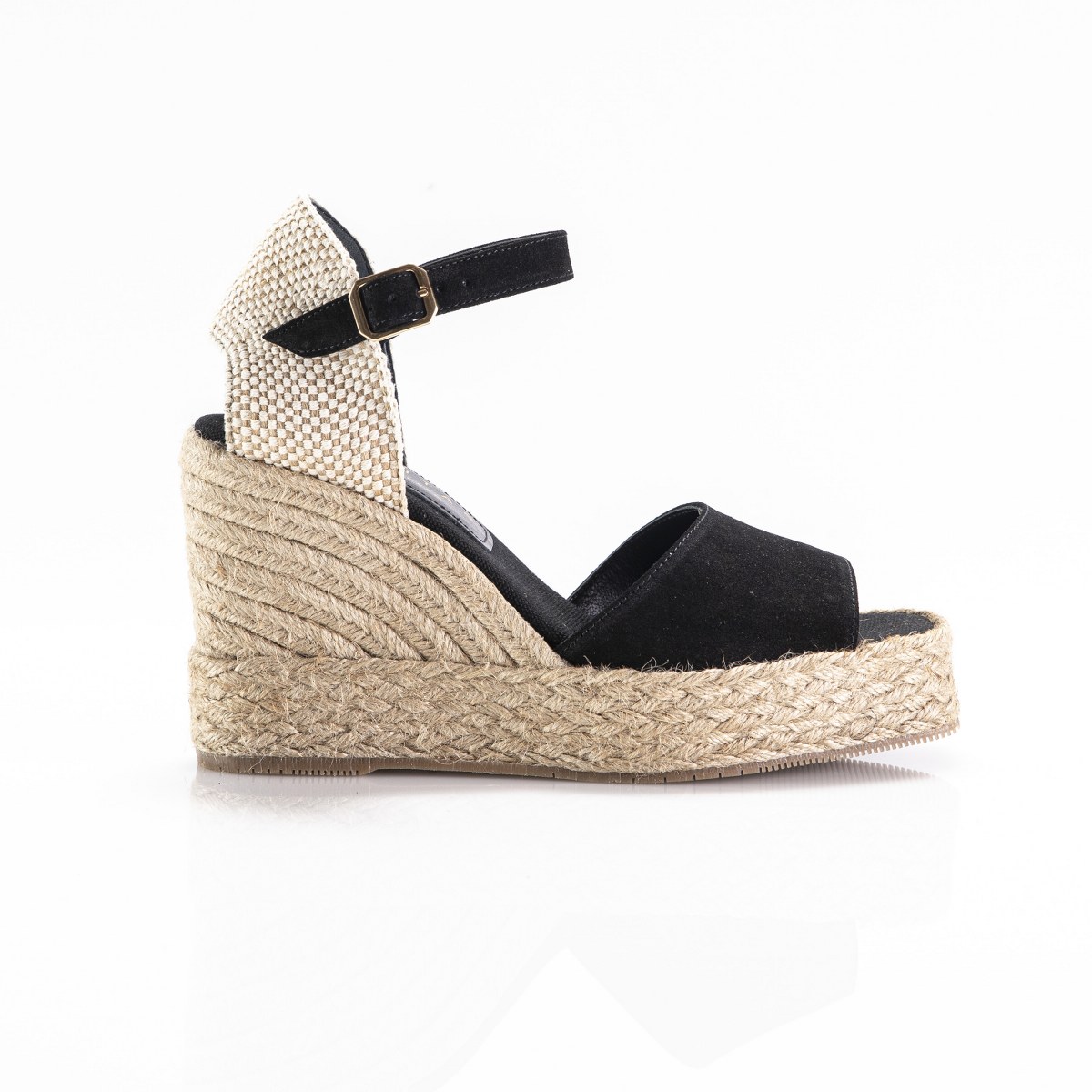 Wedge in suede- ankle strap- jute heel 10- platform 3.5- rubber sole.