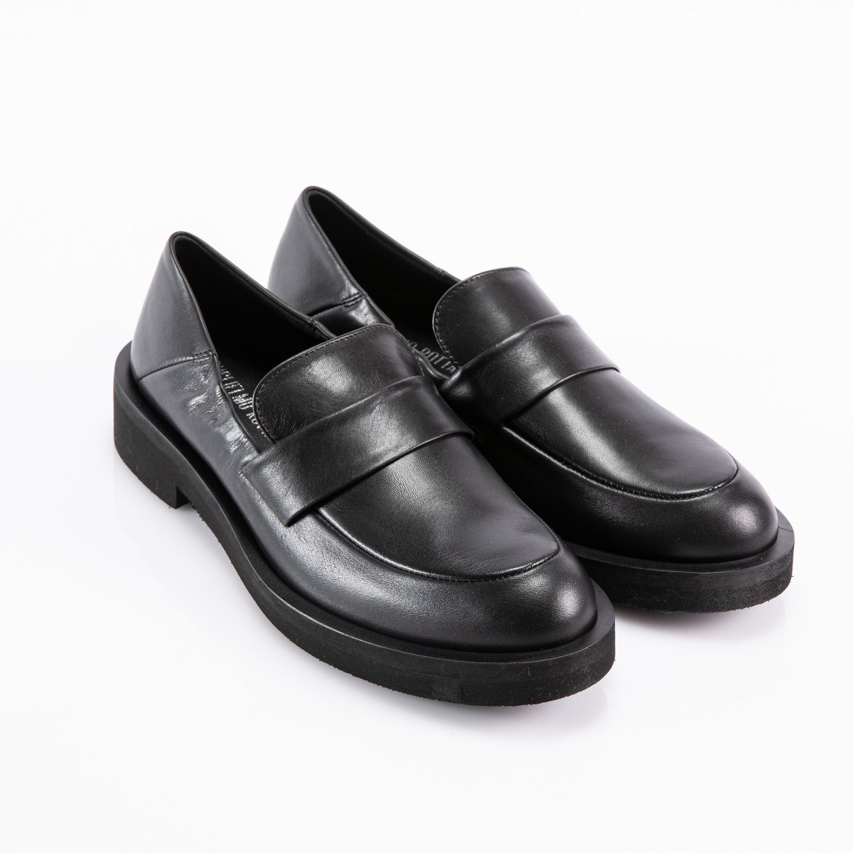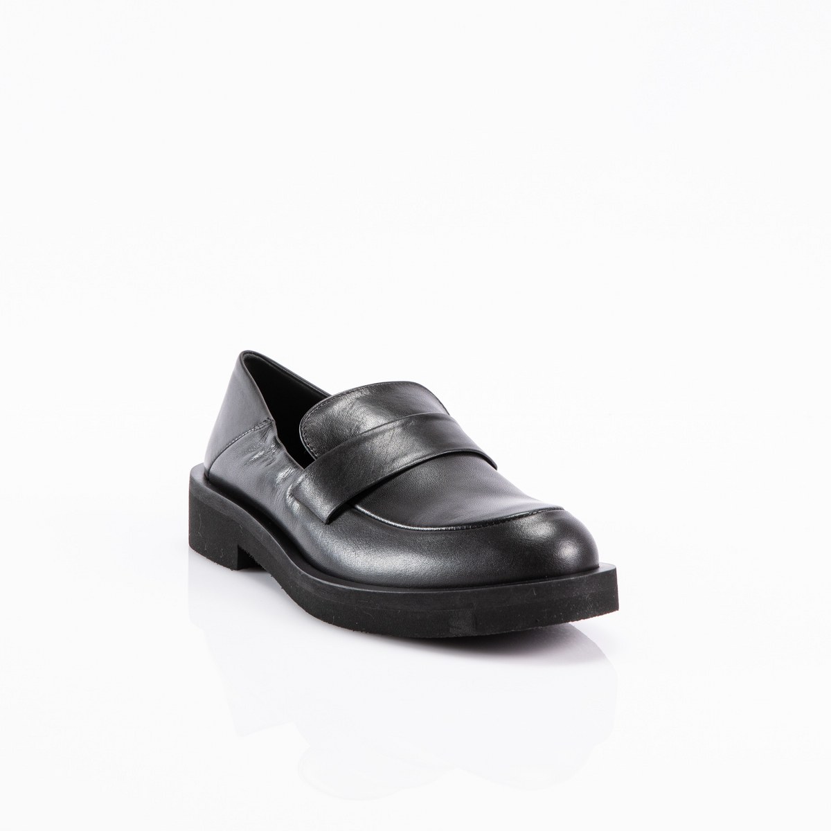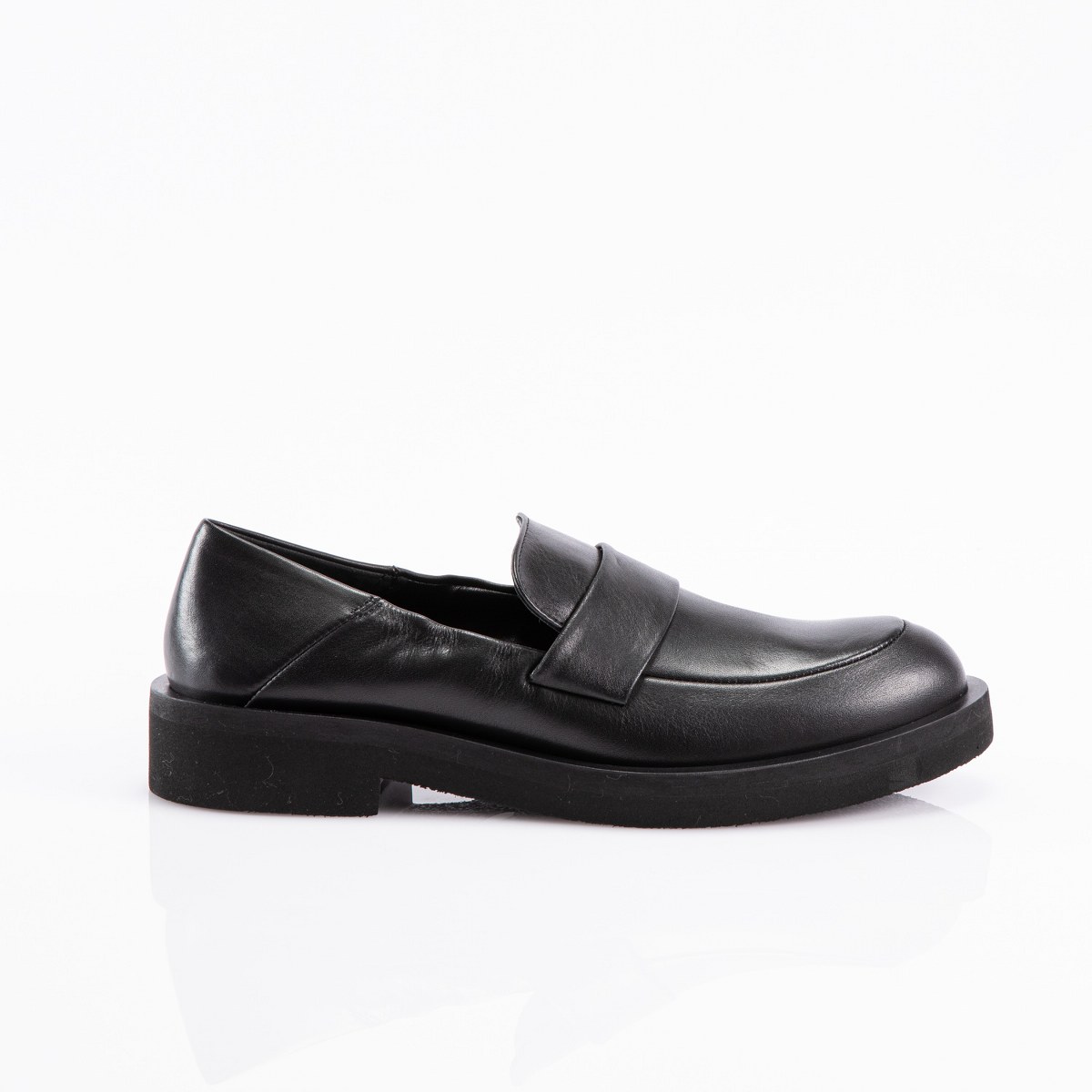 Mocassin in leather- heel 3- platform 2- rubber sole.