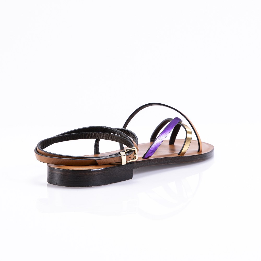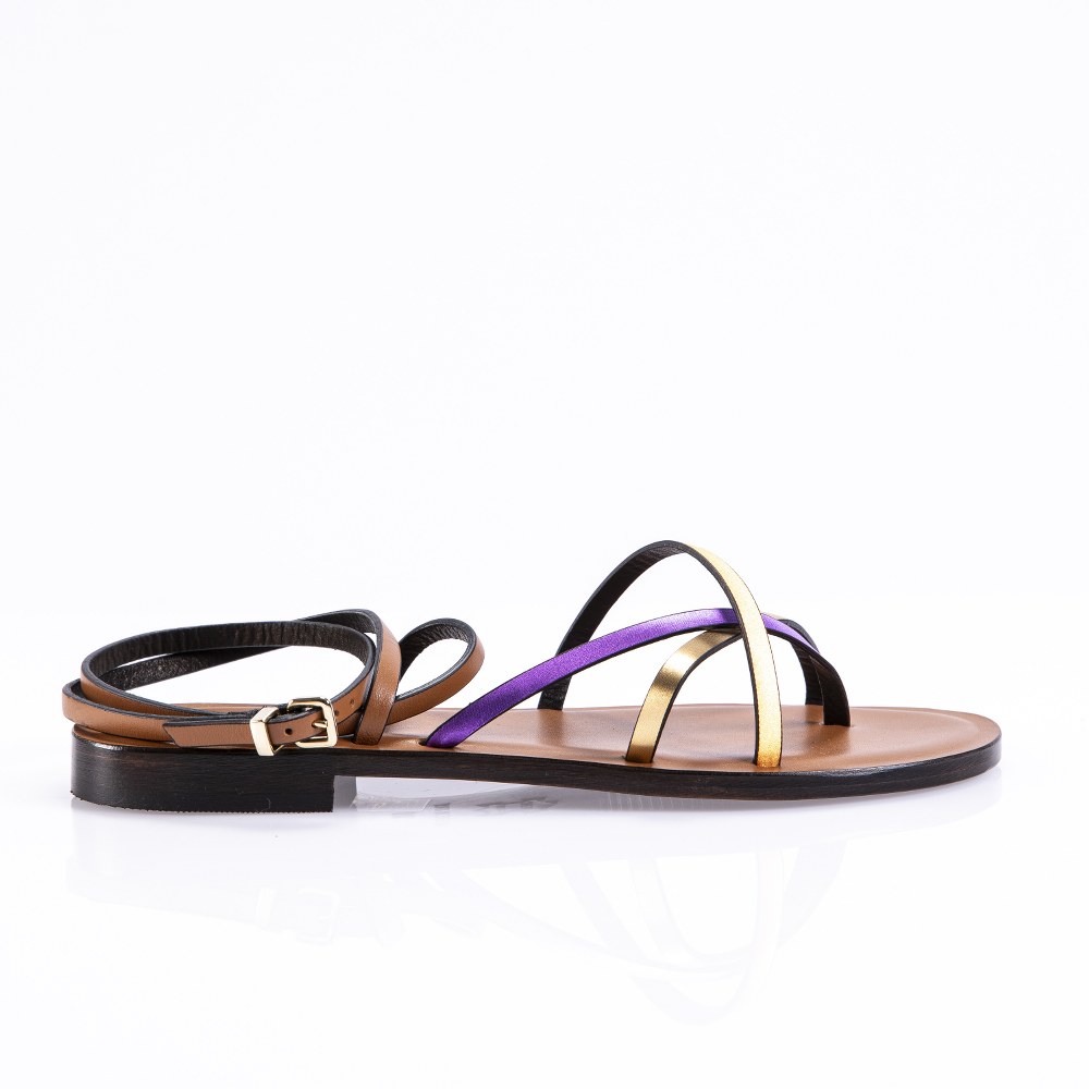 Flat in leather- ankle strap- leather sole.