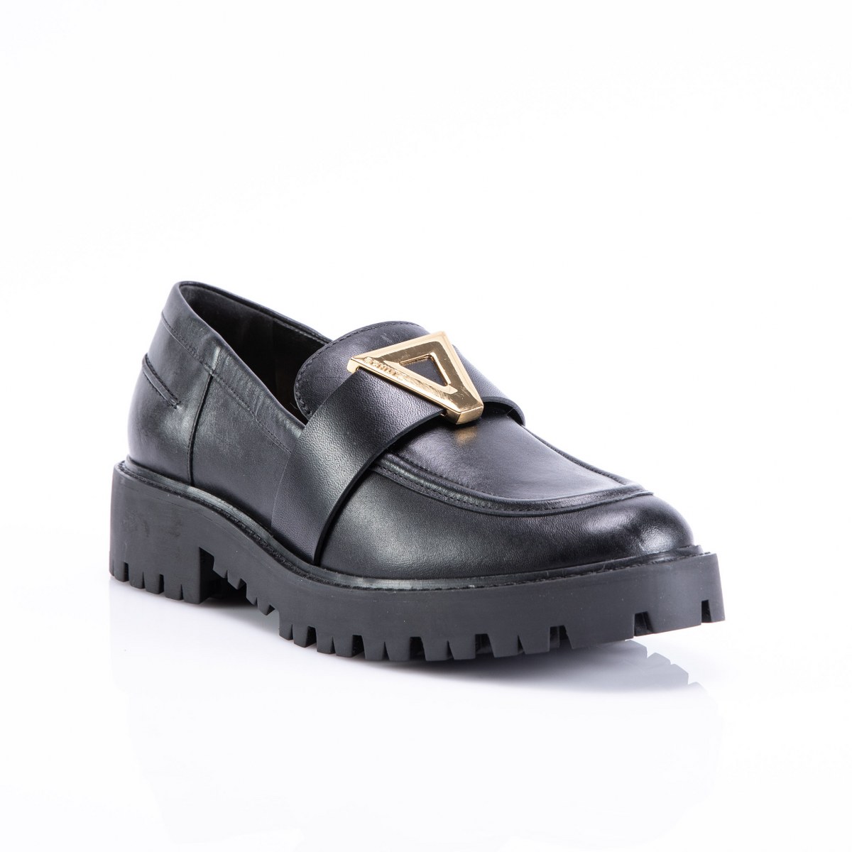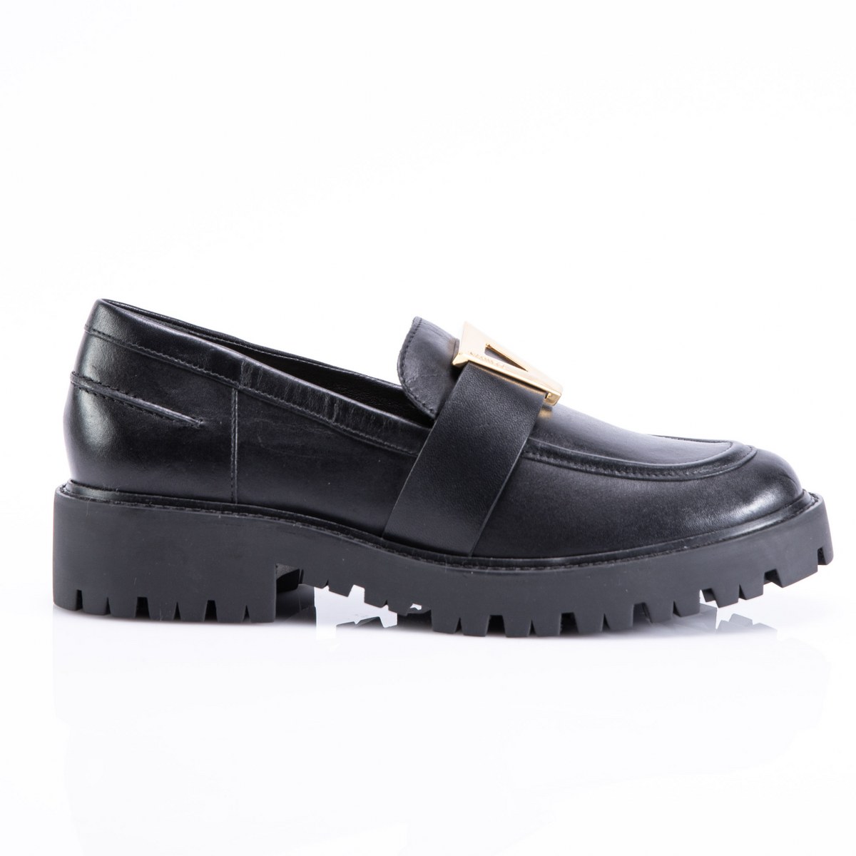 Loafer in leather- heel 4- platform 2.5- rubber sole.