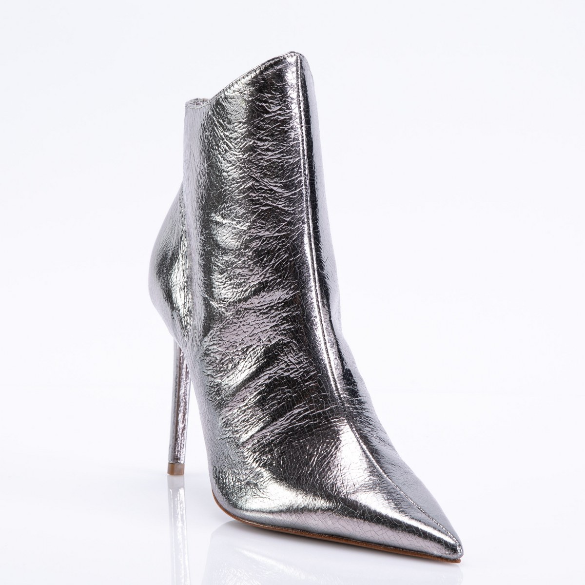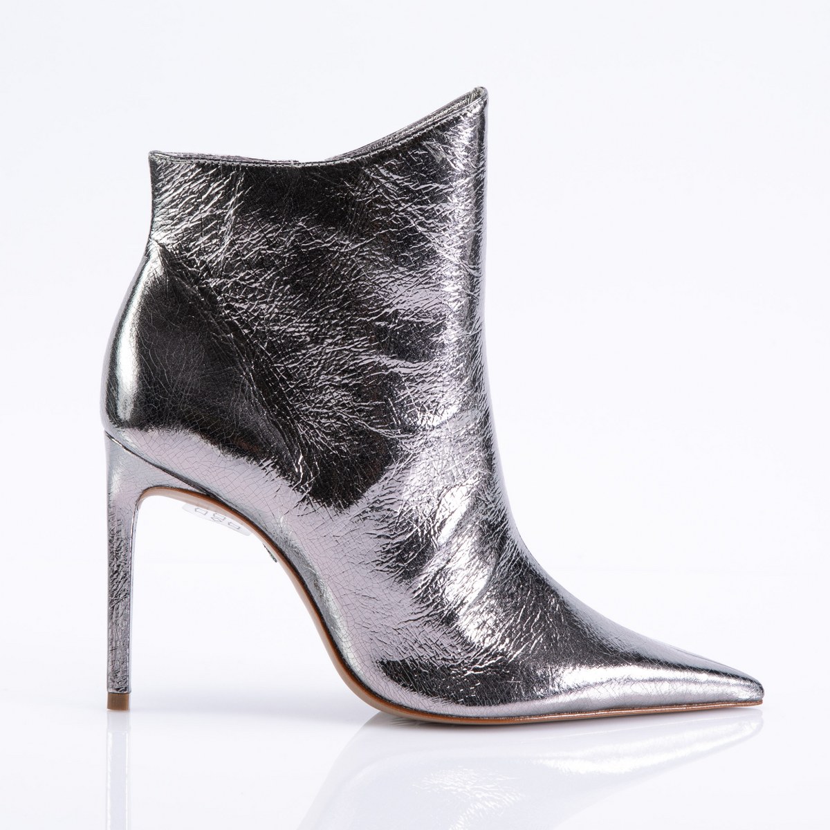 Low boot in shiny leather- side zip- heel 10- leather sole.