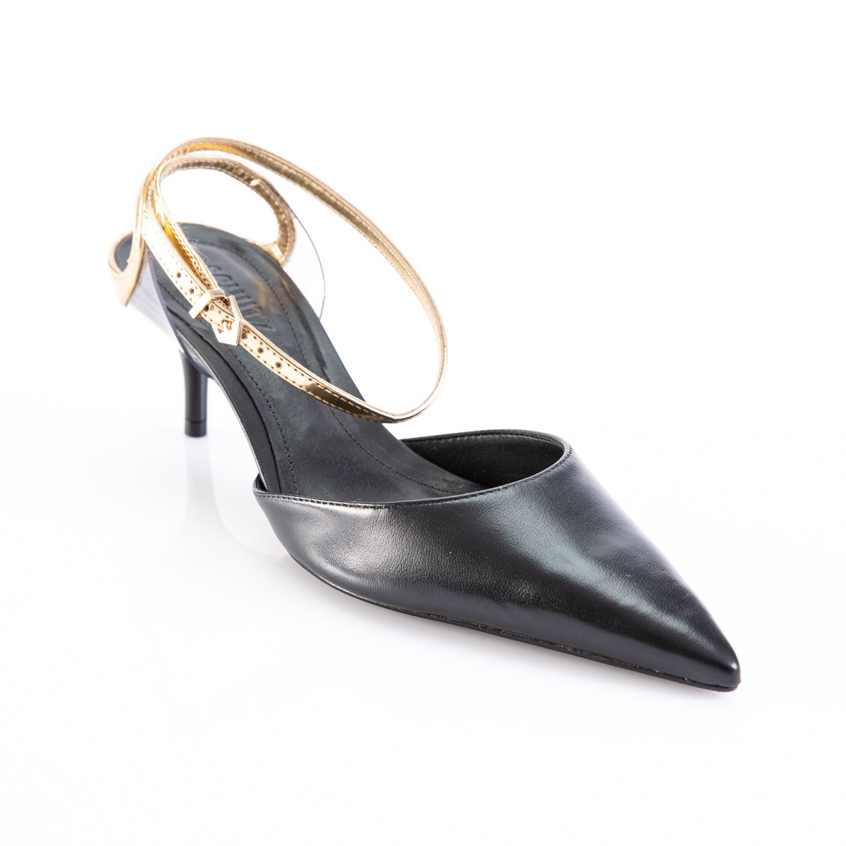 Pump in leather- ankle strap- heel 7- leather sole.