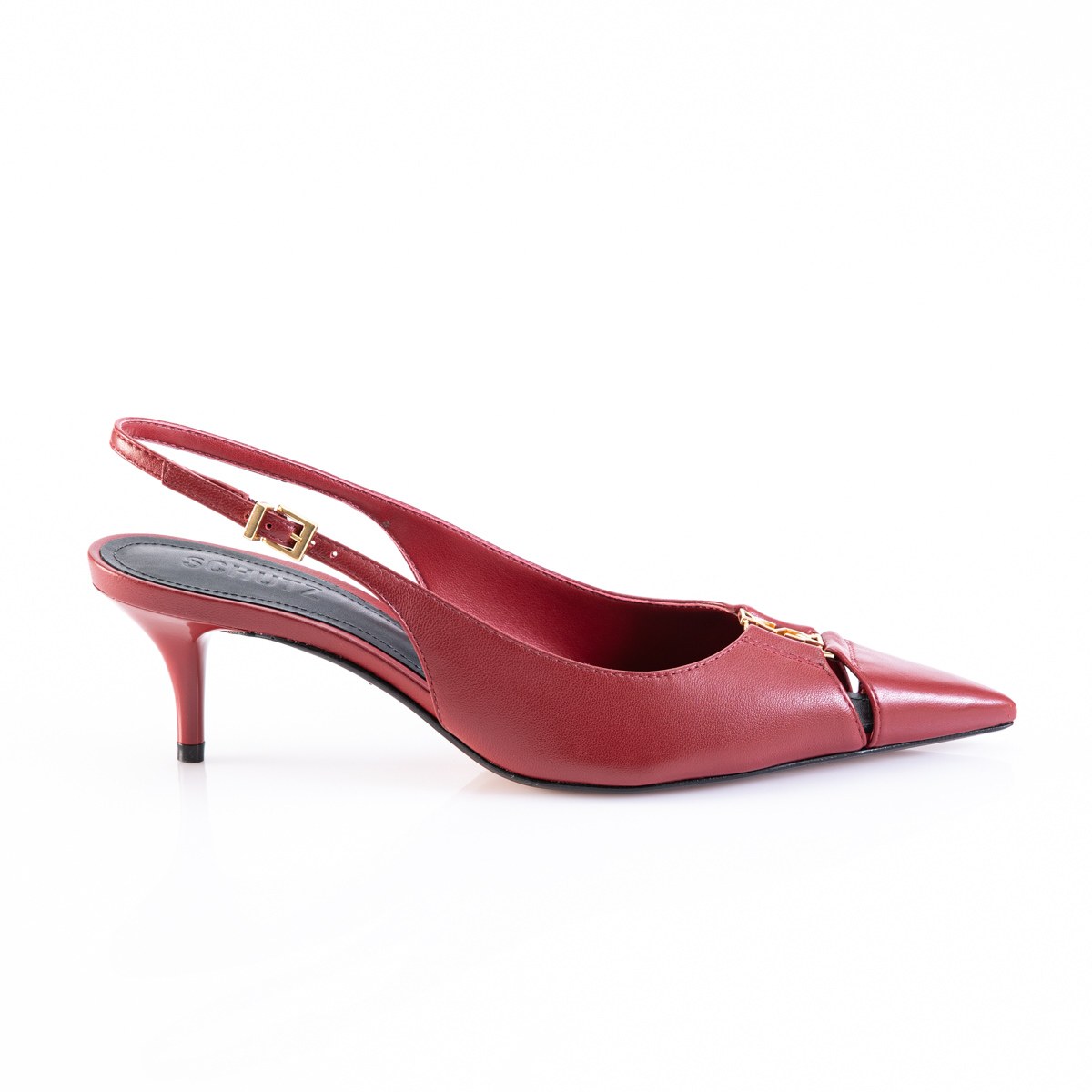 Pump in leather- back strap- heel 7- leather sole.