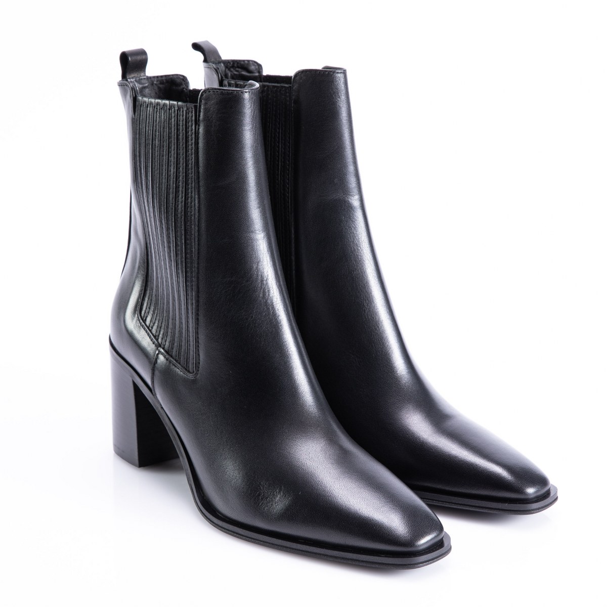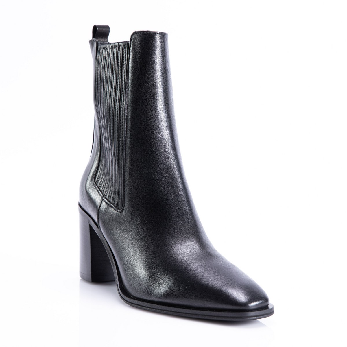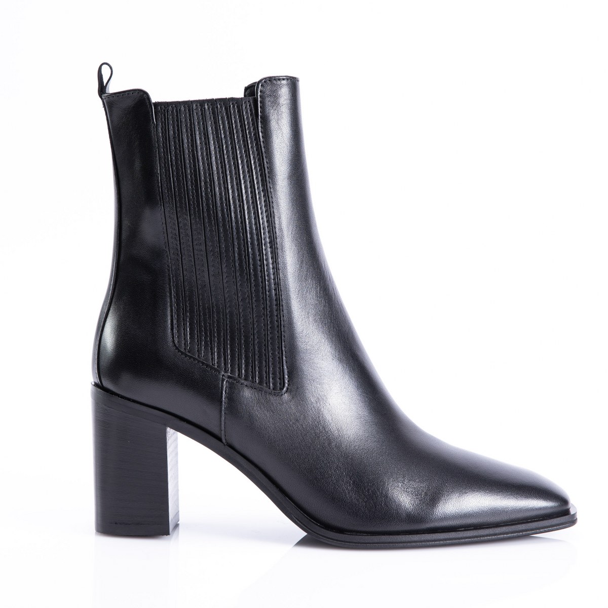 Low boot in leather- elastic side- heel 8- rubber sole.