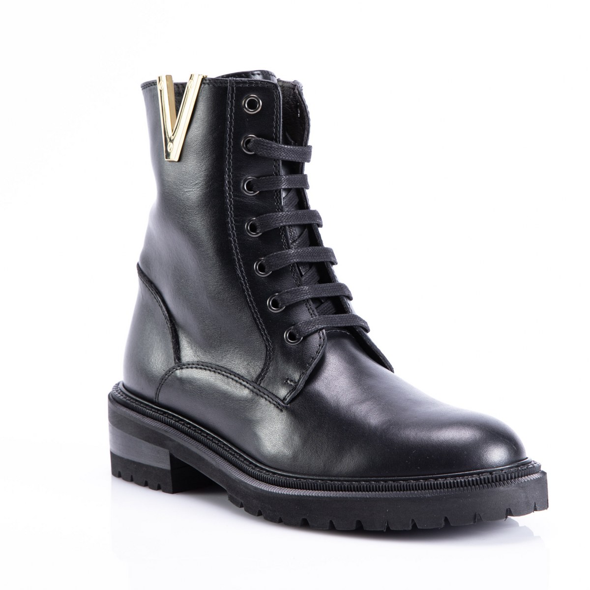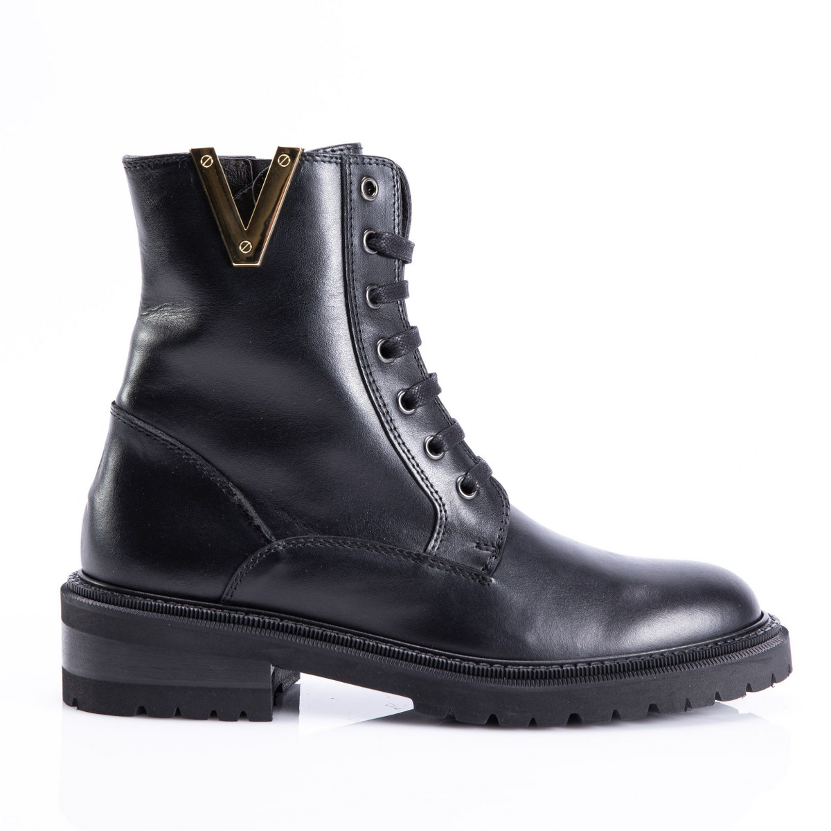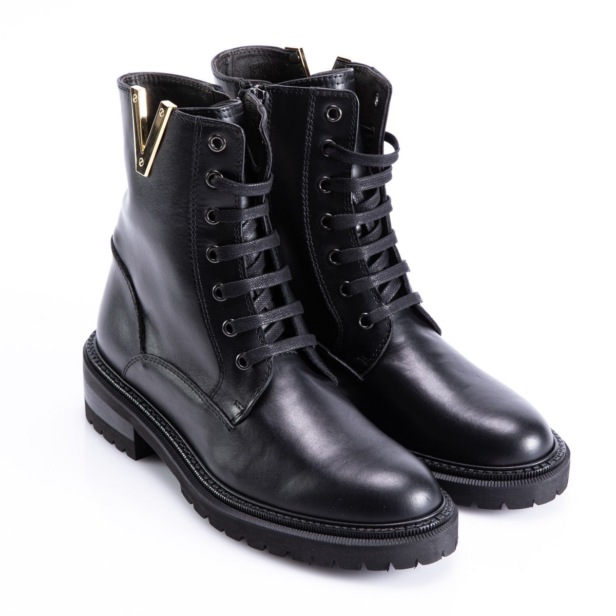 Low boot in leather- side zip- heel 4- platform 2.5- rubber sole.